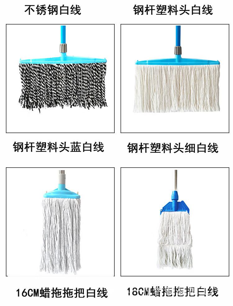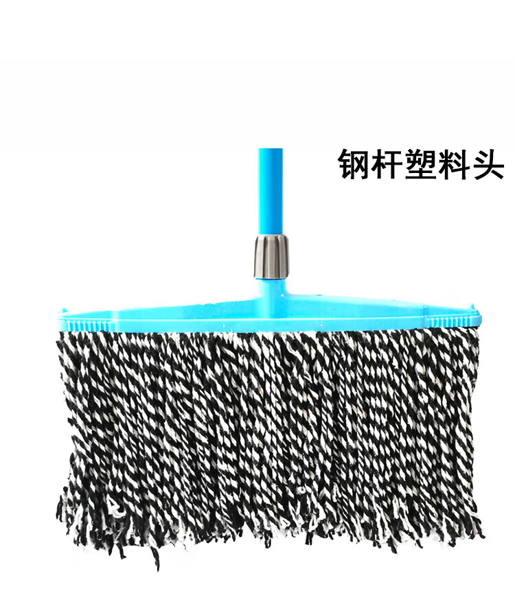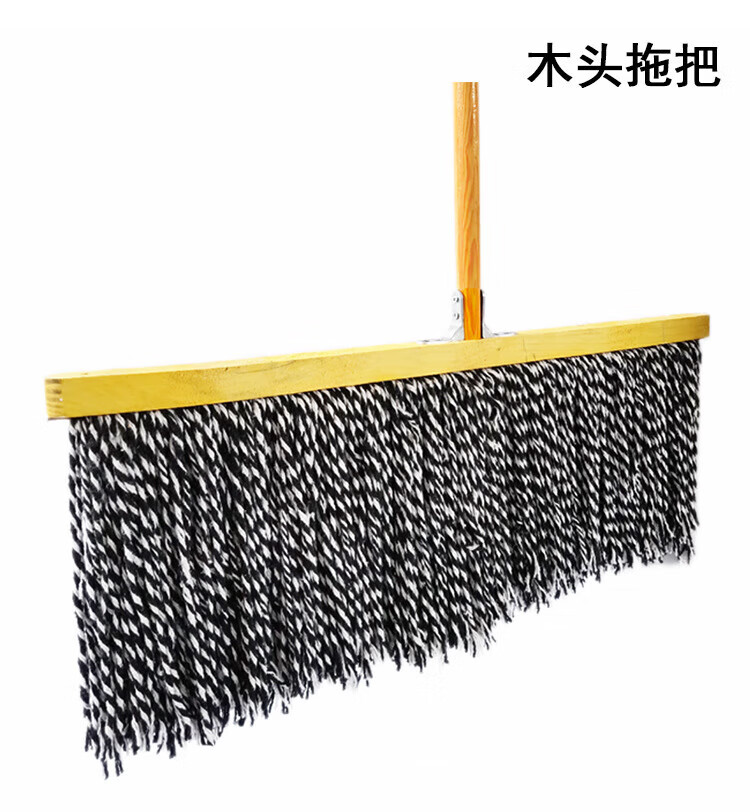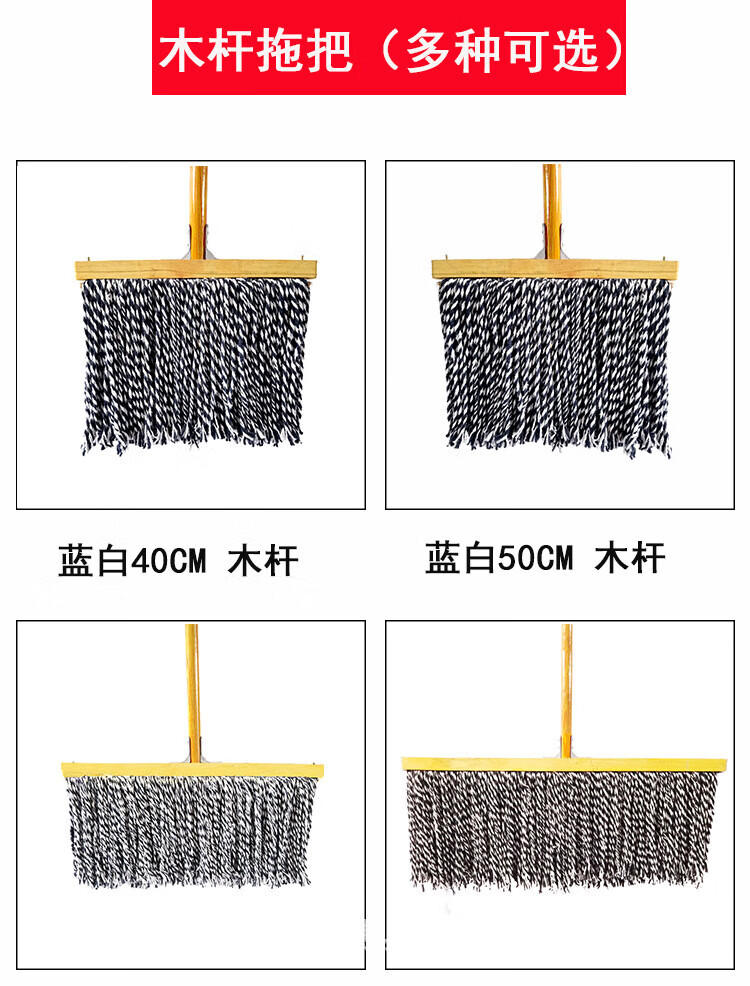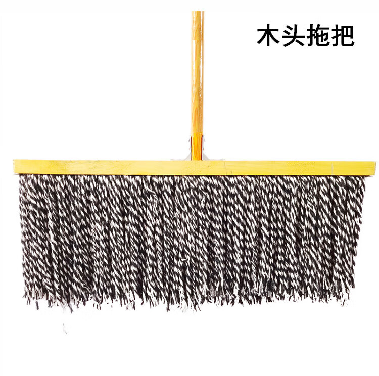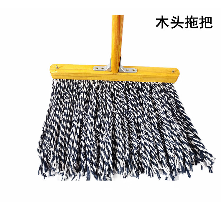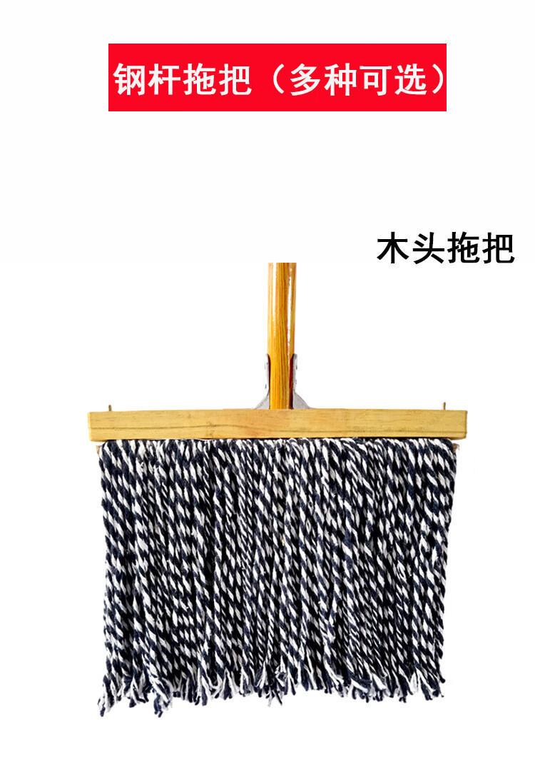 Old-fashioned cotton yarn mop floor mop reinforced lengthened wooden pole mop mop decontamination dry and wet cloth strip steel wire round head
