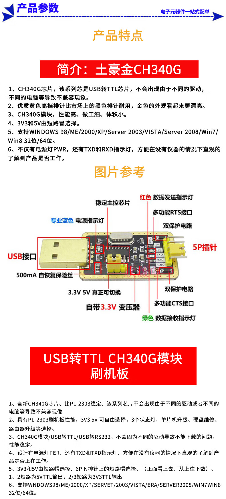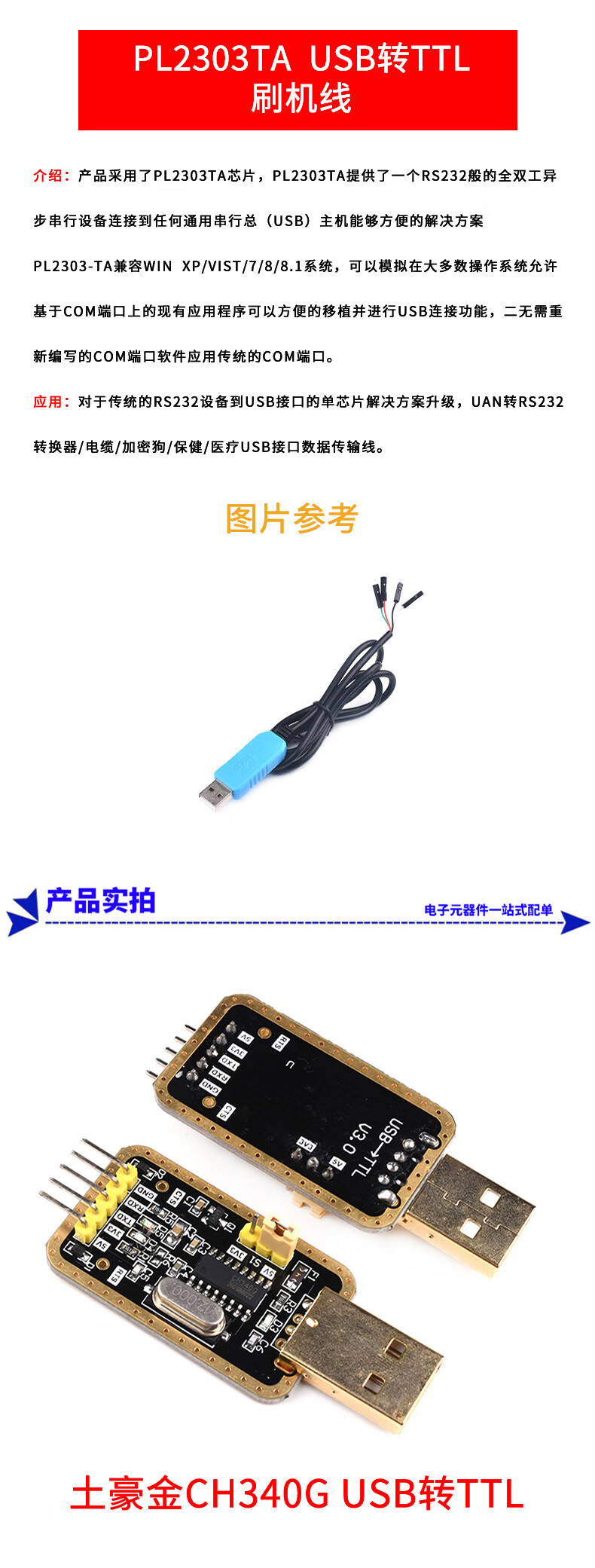 Green Shen USB to TTL USB to serial download cable CH340G module RS232 upgrade board brush machine board line PL2303 CH340C blackboard USB to TTL module TYPE-C port