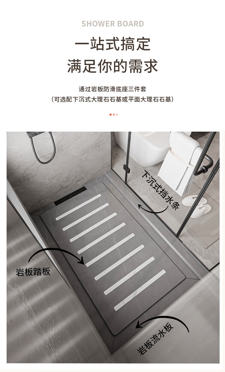 Fantasy Island sunken bathroom slate shower board bathroom foot non-slip stone floor tiles bathroom shower room floor pedal custom shower board 3-piece set including stone base square number 1.2