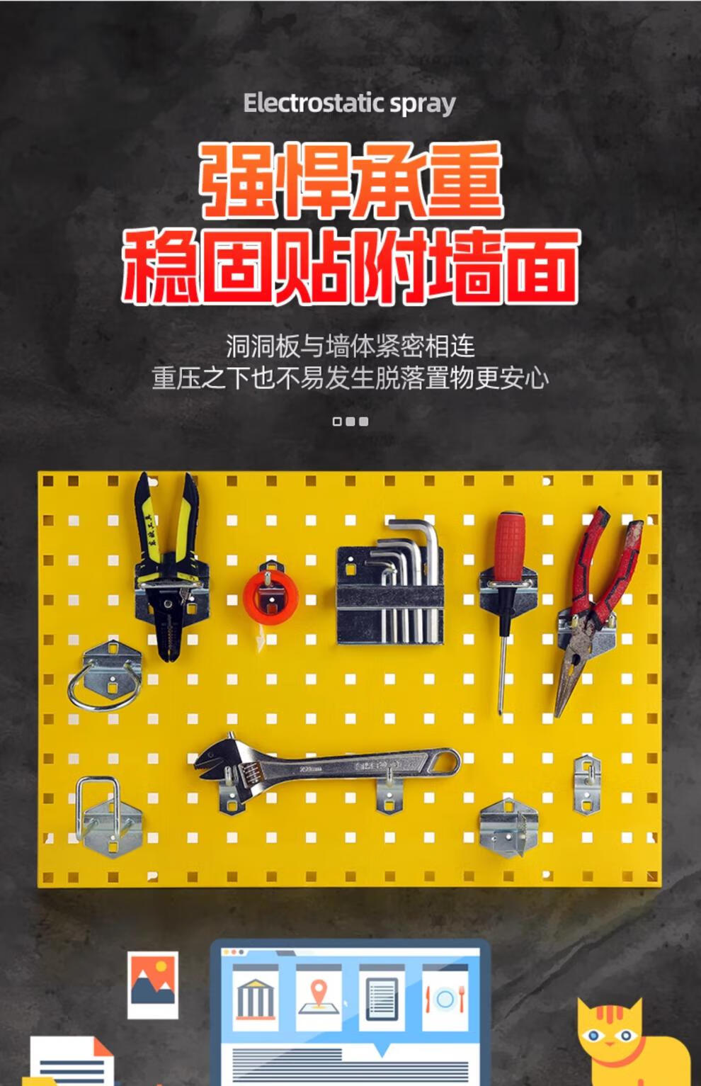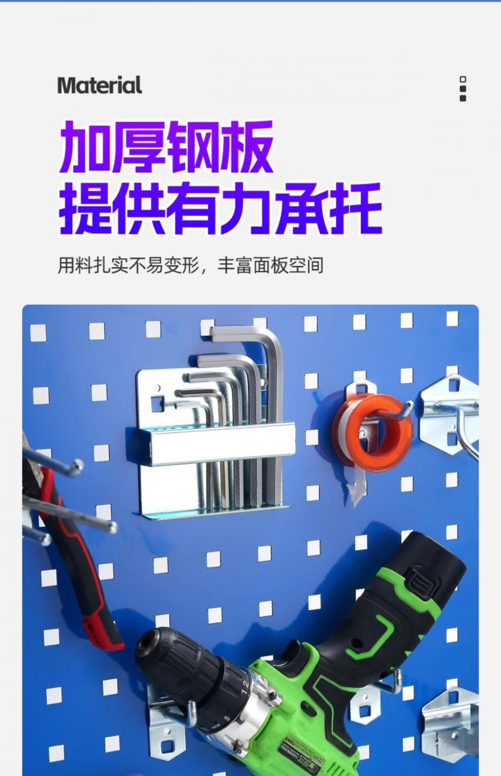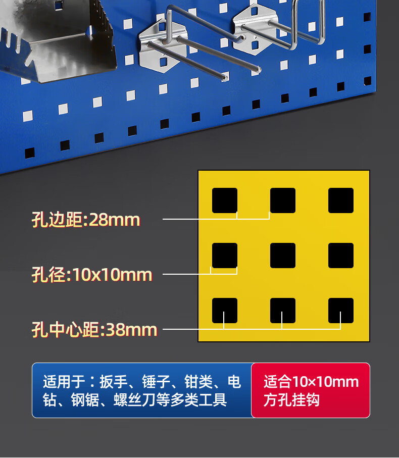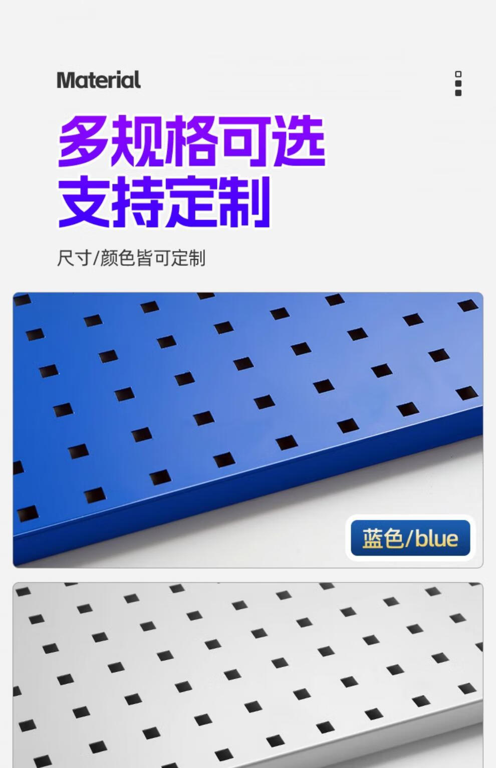 Hole plate metal square hole hole plate storage rack hardware tool hanging board storage wall hanging rack hook custom exhibition 1200*450 material 1.2MM five textures available
