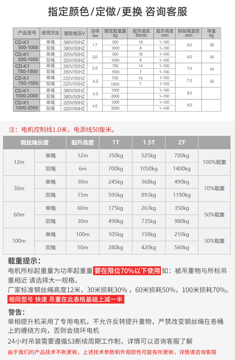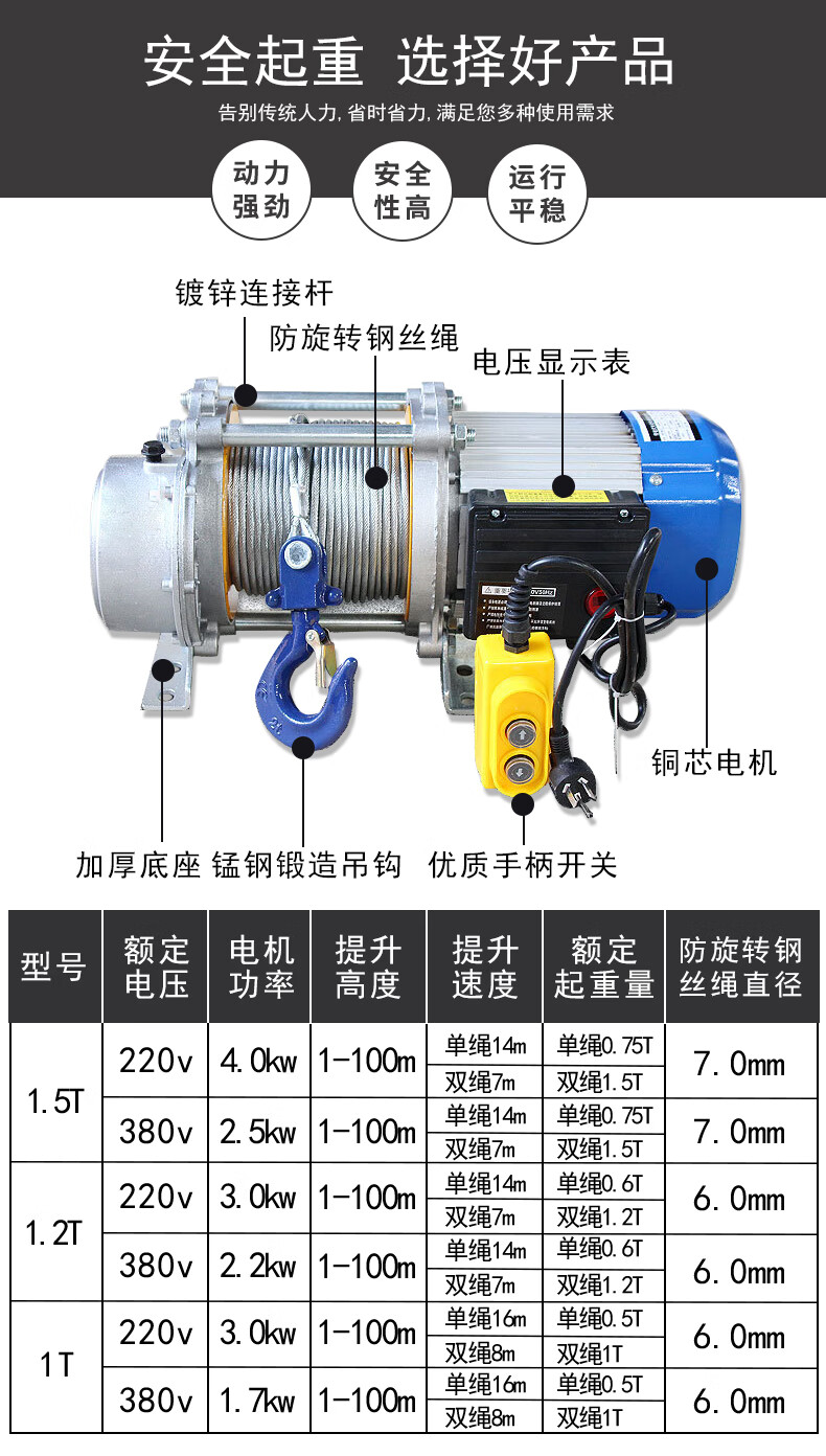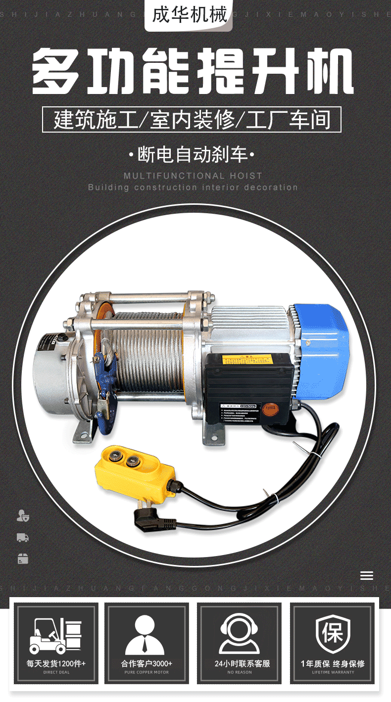 Chenghua Juli aluminum shell electric hoist 220V multi-function hoist 1 ton 2 ton T winch crane crane household 220V 1 ton 60 meters slow speed