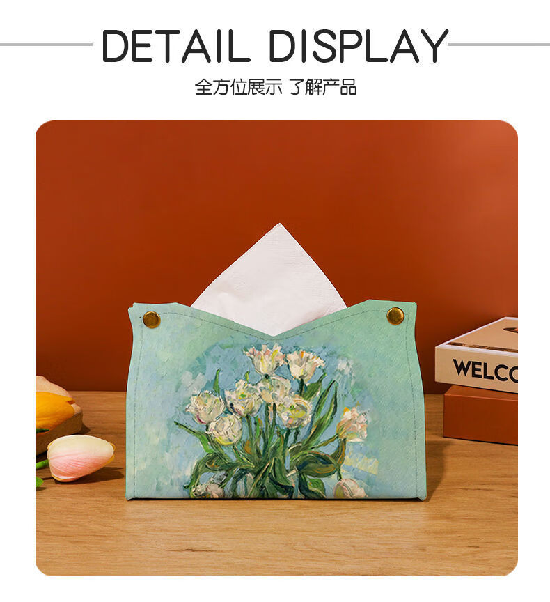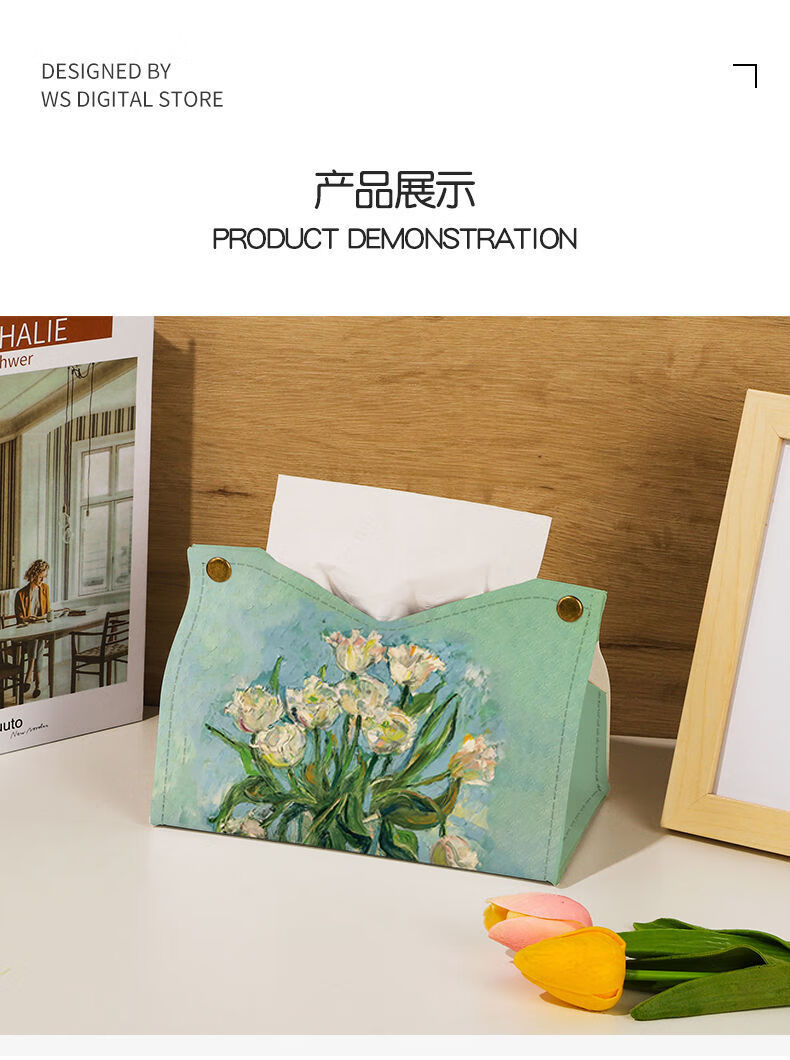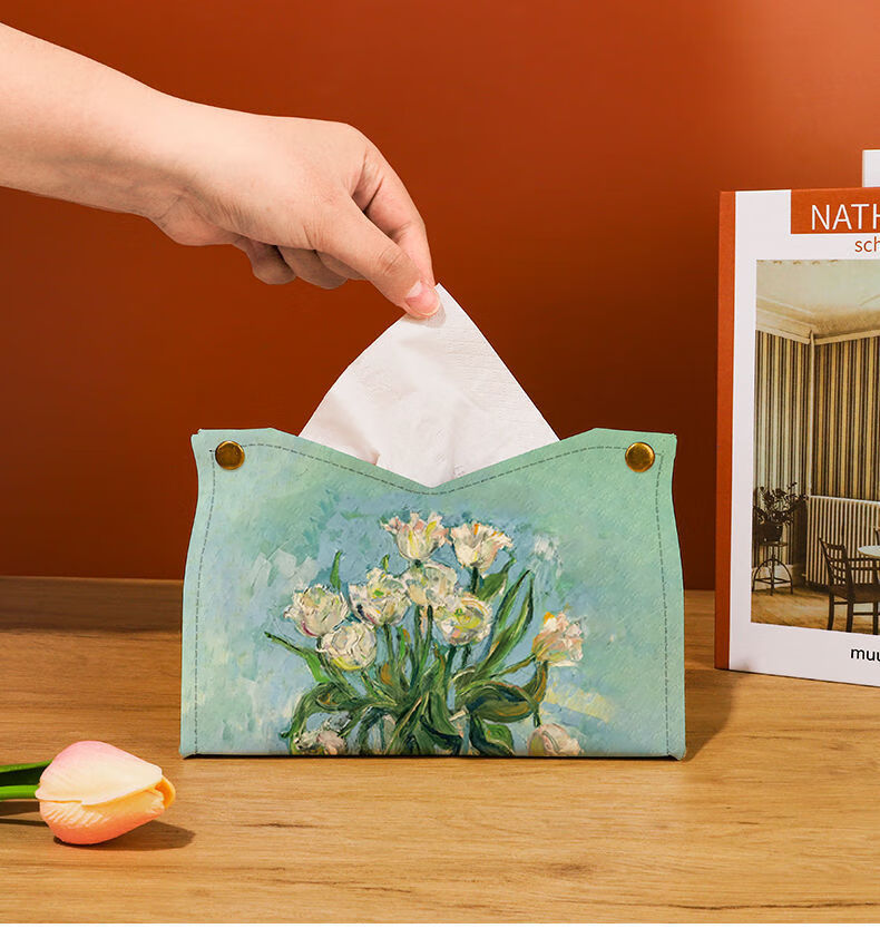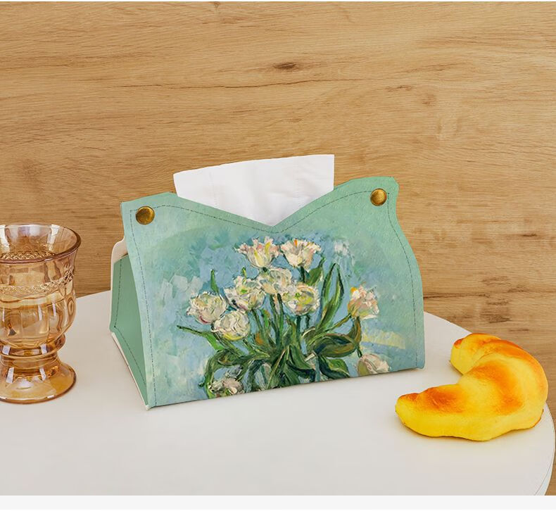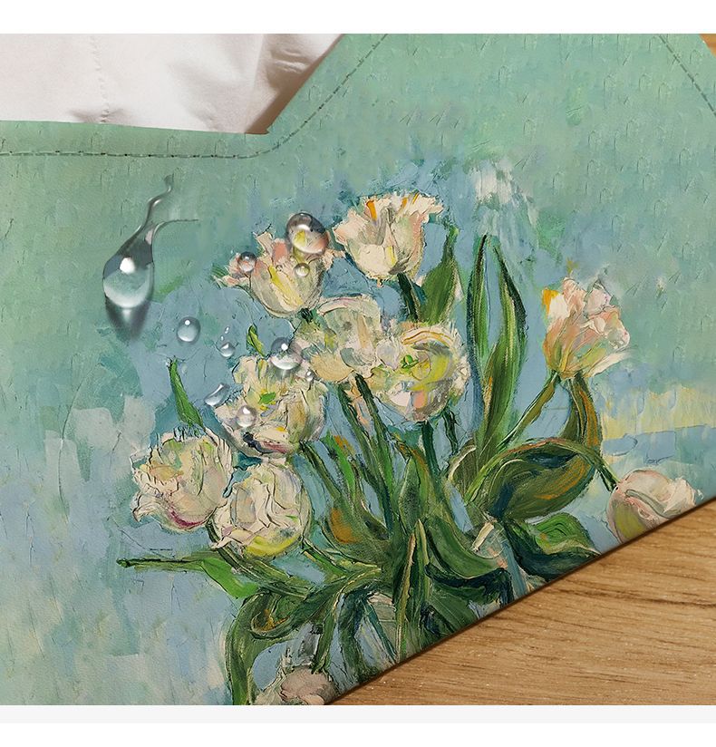 Yumi oil painting paper box, light luxury home living room paper box, retro tissue storage box, light luxury restaurant paper tissue box, white rose in oil painting bottle 1 piece