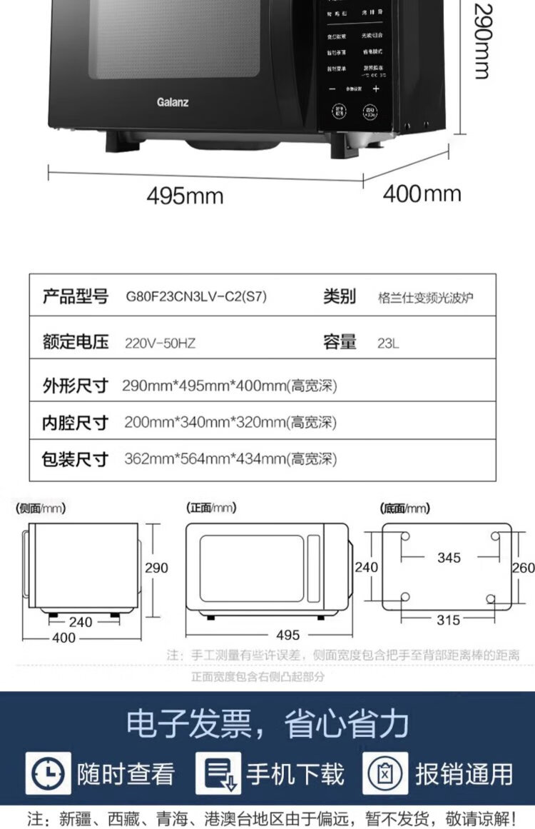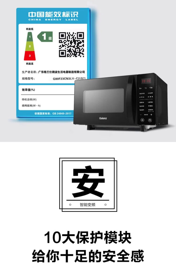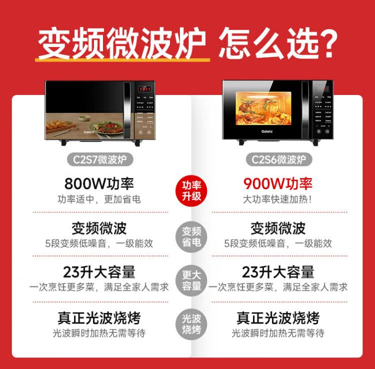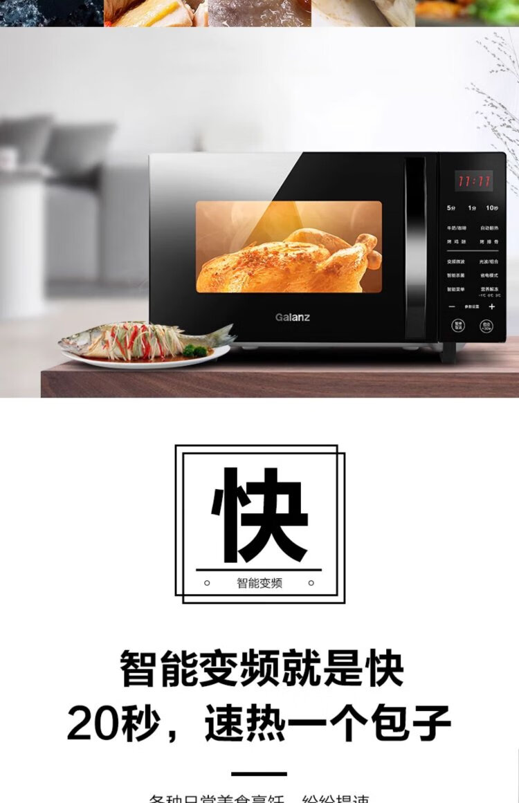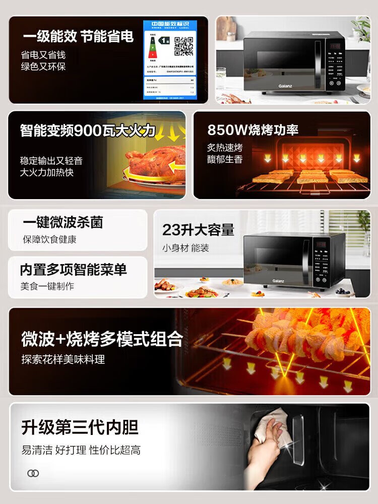 Galanz inverter microwave oven all-in-one 900W power-saving first-class energy efficiency household large flat panel 23L large capacity intelligent high-power fast heating inverter micro-roast all-in-one store manager recommendation