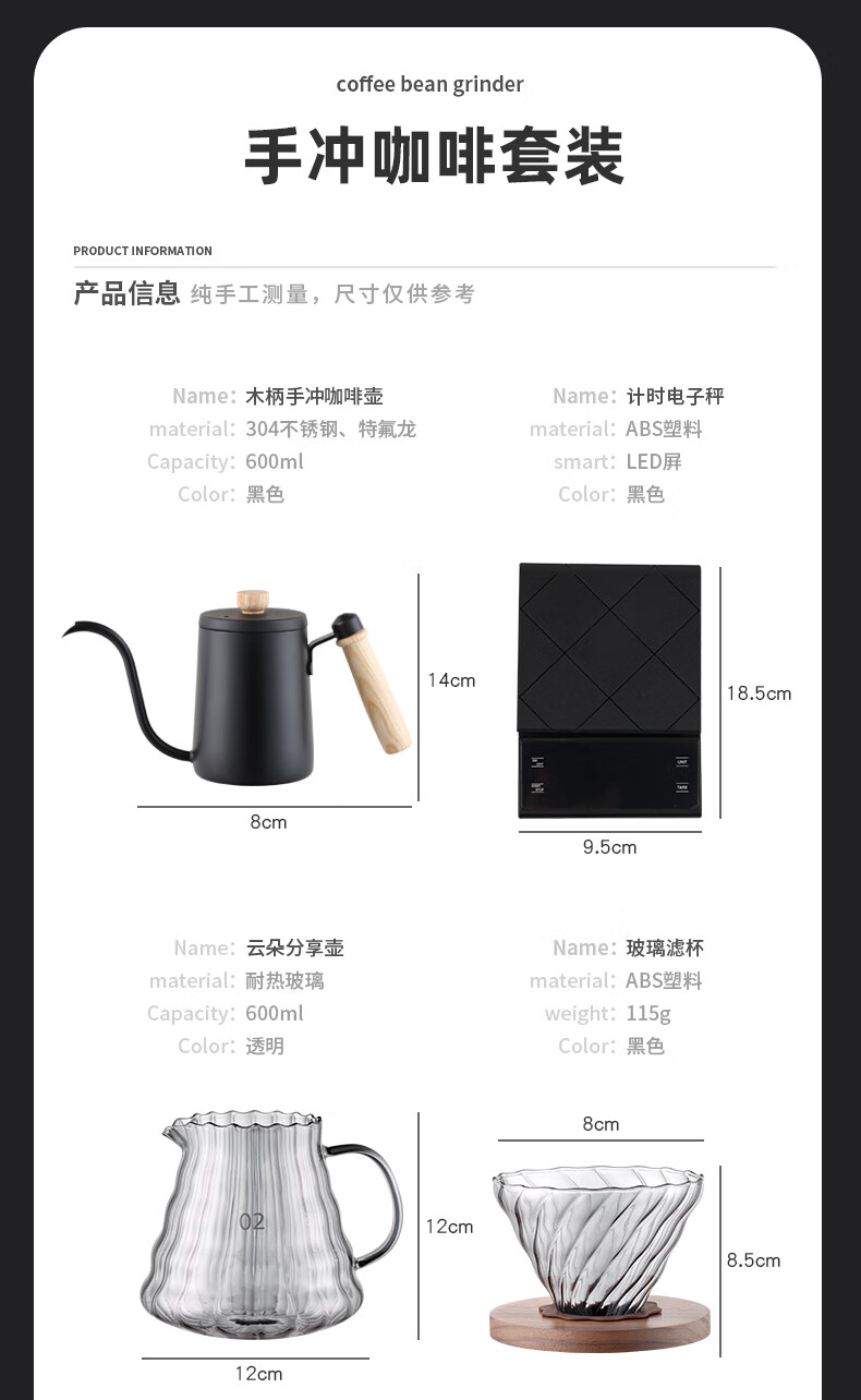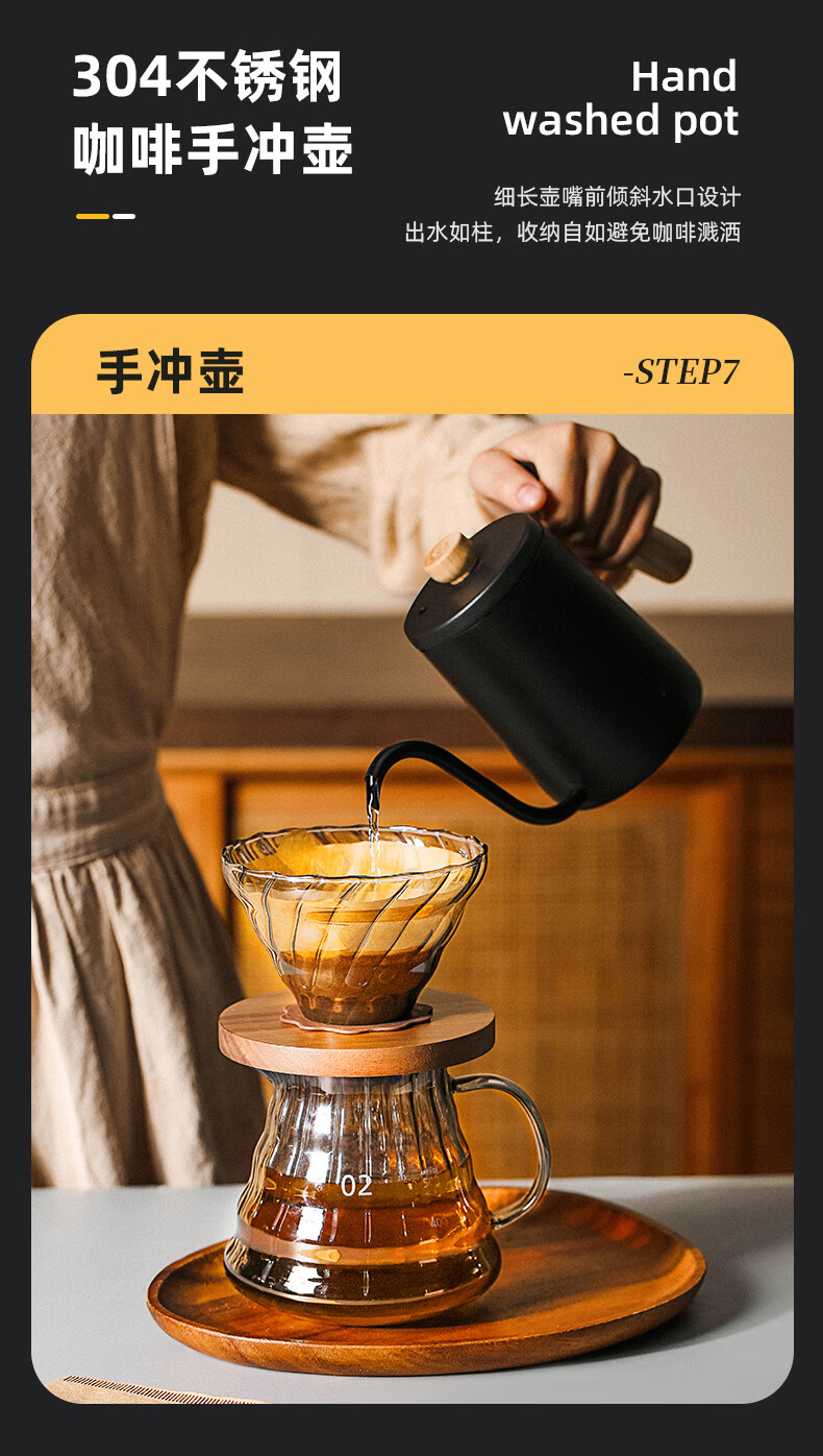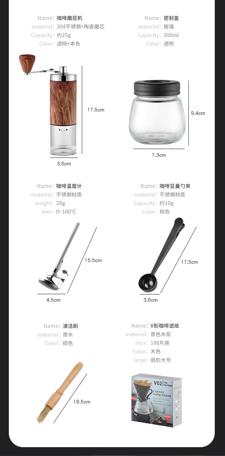 JUST hand-grinding hand-brewed coffee pot set home outdoor equipment hand-cranked coffee bean grinding equipment full set of coffee machine 7-piece set special for coffee beans basic set
