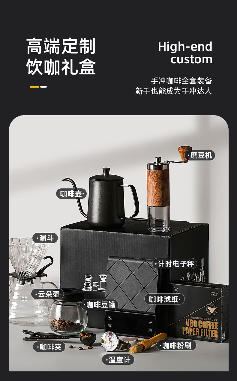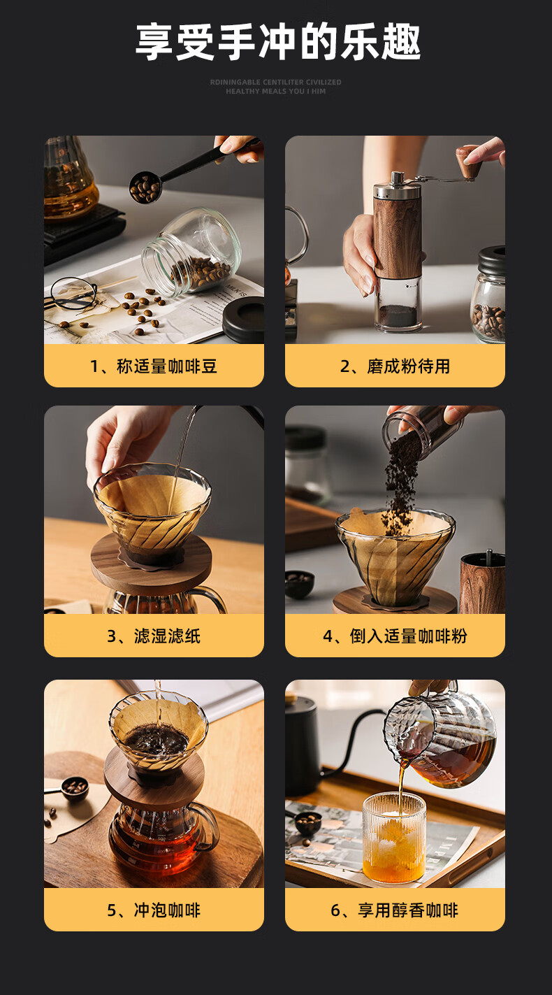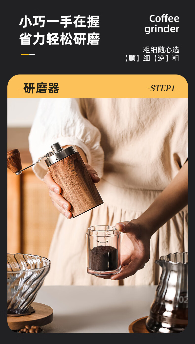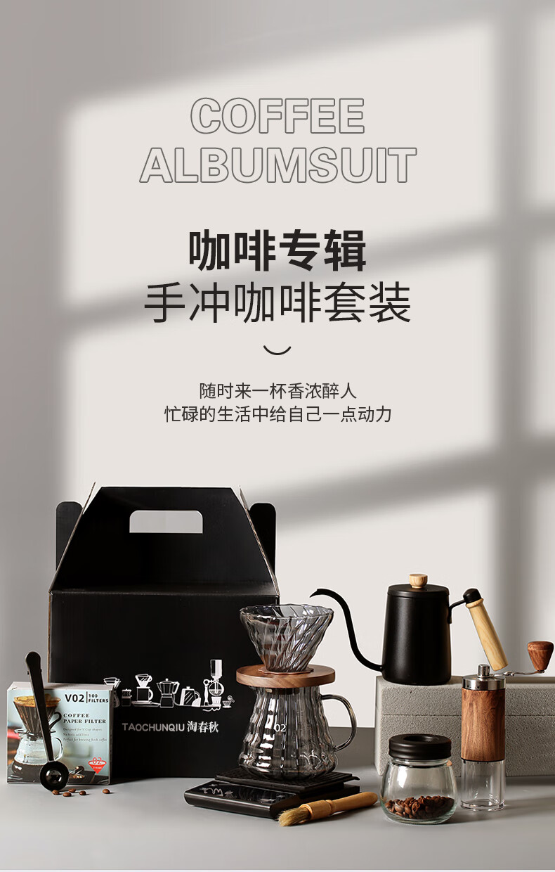 JUST hand-grinding hand-brewed coffee pot set home outdoor equipment hand-cranked coffee bean grinding equipment full set of coffee machine 7-piece set special for coffee beans basic set