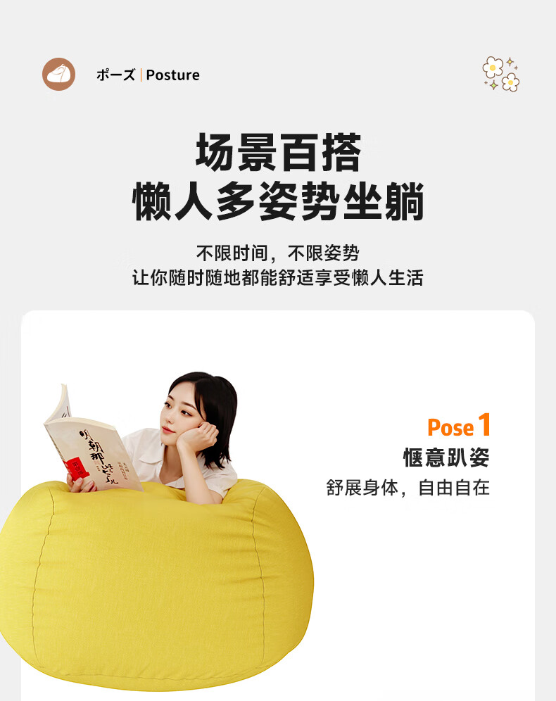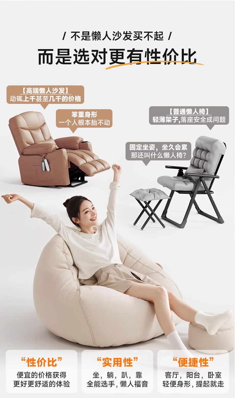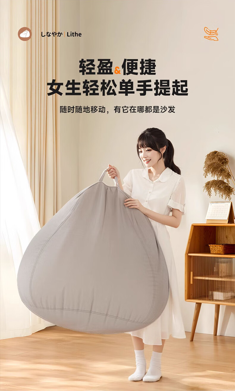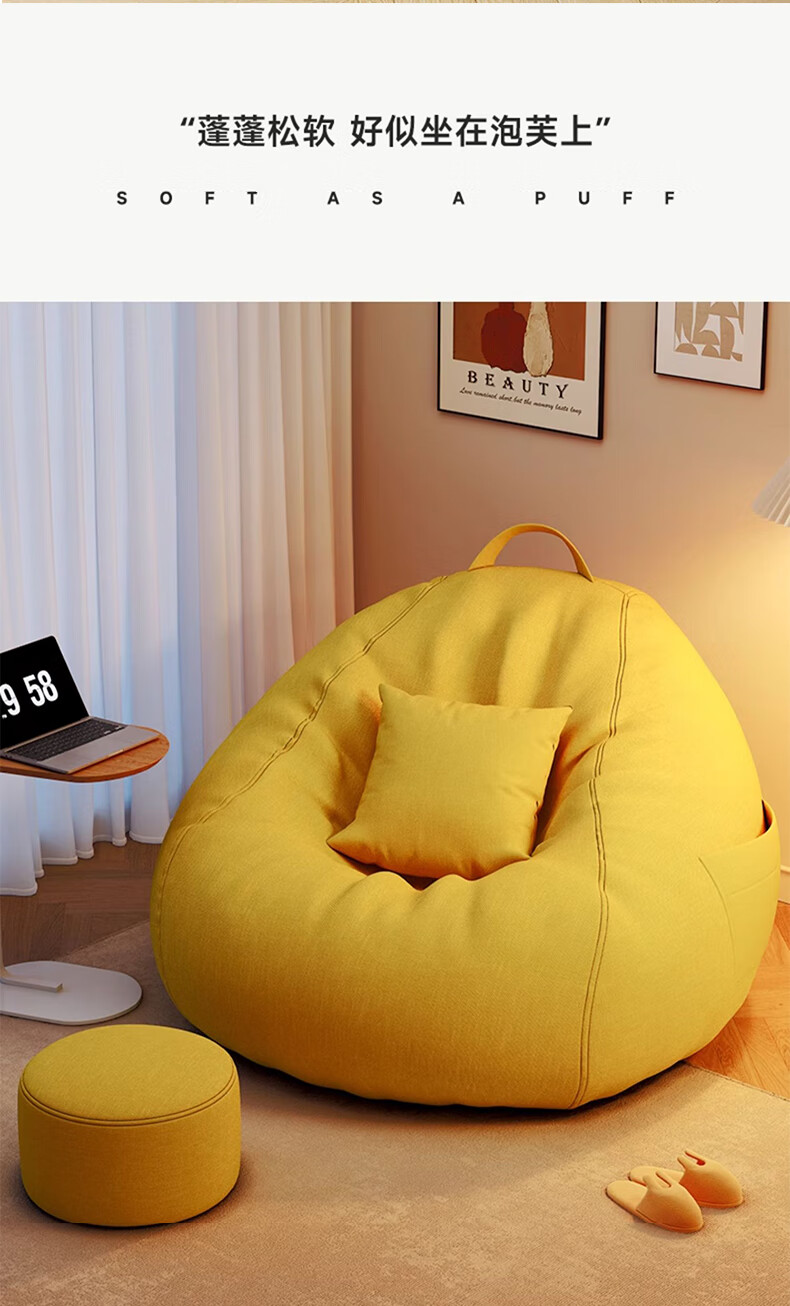 Hua Beisen lazy sofa bean bag can sleep single sofa chair lying down leisure small sofa small apartment living room home sofa dark gray comes with pillow + footstool, extra large model suitable for 130-150CM