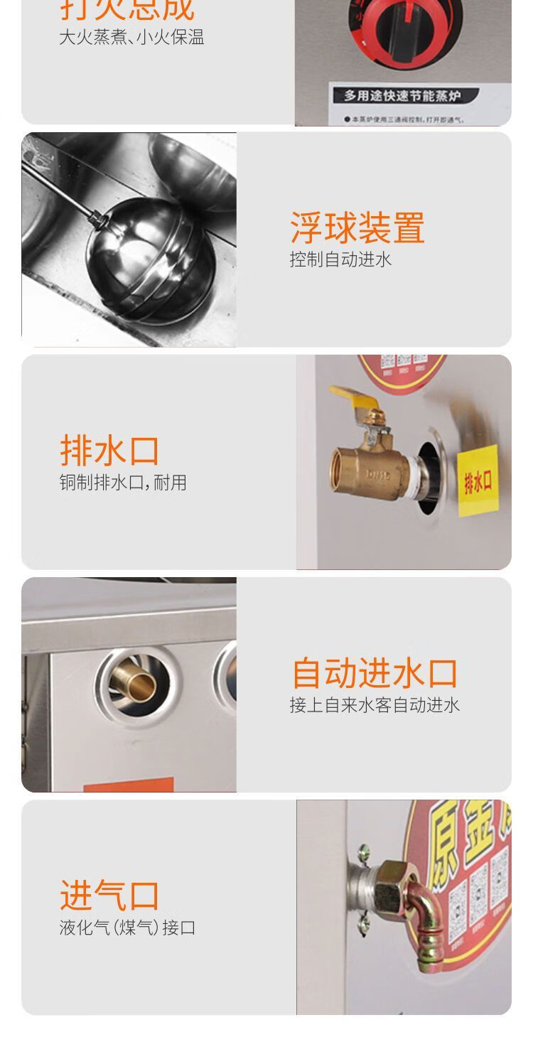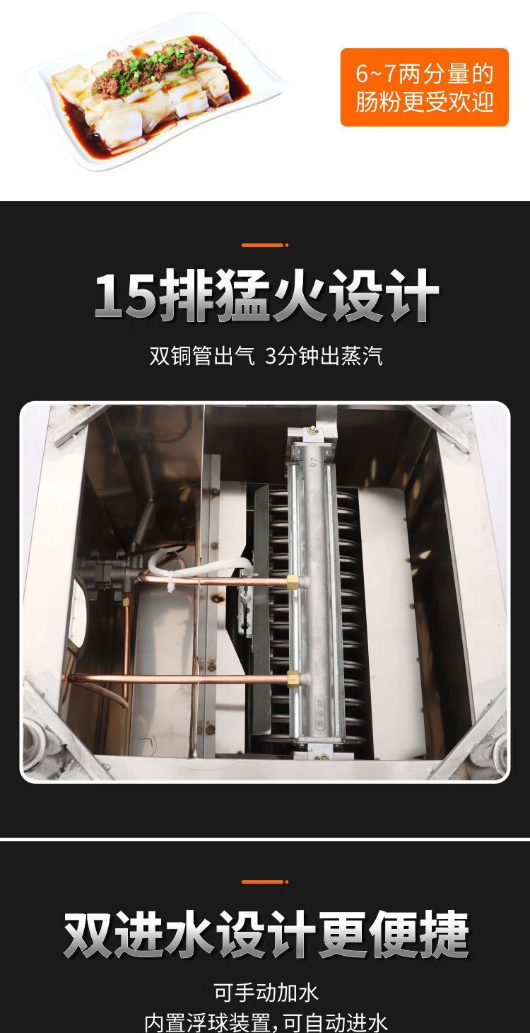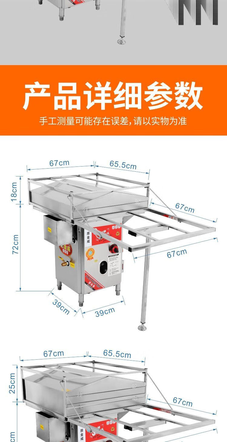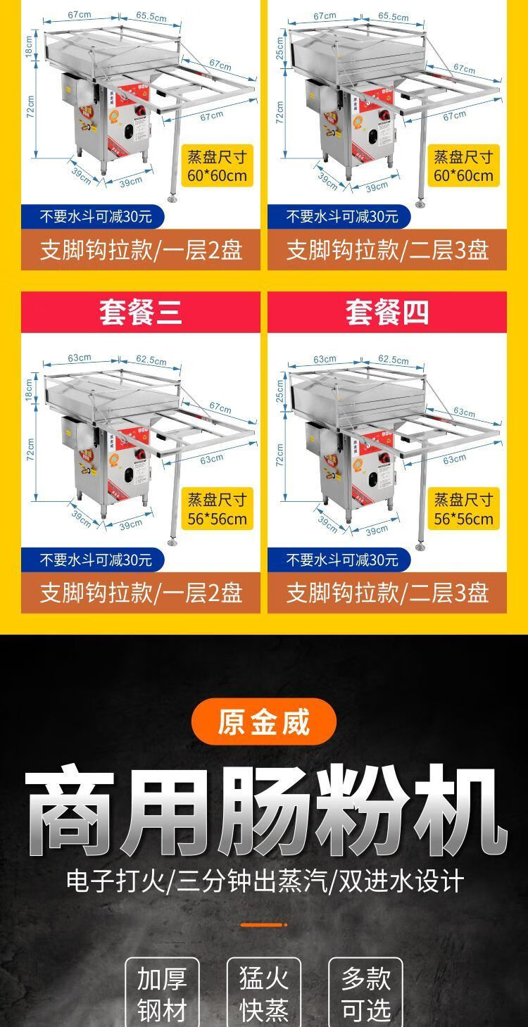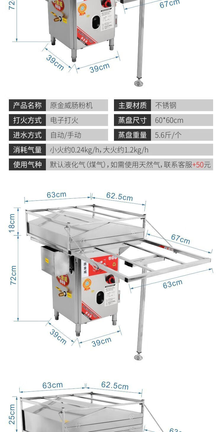 Original Jinwei anti-dry burning original Jinwei rice roll machine steamer commercial stall Guangdong rice roll machine liquefied gas steam oven complete set of rice roll machine anti-dry burning model hand-pulled 56*56 one layer with bracket