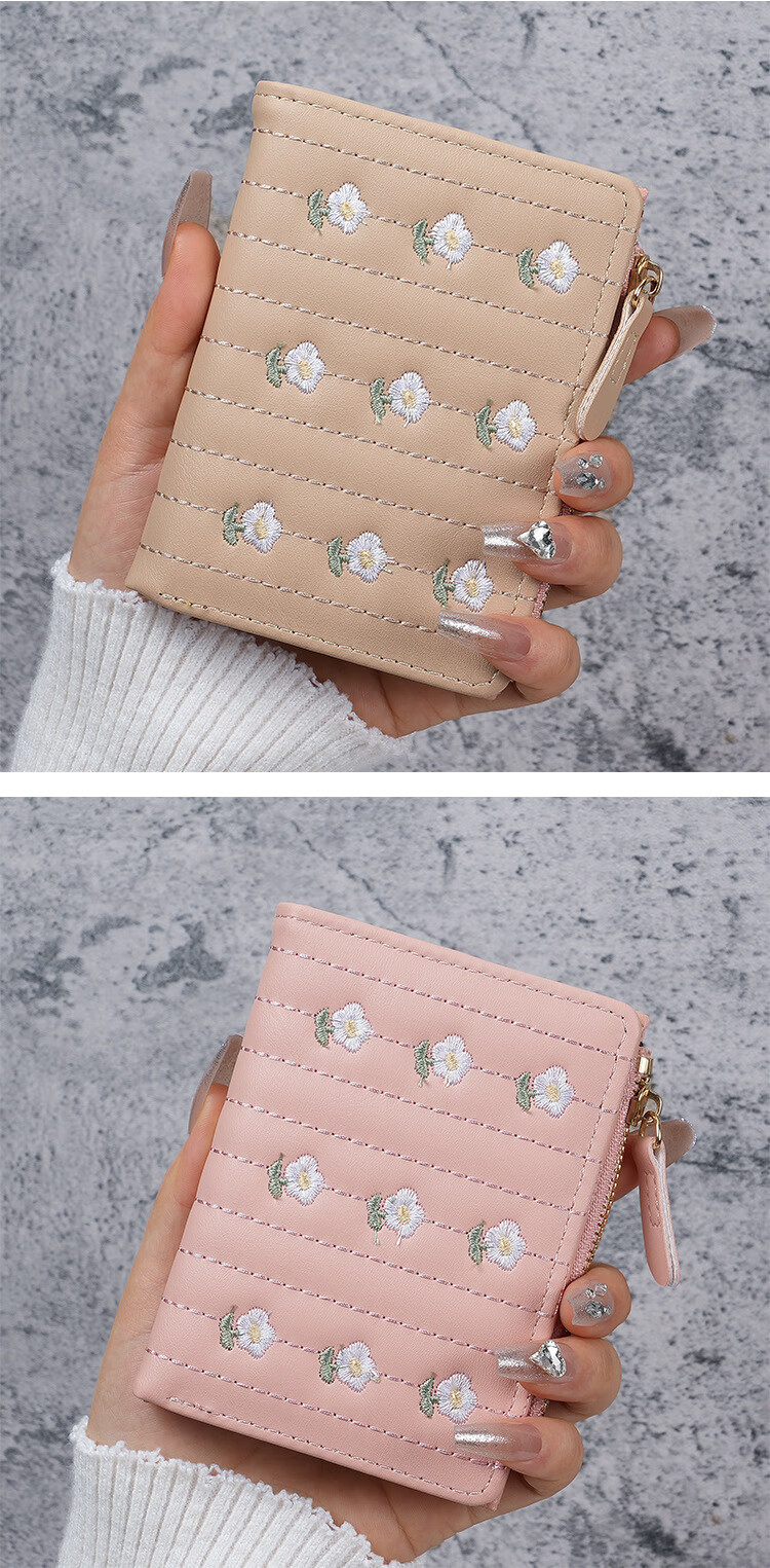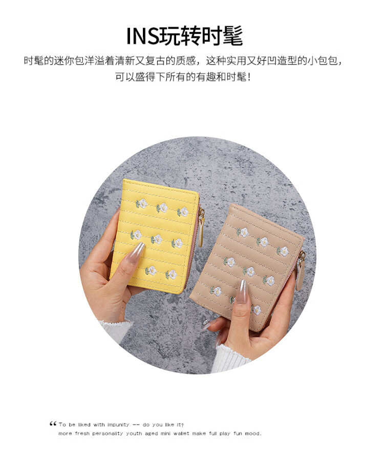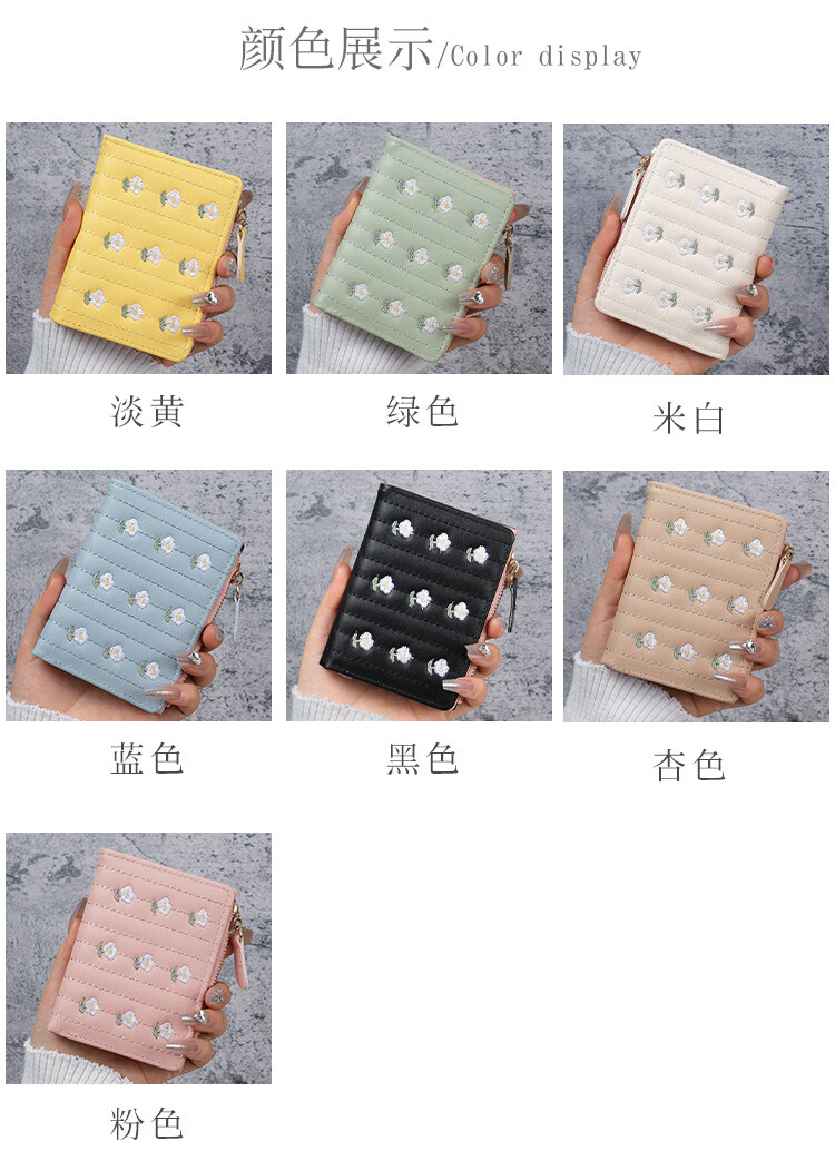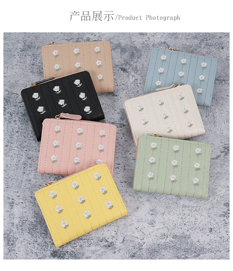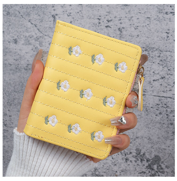 Chajin New 2024 Fashion Korean Version Cute Embroidered Women's Wallet Simple Short Two-fold Coin Card Holder Yellow