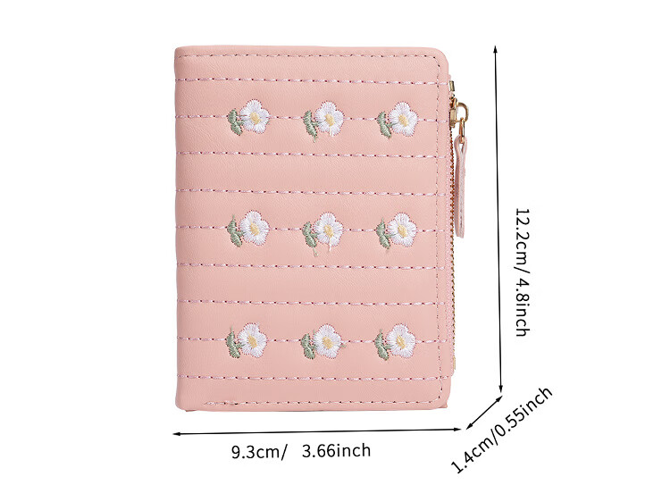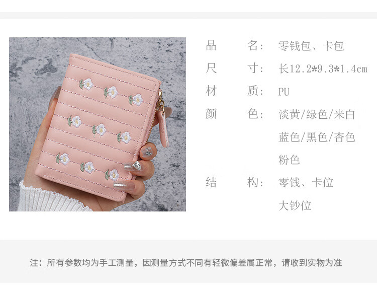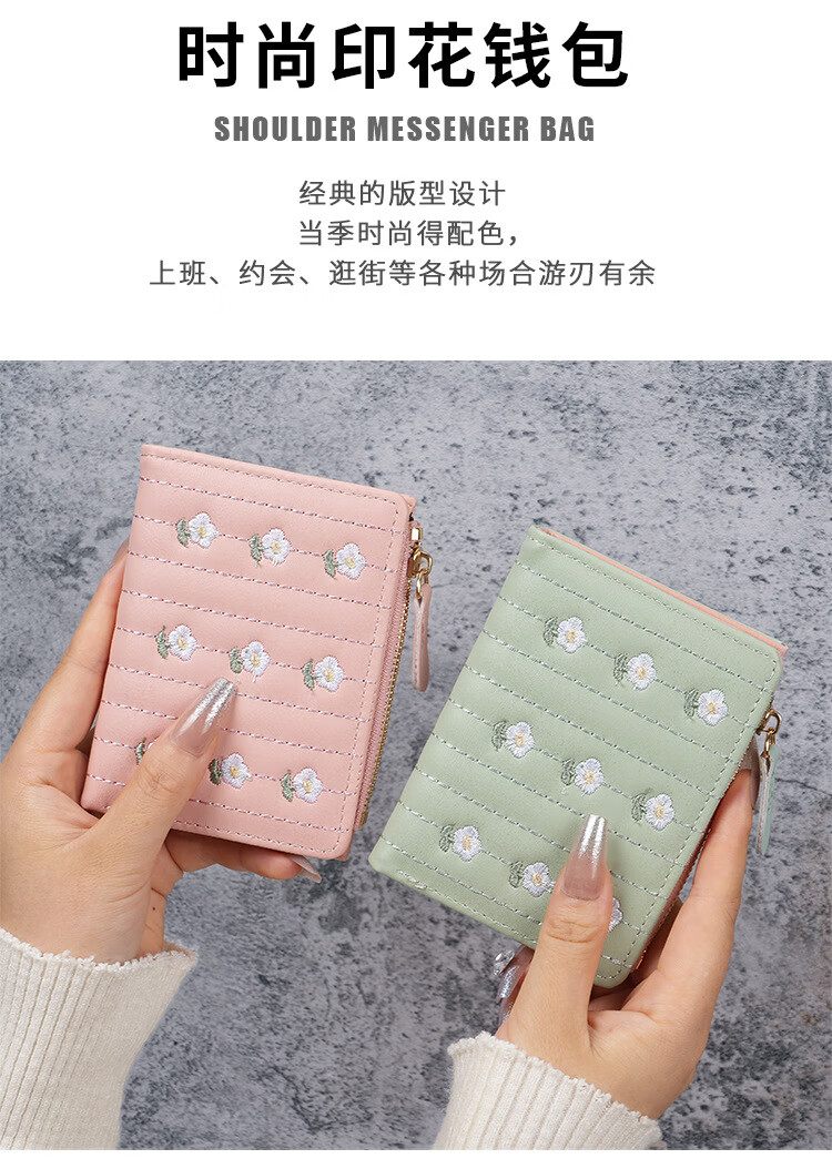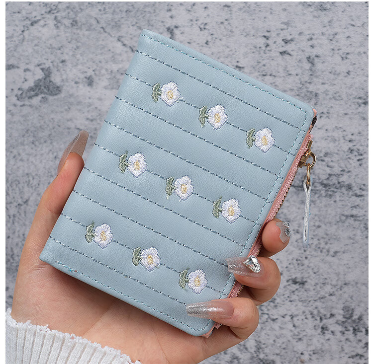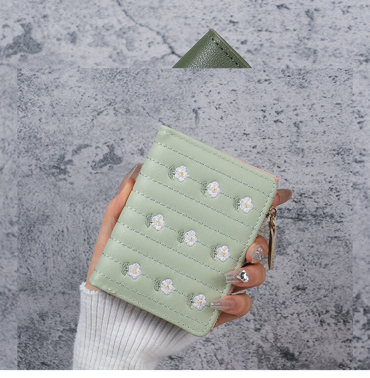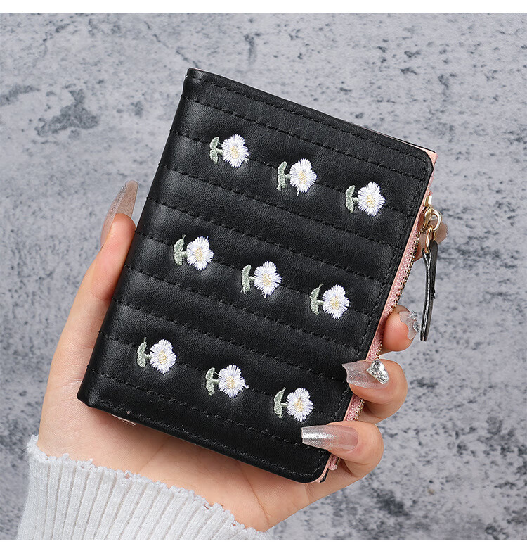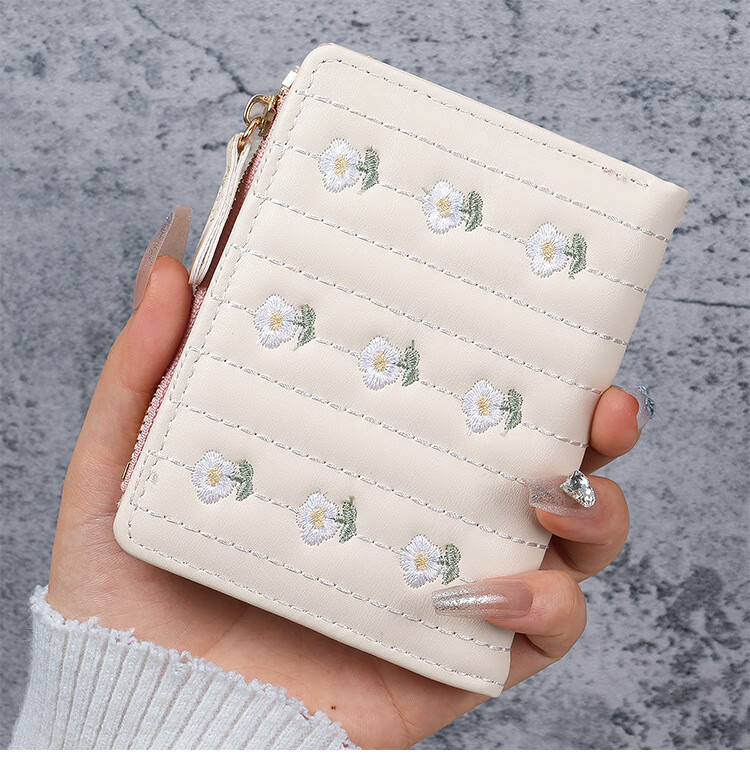 Chajin New 2024 Fashion Korean Version Cute Embroidered Women's Wallet Simple Short Two-fold Coin Card Holder Yellow