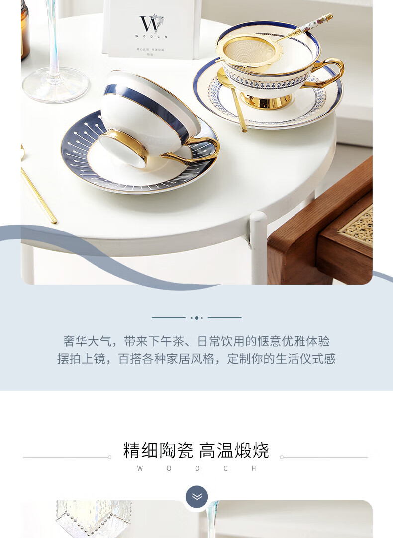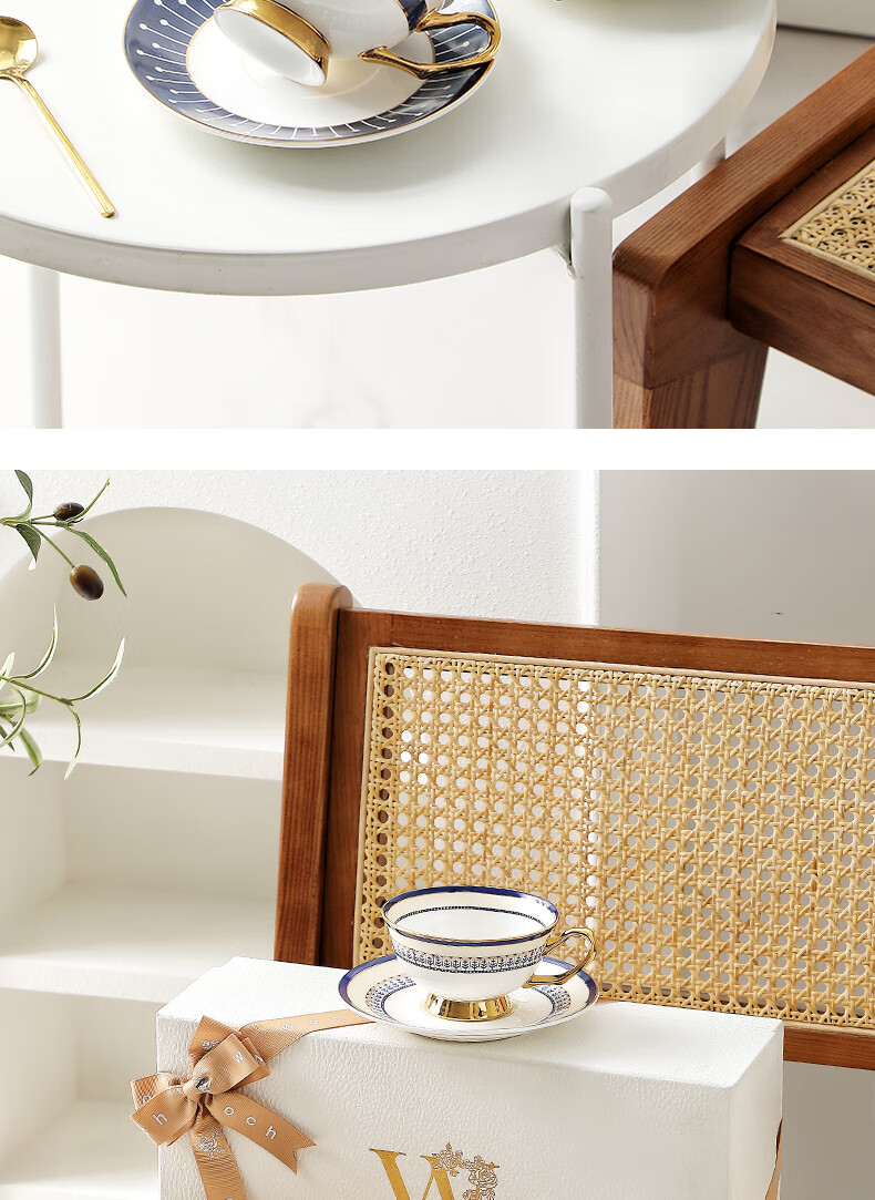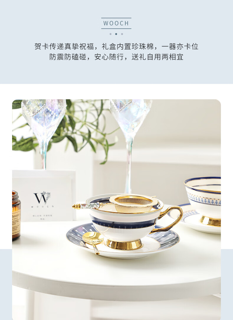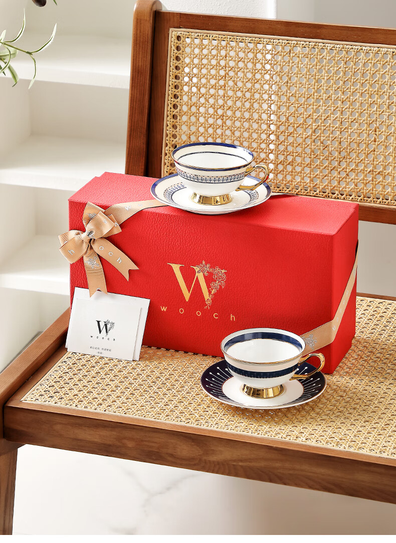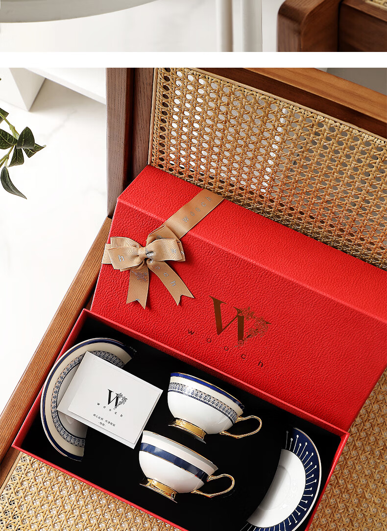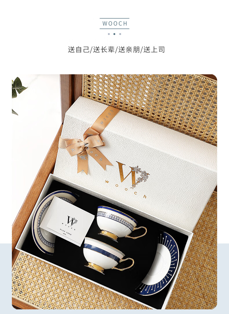 WOOCH Ouya Blue Couple Cup and Saucer Gift Box, High-End Exquisite Coffee Cup for Best Friend to Move into a New Home, Wedding Souvenir Ouya Blue Series Cup and Saucer Matching Cup + Platinum Gift Box