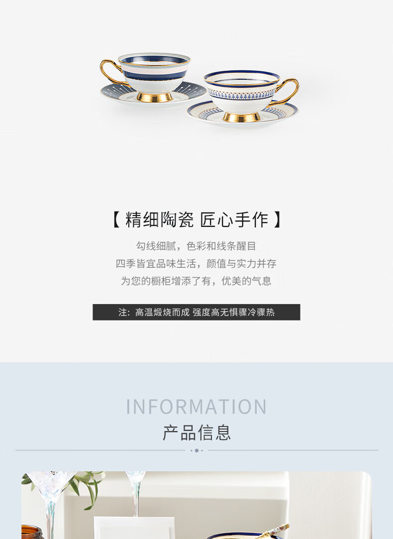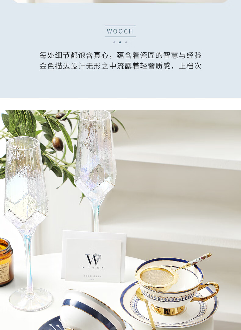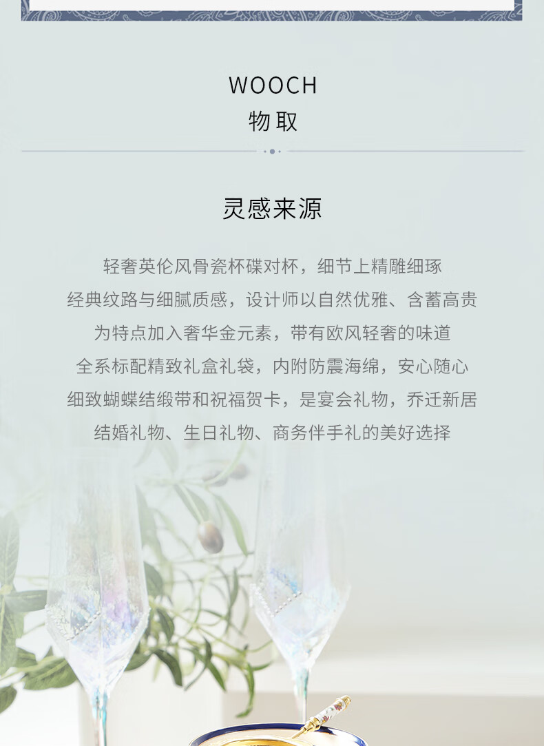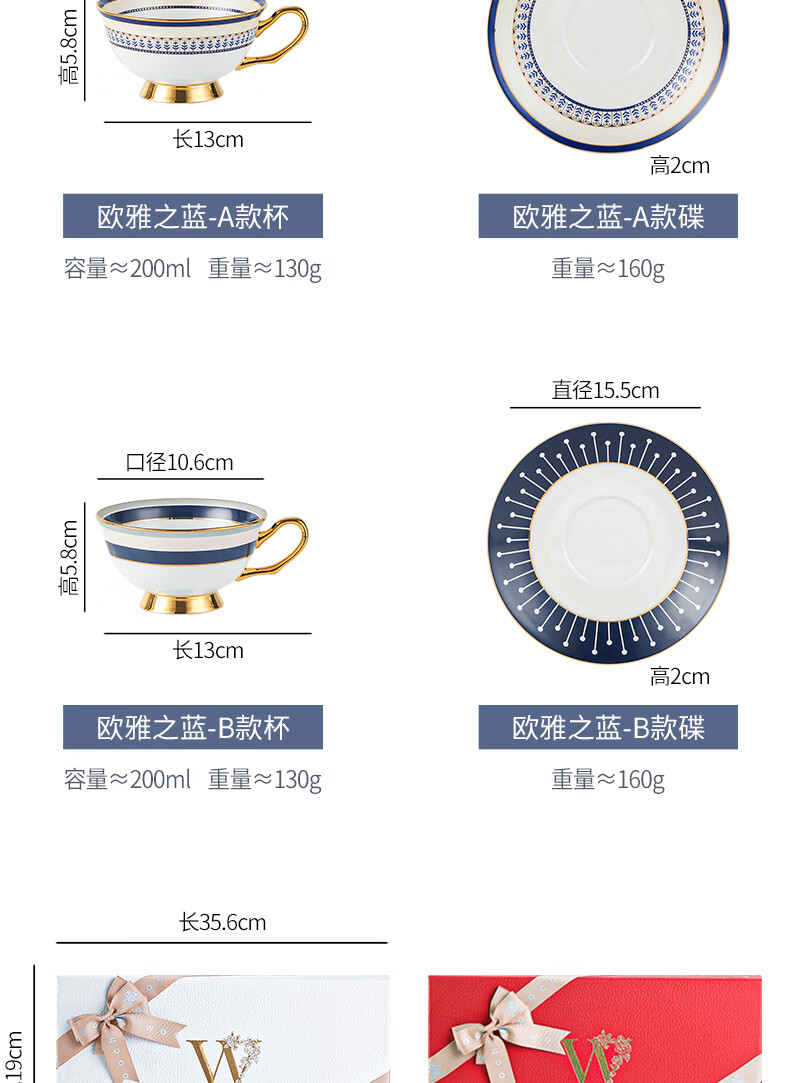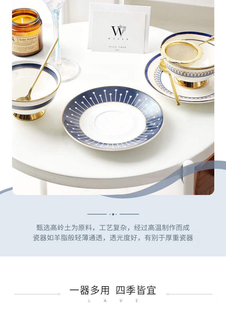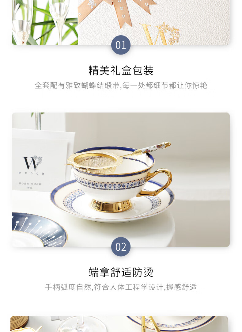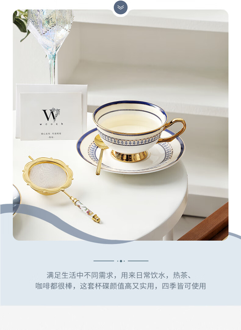 WOOCH Ouya Blue Couple Cup and Saucer Gift Box, High-End Exquisite Coffee Cup for Best Friend to Move into a New Home, Wedding Souvenir Ouya Blue Series Cup and Saucer Matching Cup + Platinum Gift Box