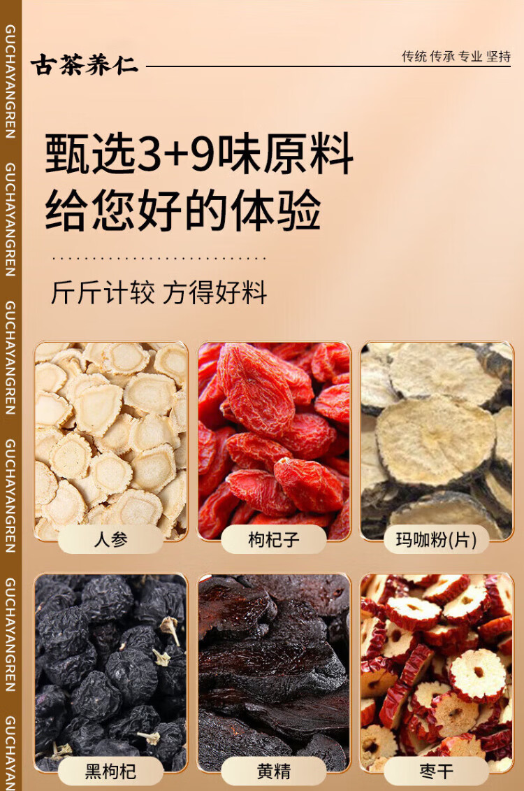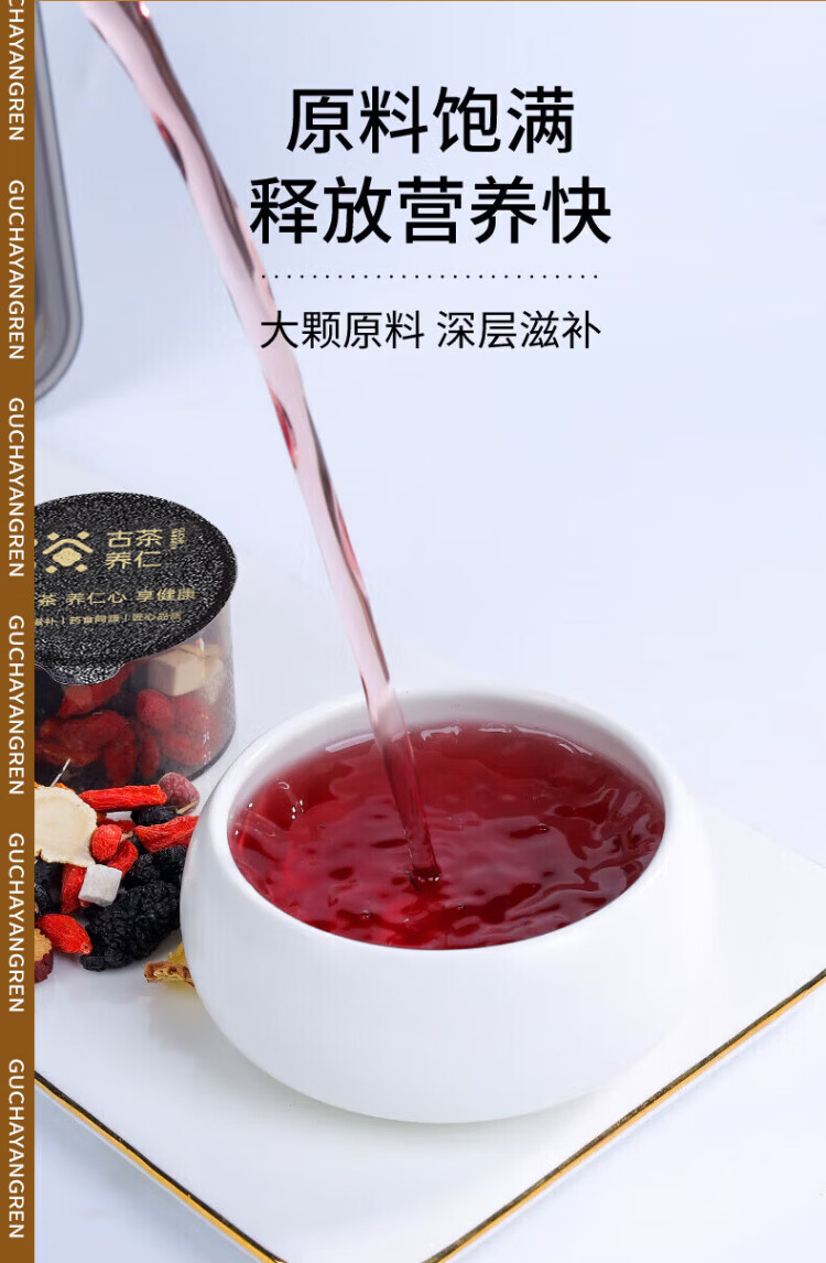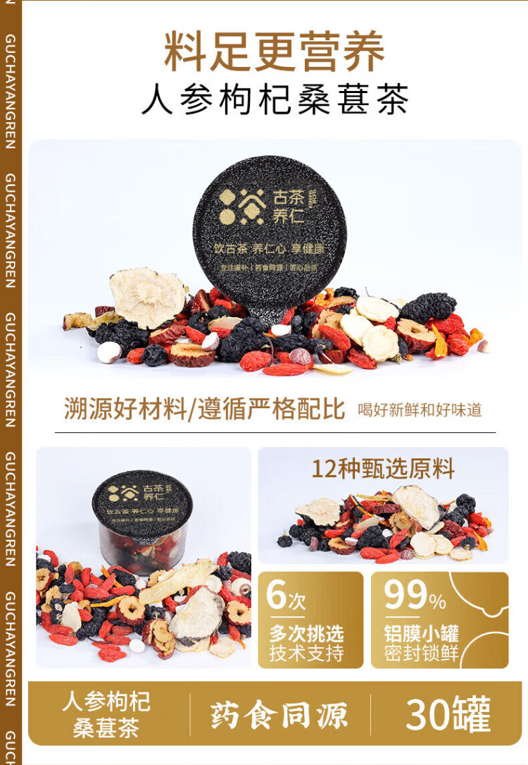 Ancient tea nourishes the heart, ginseng and wolfberry health tea nourishes the kidneys and strengthens yang, men's vitality four treasure tea six treasures eight treasures tea gift box gift box 540g 2 boxes of 60 cans (moderate nourishment) gradually strengthen
