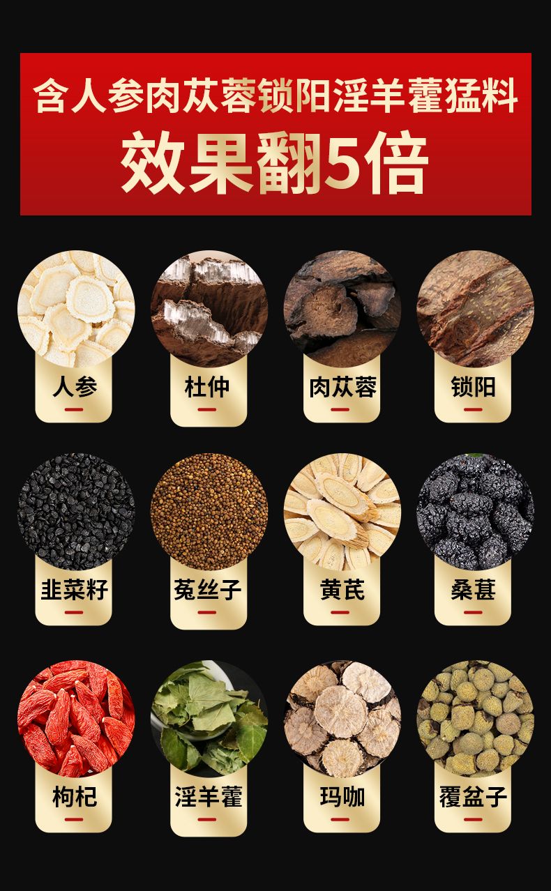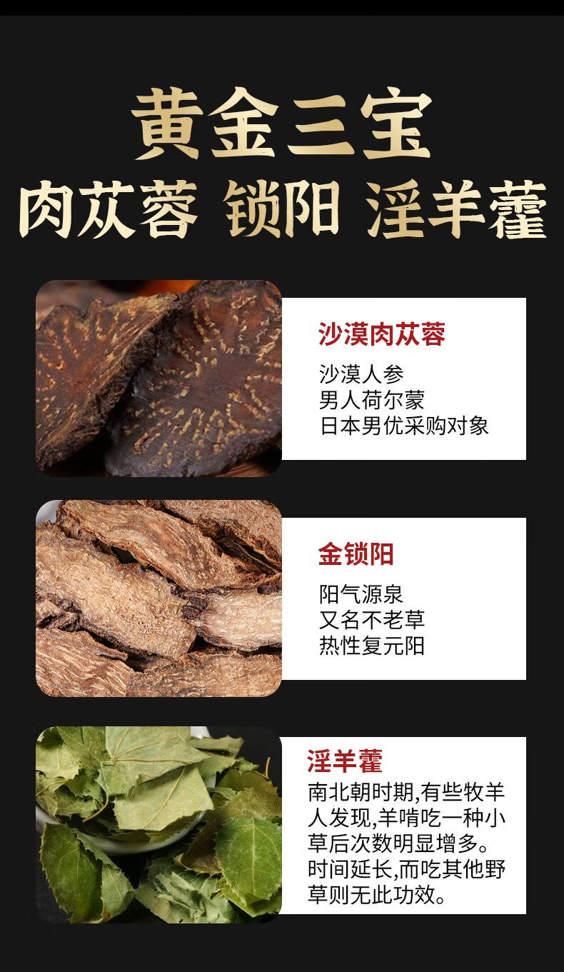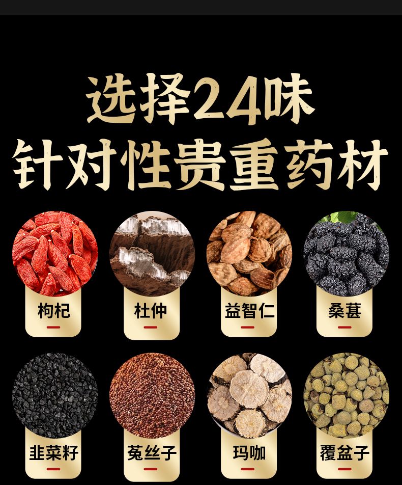 Ginseng, mulberry and wolfberry tea to strengthen the kidneys and replenish essence for men. Cistanche deserticola, epimedium, morinda, Cynomorium, Polygonatum japonica, maca, ginseng, wolfberry, mulberry, dried leek seeds, raspberries and kidney tea. For excessive use, 20 packs. Cycle pack. None