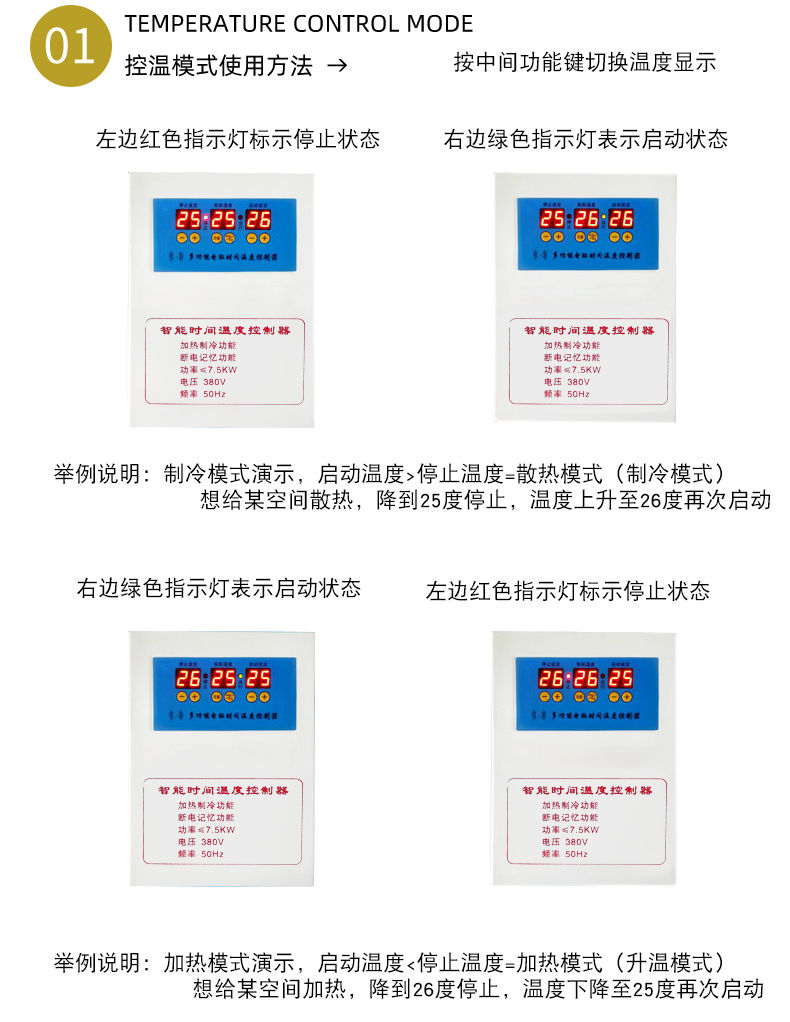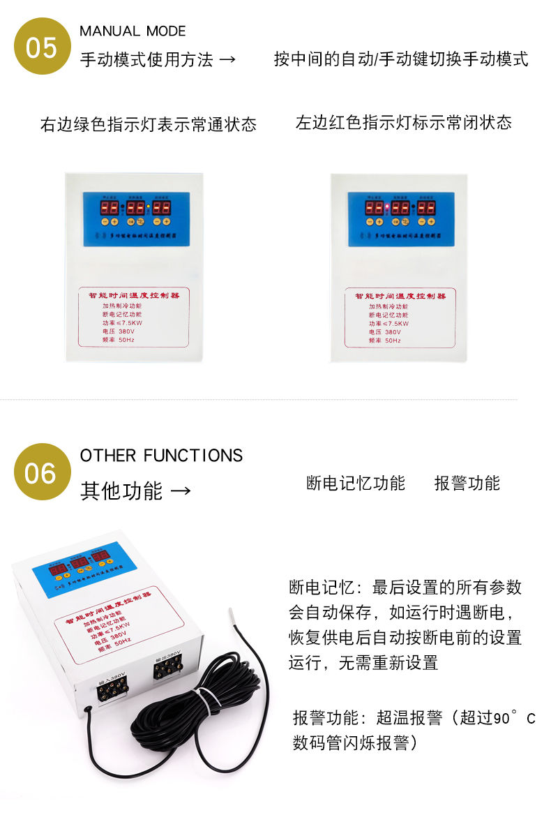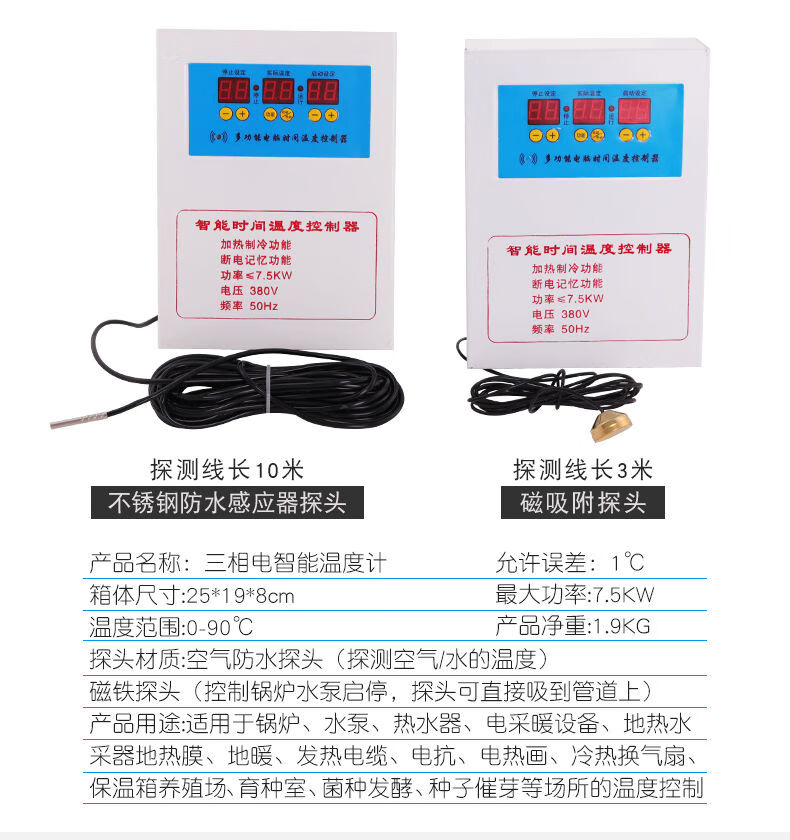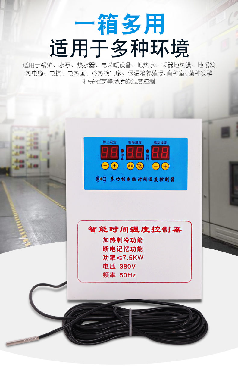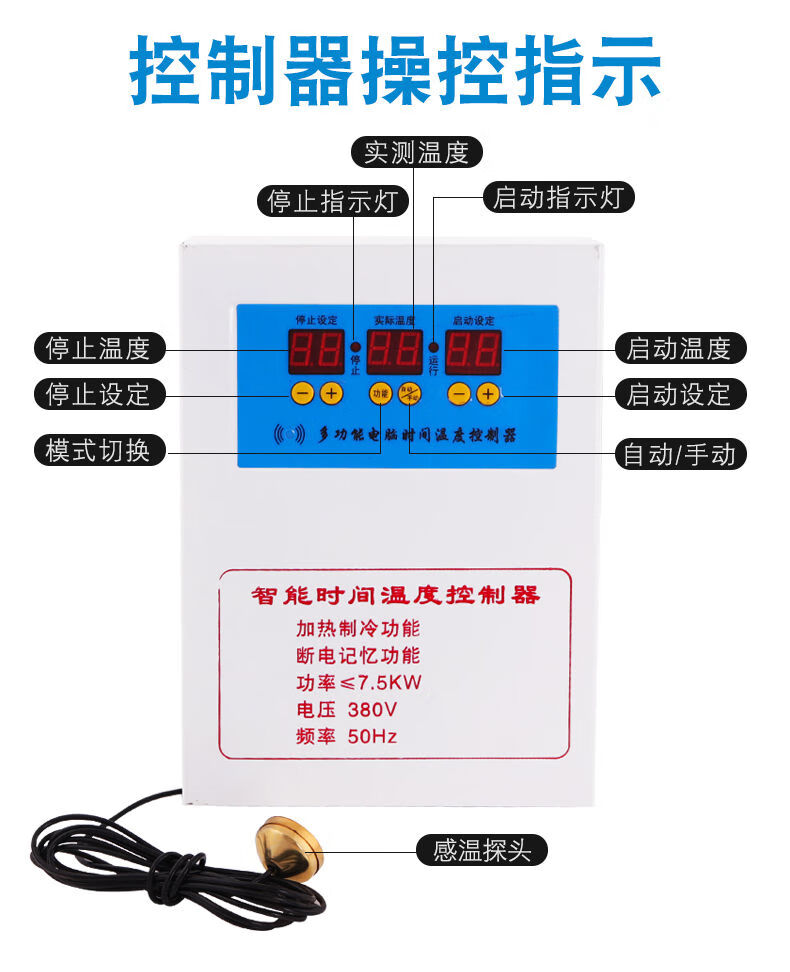 Three-phase electric 380V fully automatic intelligent thermostat temperature controller switch electronic thermostat temperature control 7.5K Ling three-phase electric thermostat-waterproof probe
