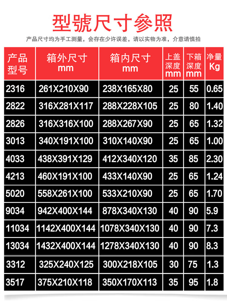 Safety protection box instrument equipment hardware tool box EDC tool equipment long box storage box waterproof Ling 13034 black box + sponge