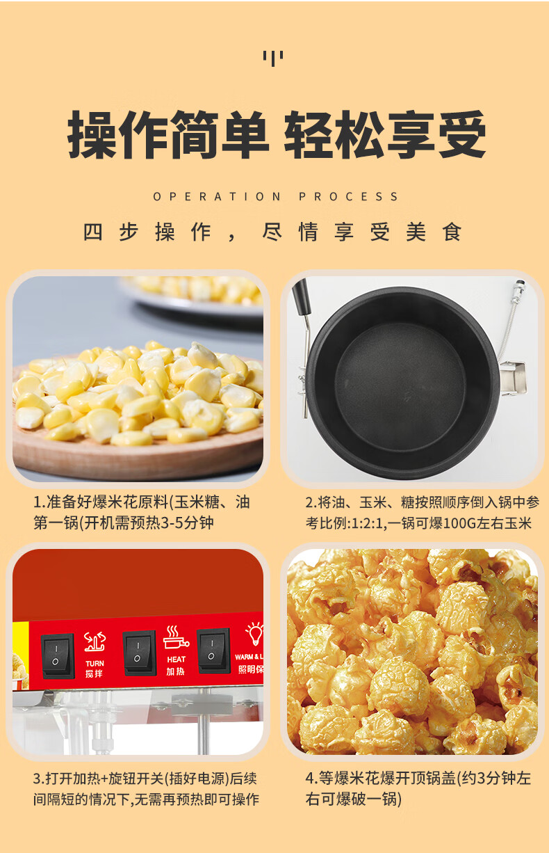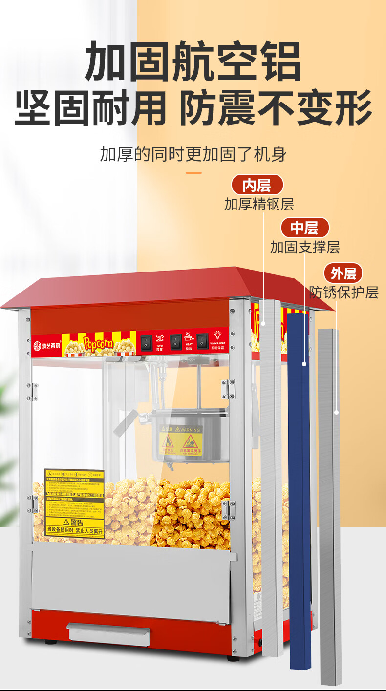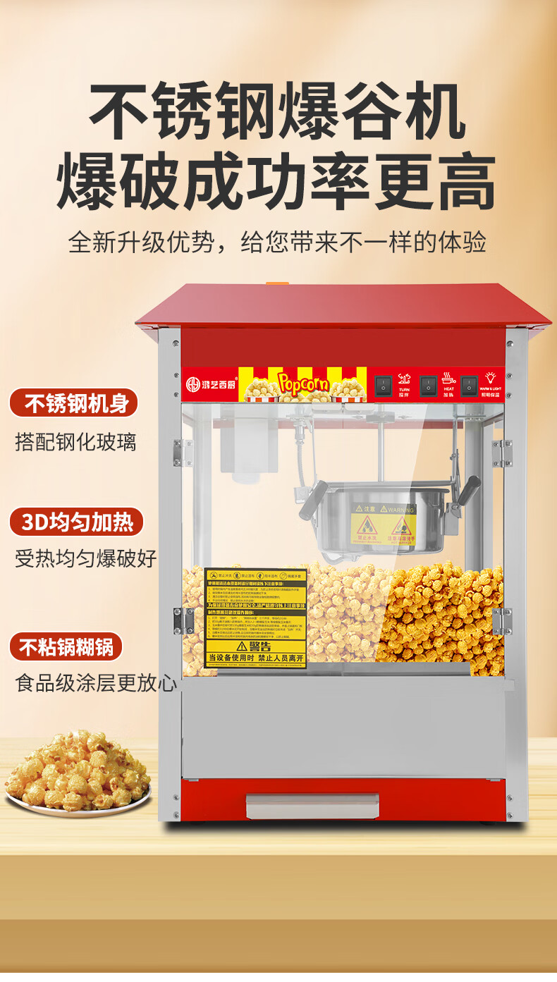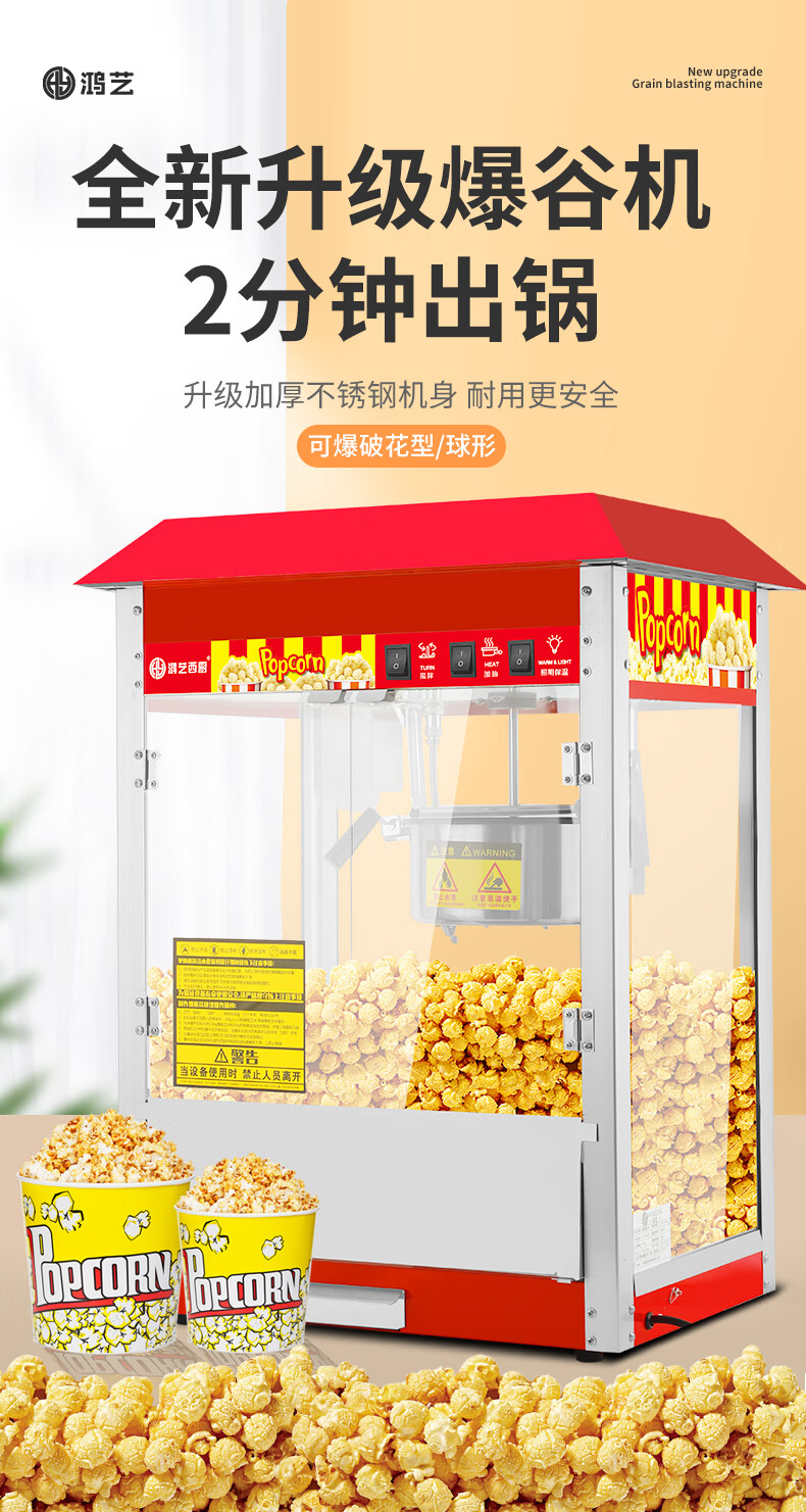 Hongyi Western Kitchen popcorn machine for commercial stalls, new fully automatic machine, electric corn popcorn puffer, popcorn machine, corn raw material, round 3-in-1 60 packs (chocolate flavor)