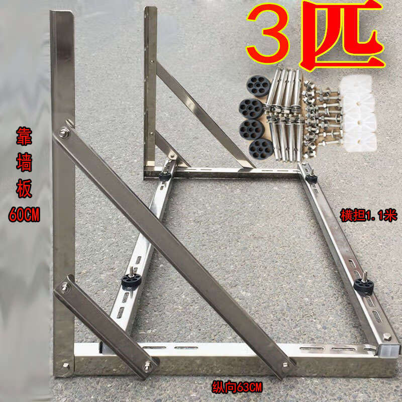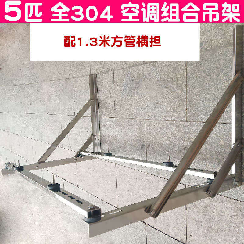 Huili stainless steel central air conditioner outdoor machine bracket thickened 304 flat bottom 1.5p 2 hp 3 hp hanger bracket Gree Daikin central air conditioner full 304 double pull hanger 1.1 m square tube