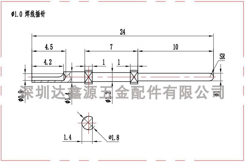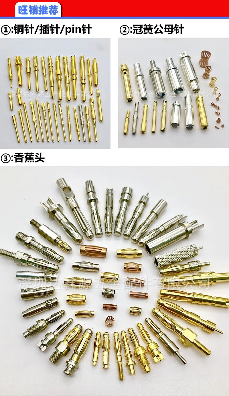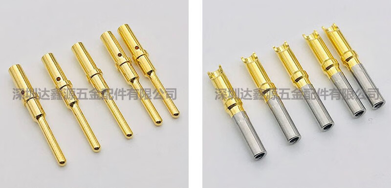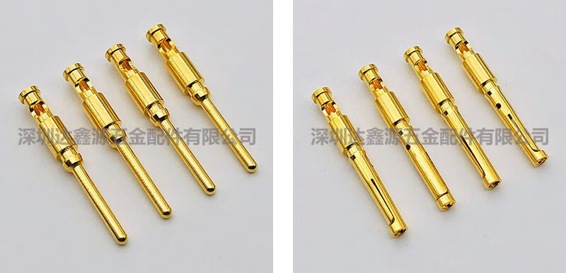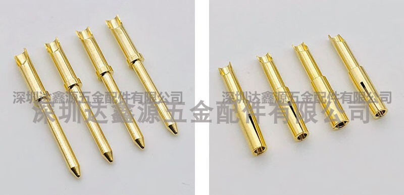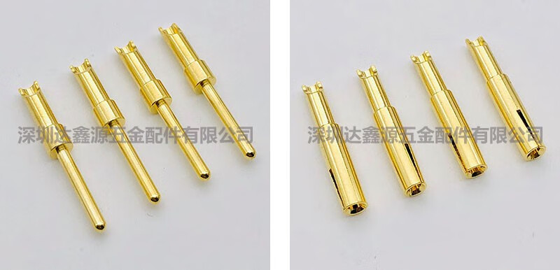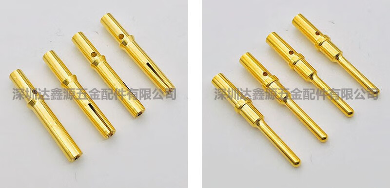 Customized processing of copper pin jacks, aviation connector plugs, male and female copper pins, water solid gold-plated ling, 0.6 slotted male and female pins, 10 in total