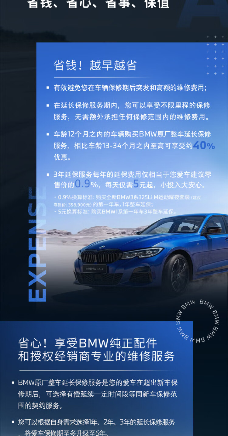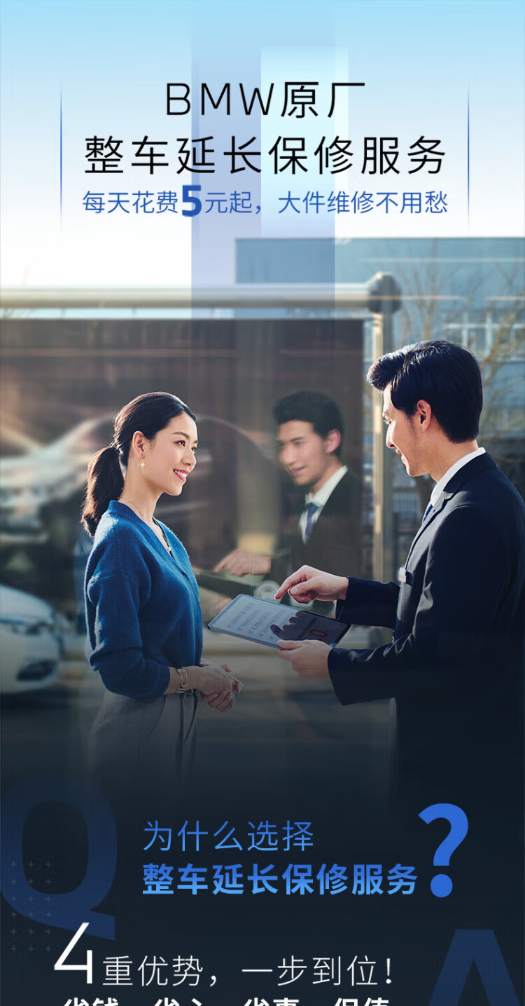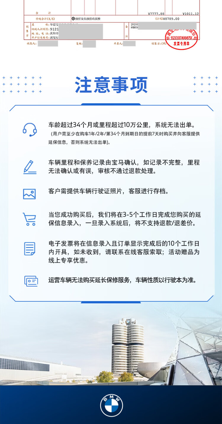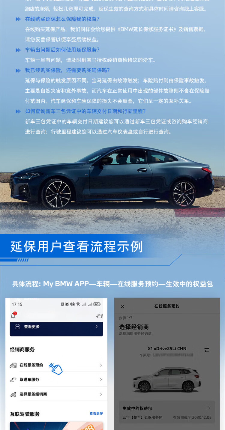 BMW extended vehicle warranty. The official original vehicle extended warranty service is applicable to 1 series, 2 series, 3 series, 5 series, X3X5 all series. One-year extended warranty service package for the first year car BMW X3