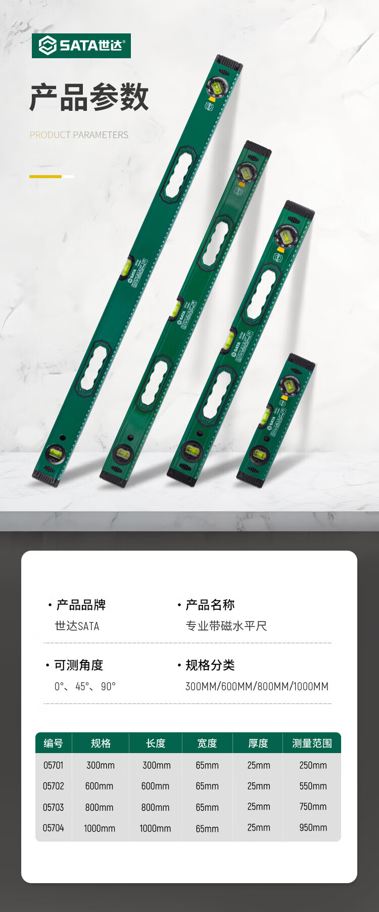 SATA industrial-grade level high-precision with strong magnetic professional-grade aluminum alloy level mini/small/heavy-duty optional 05701 Magnetic level 300MM