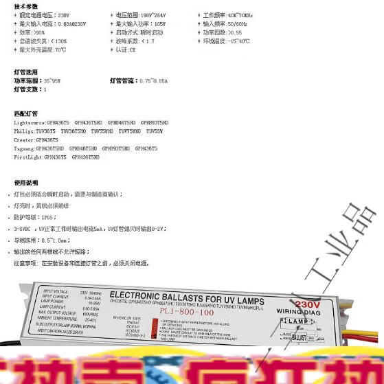 PL1-800-100 UV disinfection lamp ballast sl1-100 electronic rectifier 230V Ling PL11-425-40W