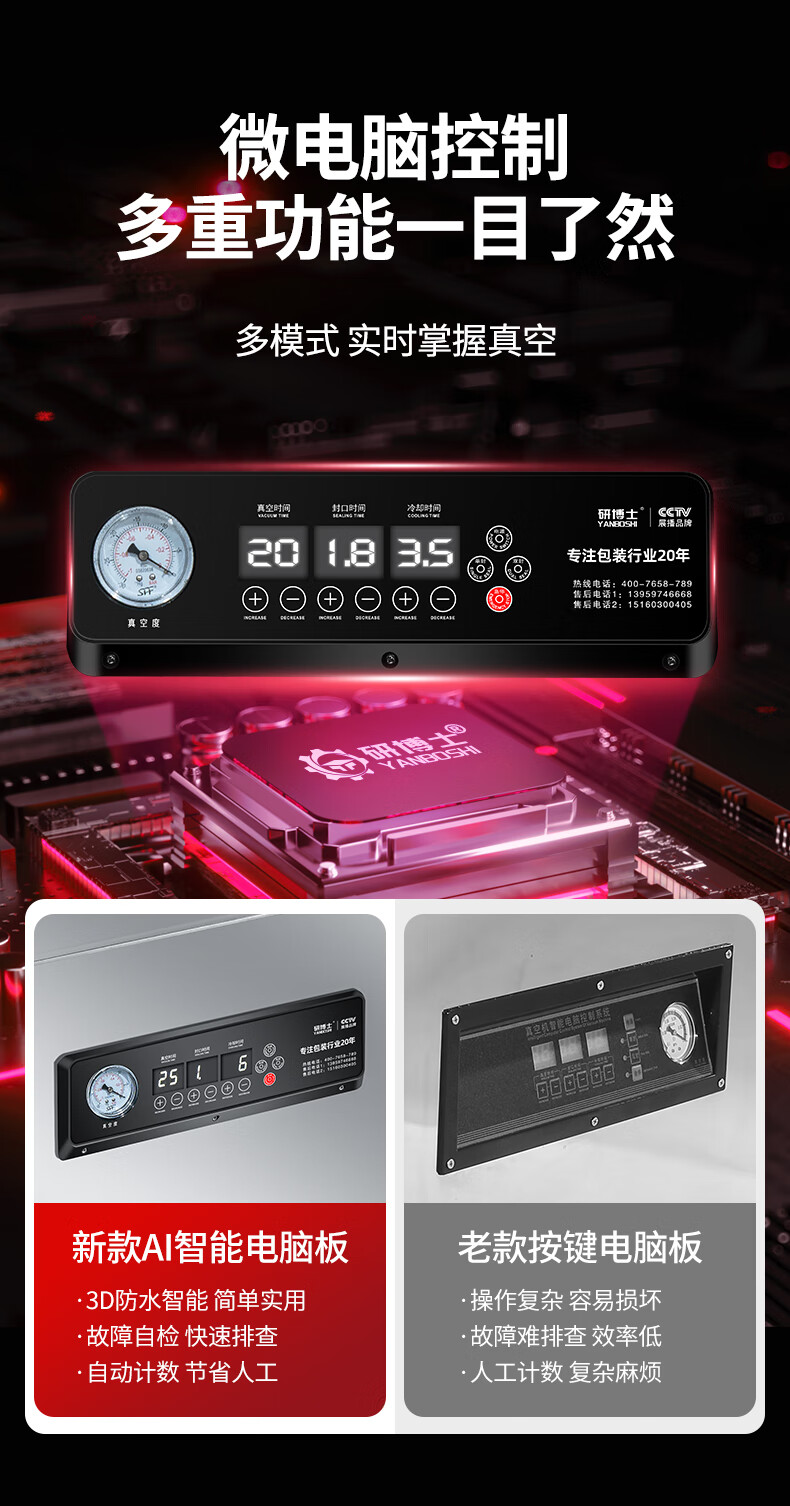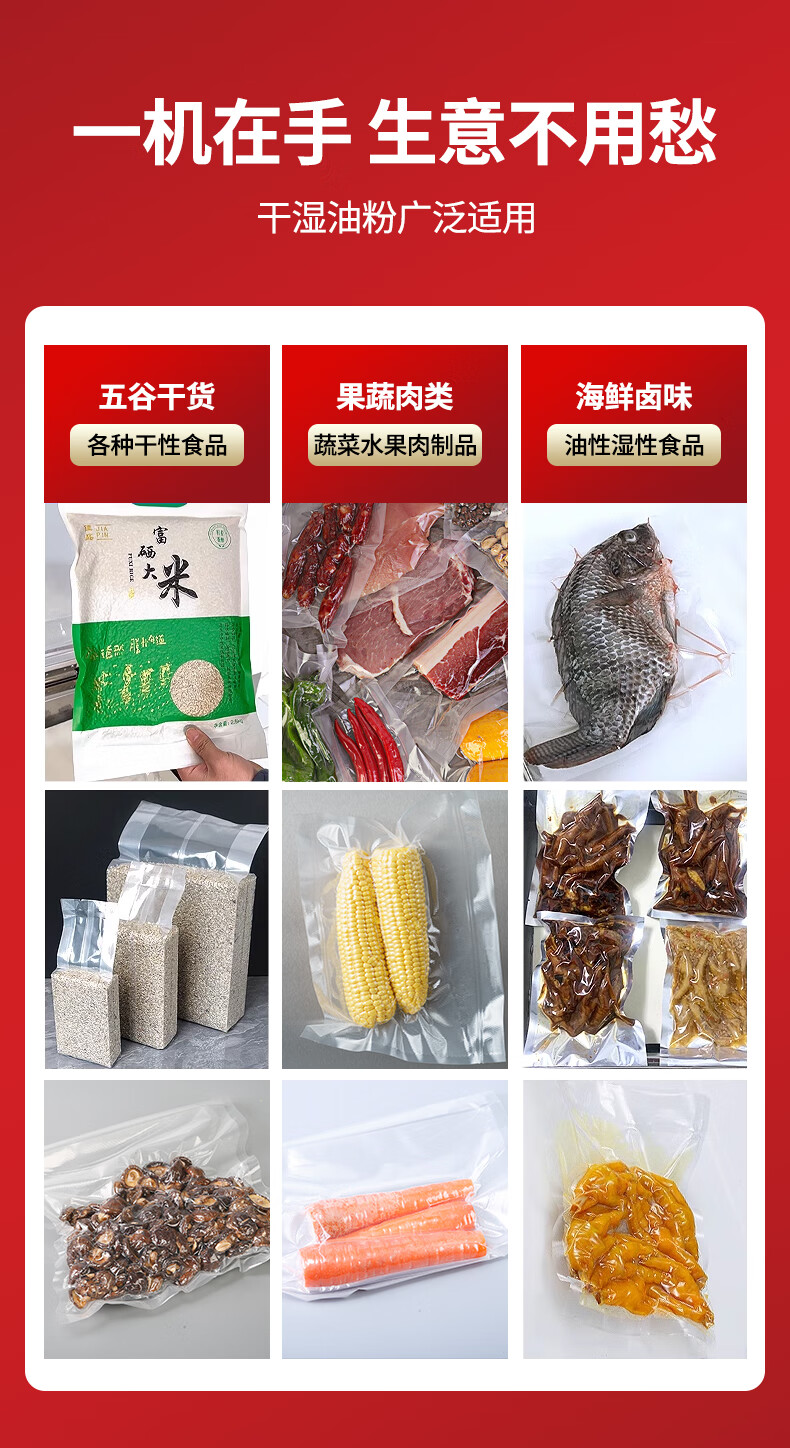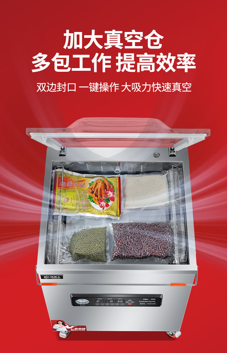 Yanbo Vacuum Machine Commercial Food Packaging Machine Fully Automatic Large Rice Mung Bean Delicatessen Zongzi Seafood Evacuator Packing Machine Compressor Wet and Dry Vacuum Sealing Machine YBS-420C Luxury Type Pure Copper Core Large Pump + Double Transformer