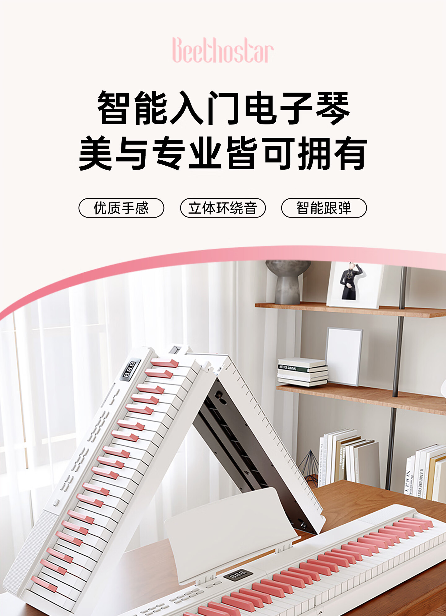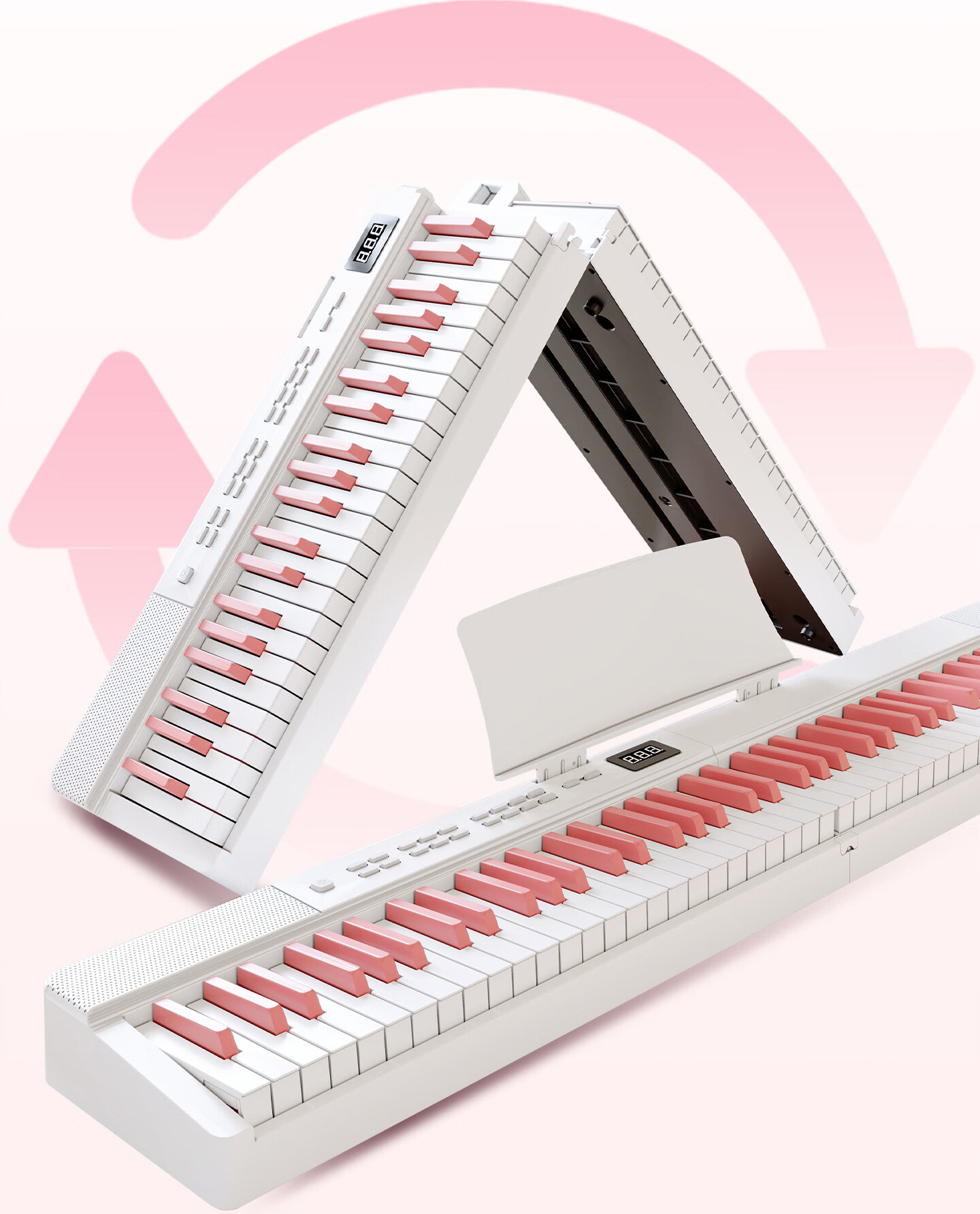 Beethostar Foldable Electric Piano 88-key Velocity Key Electronic Piano Portable Adult, Child, and Teacher Performance Professional Piano Cherry Blossom Pink 88-Key Folding Piano Velocity Bluetooth Illuminated Version + Gift Pack