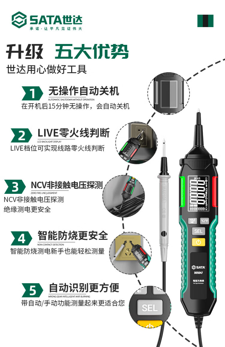 Shida Pen Multimeter High Precision Multi-Function Digital Display Intelligent Induction Test Pen Electrician Special Capacitance Meter Shida D05047 Pen Multimeter Standard