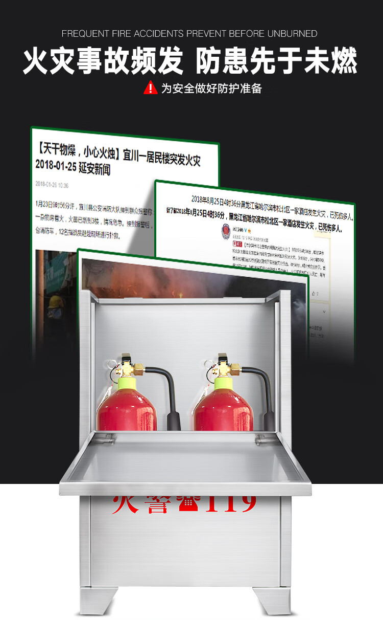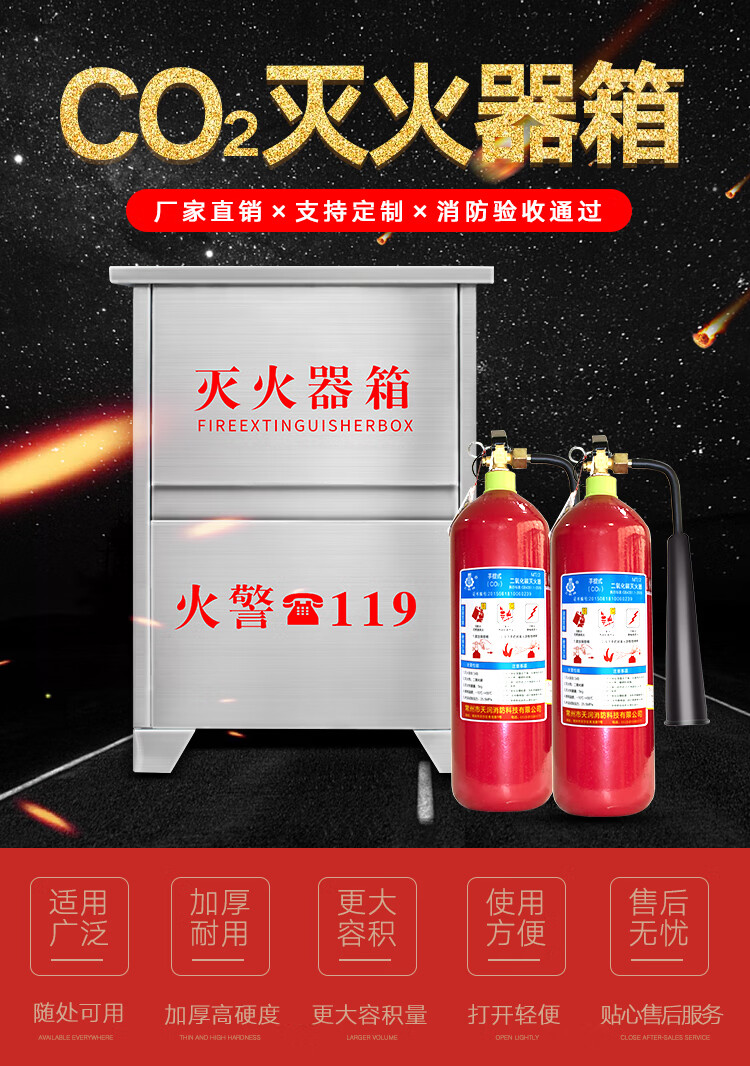 304 stainless steel fire extinguisher box carbon dioxide fire extinguishing box 3kg*2 two CO2 boxes 5kg7 Ling carbon dioxide 7kg*2 304-1.2 95*58*2
