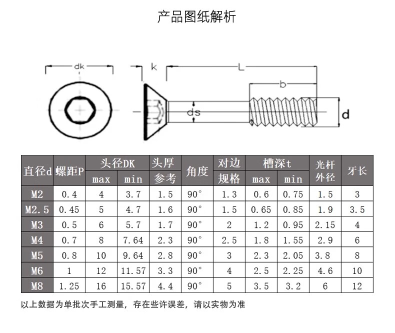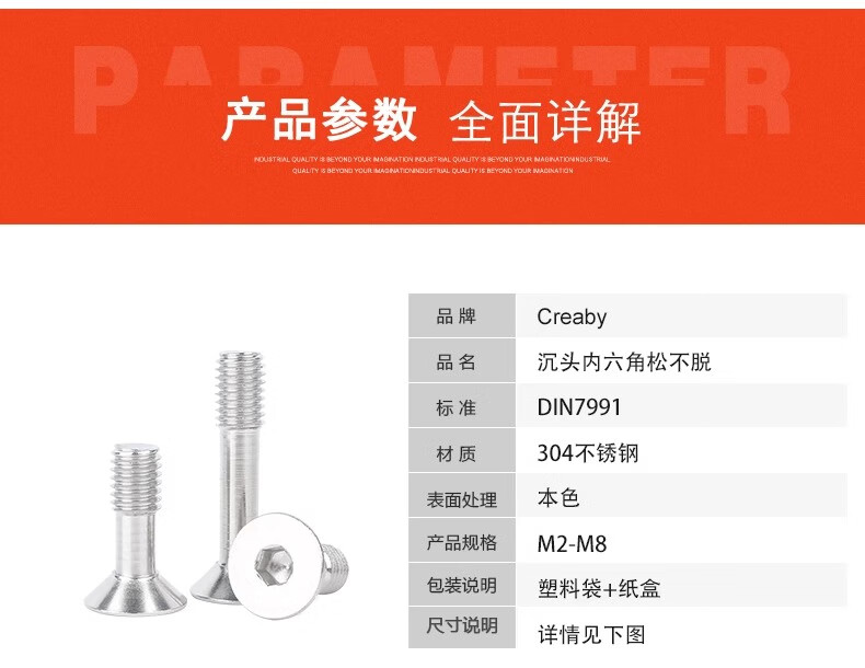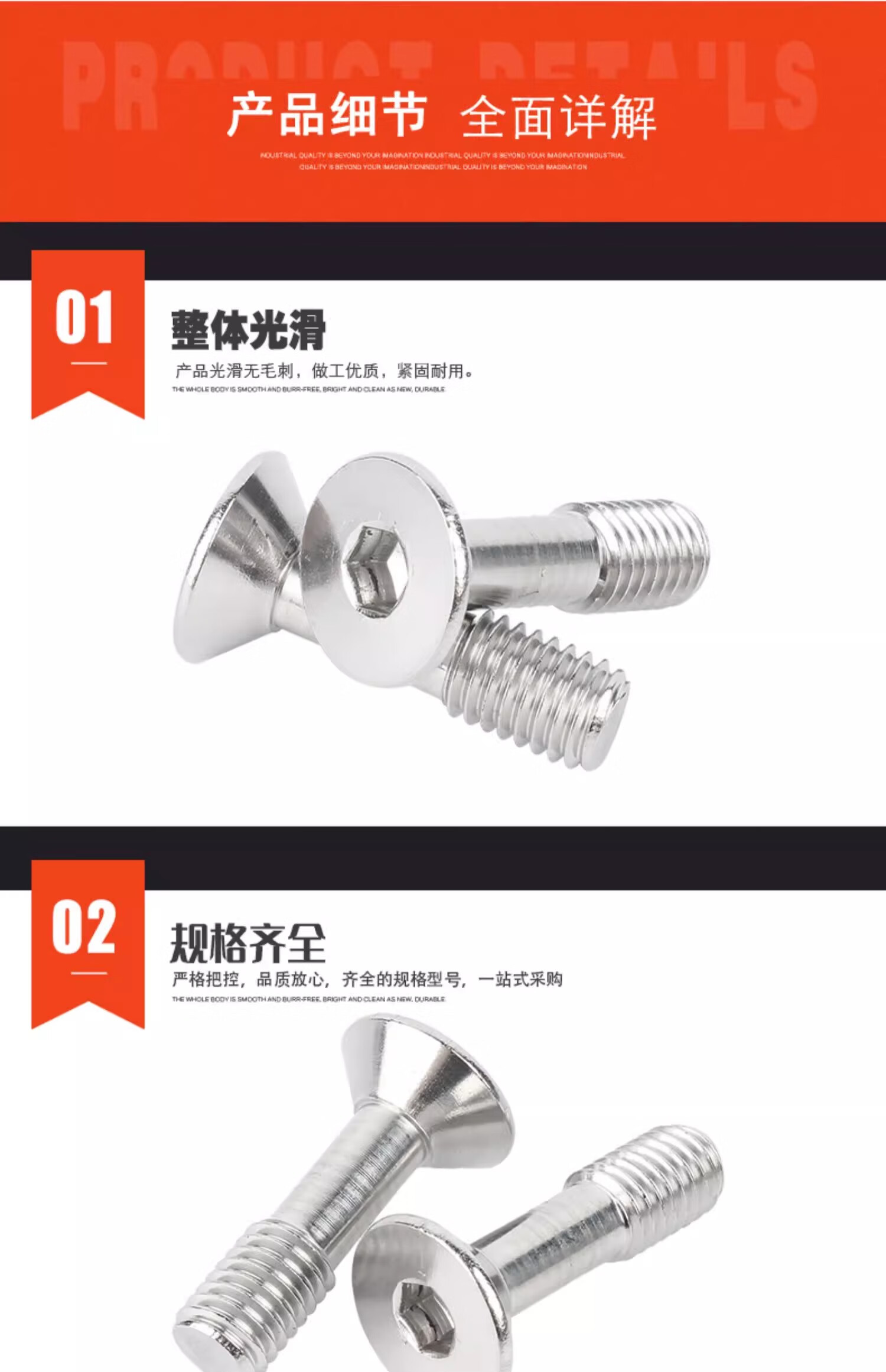 Creaby304 stainless steel countersunk head hexagonal loose screws flat head non-loosening half-thread screws M4*10 (10 pieces)