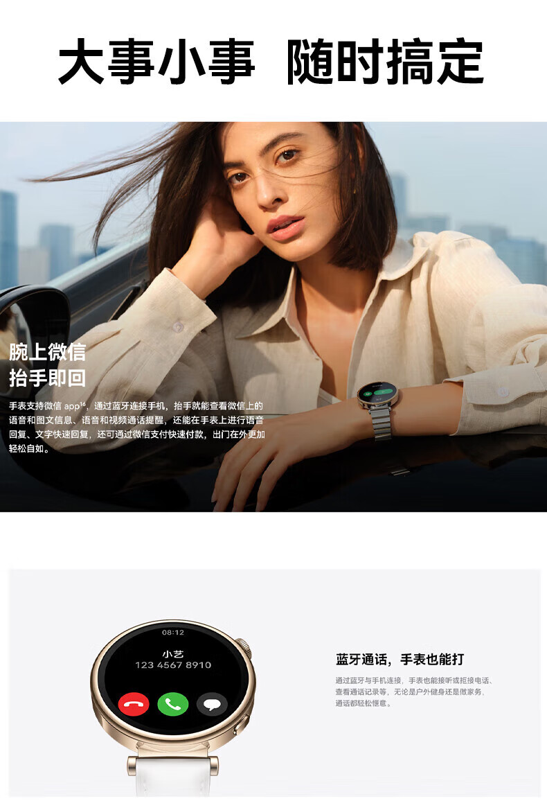 Huawei (HUAWEI) dynamic small gold dragon dial watch original women's smart sports phone business fashion ladies watch WeChat reply to the goddess Chinese Valentine's Day birthday Christmas 41mm frost white + silver titanium steel band