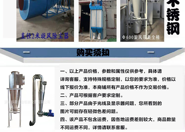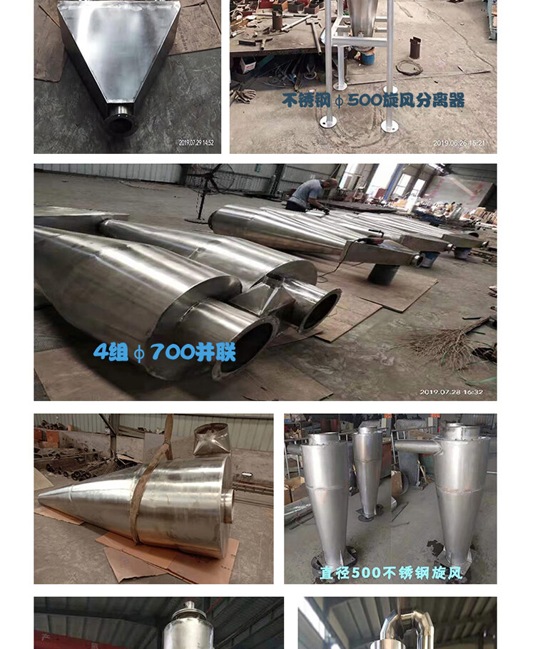 Direct selling cyclone dust collector stainless steel customized industrial dust collection material conveying sacron separator HCXF1500 cyclone does not include brackets