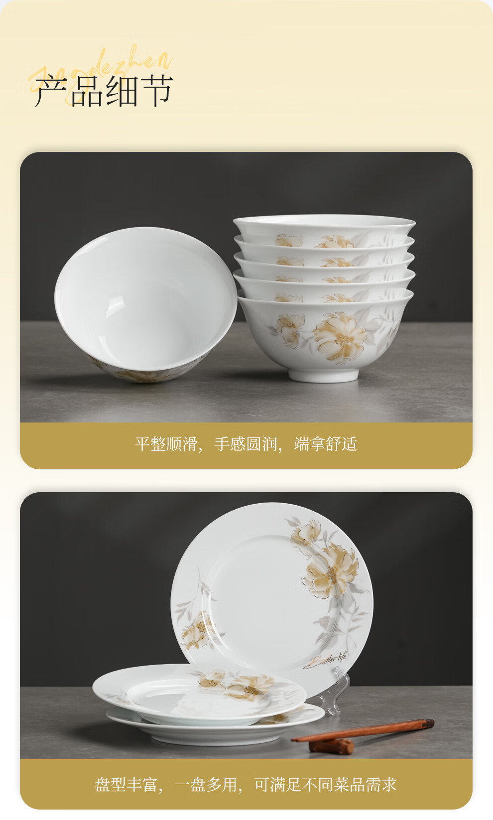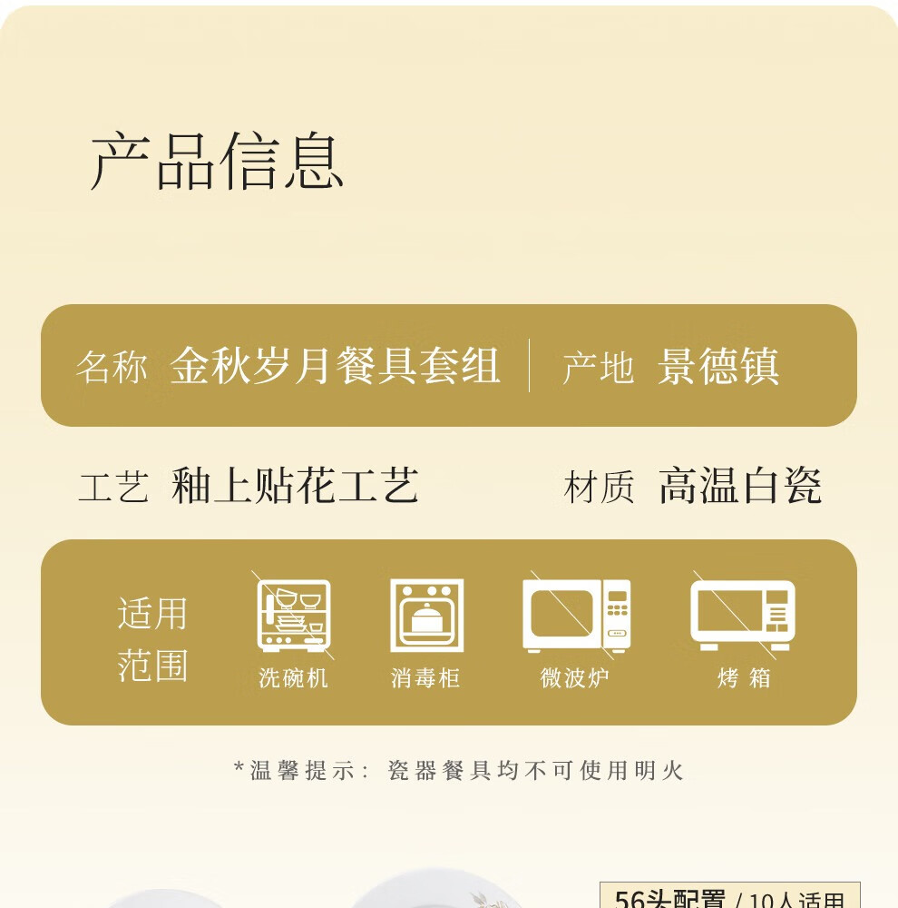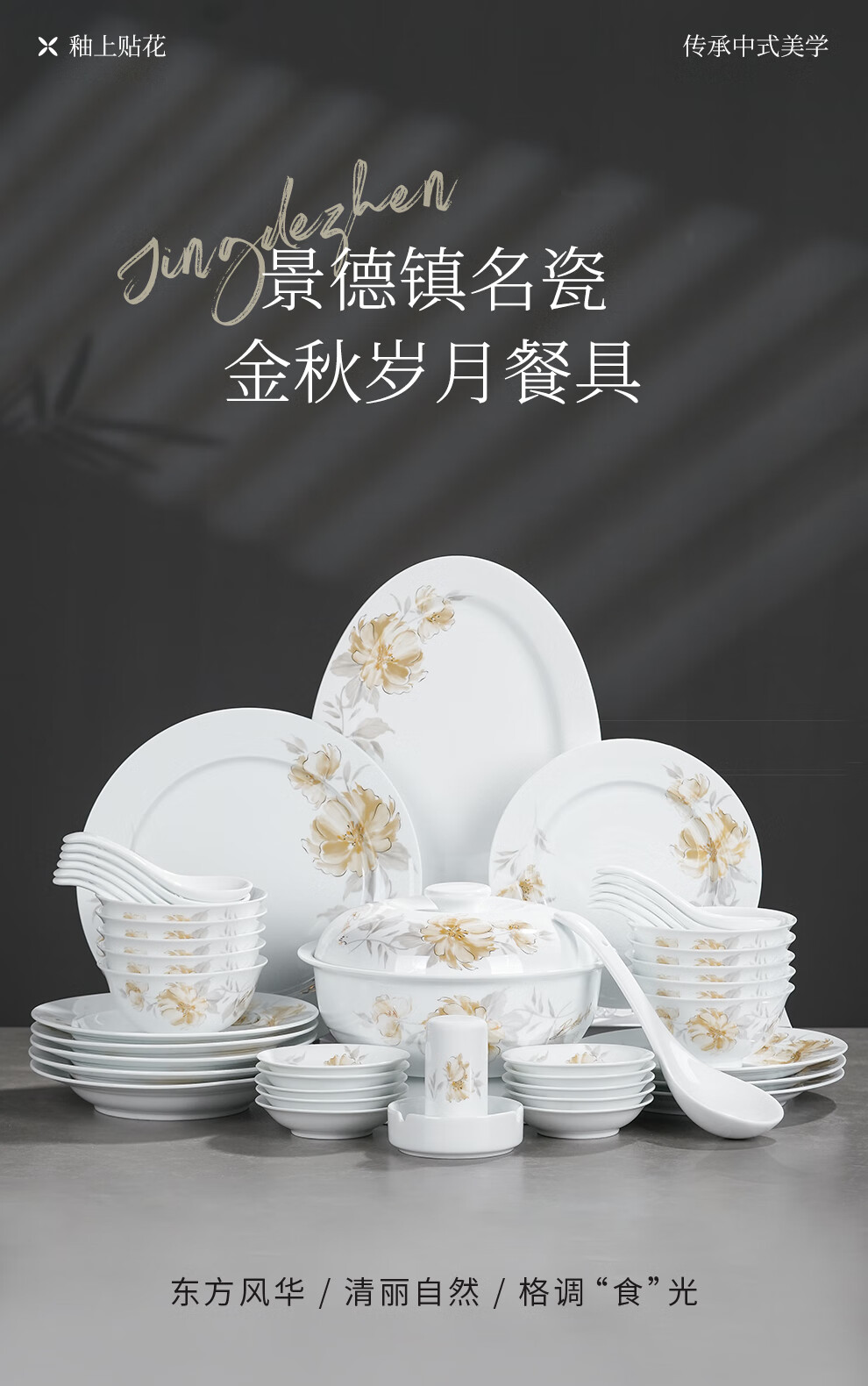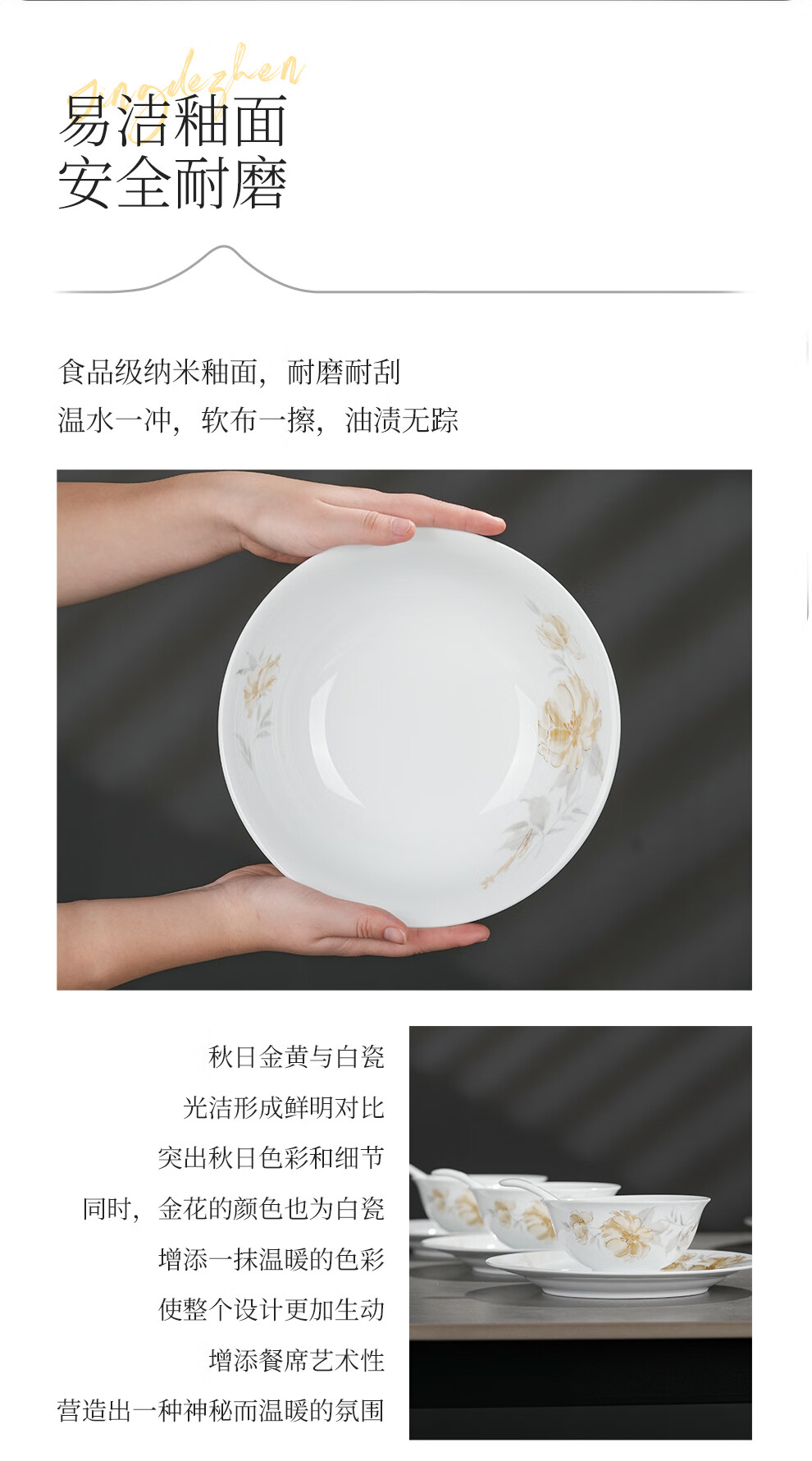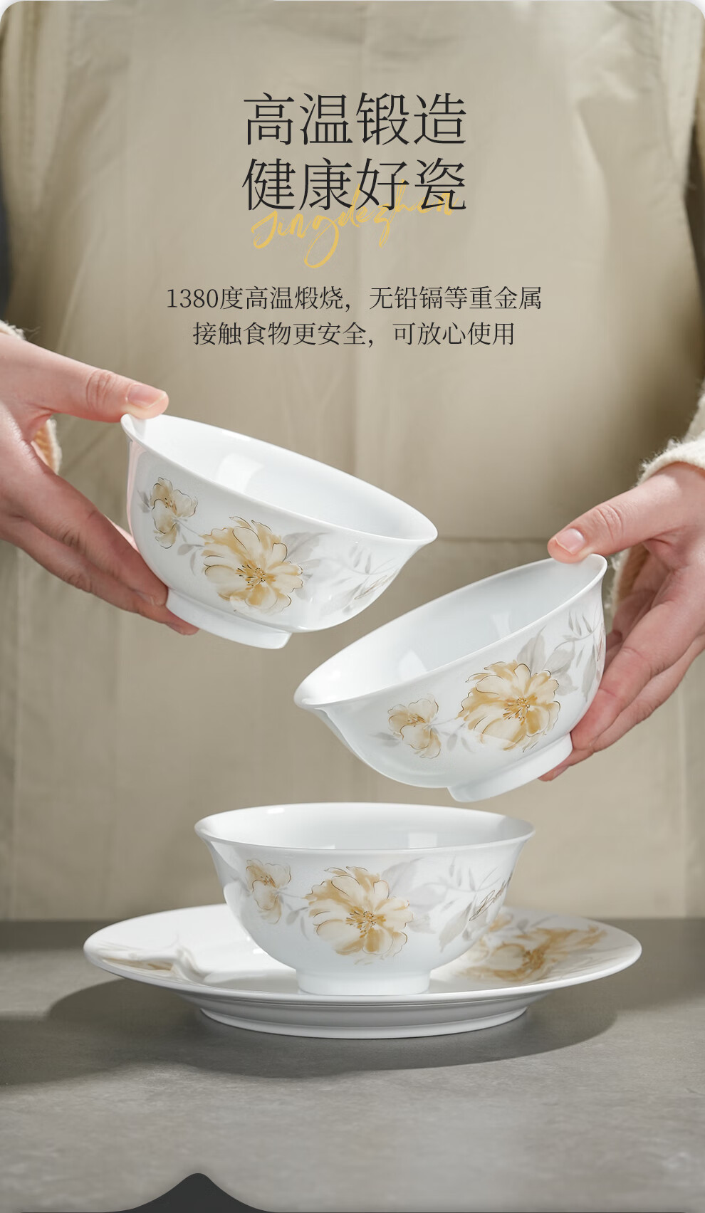Jingdezhen official ceramic glazed decals for eating rice bowls, dishes, plates, spoons, tableware sets, gift boxes for housewarming, golden autumn years, 5-inch rice bowls, 2 pieces