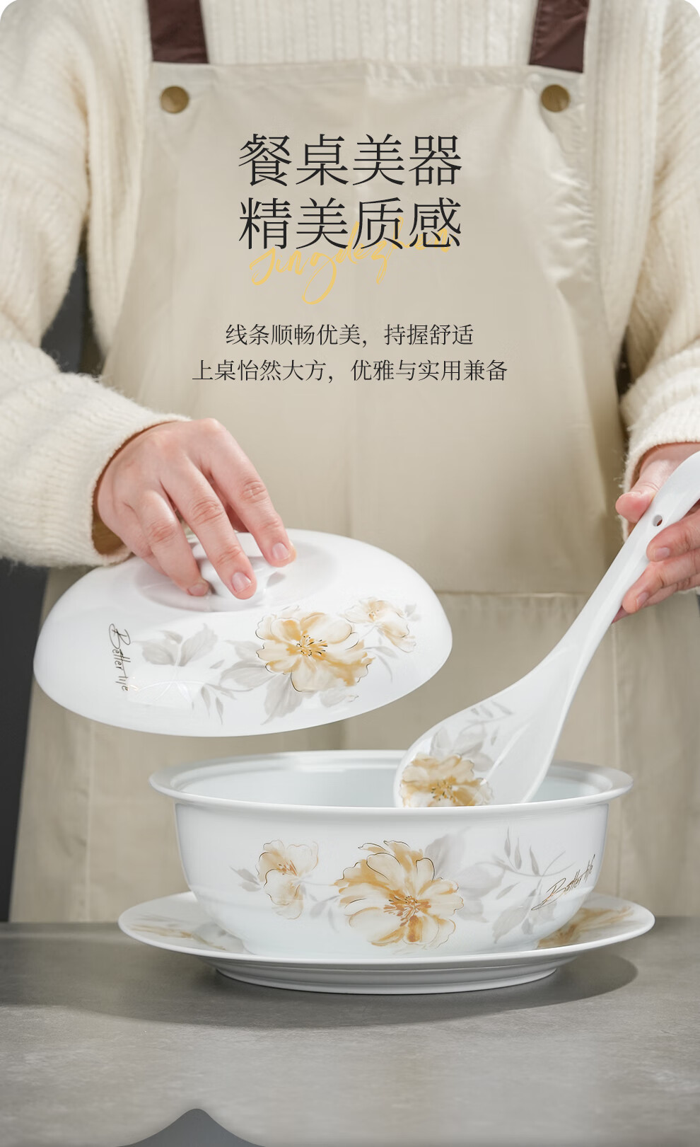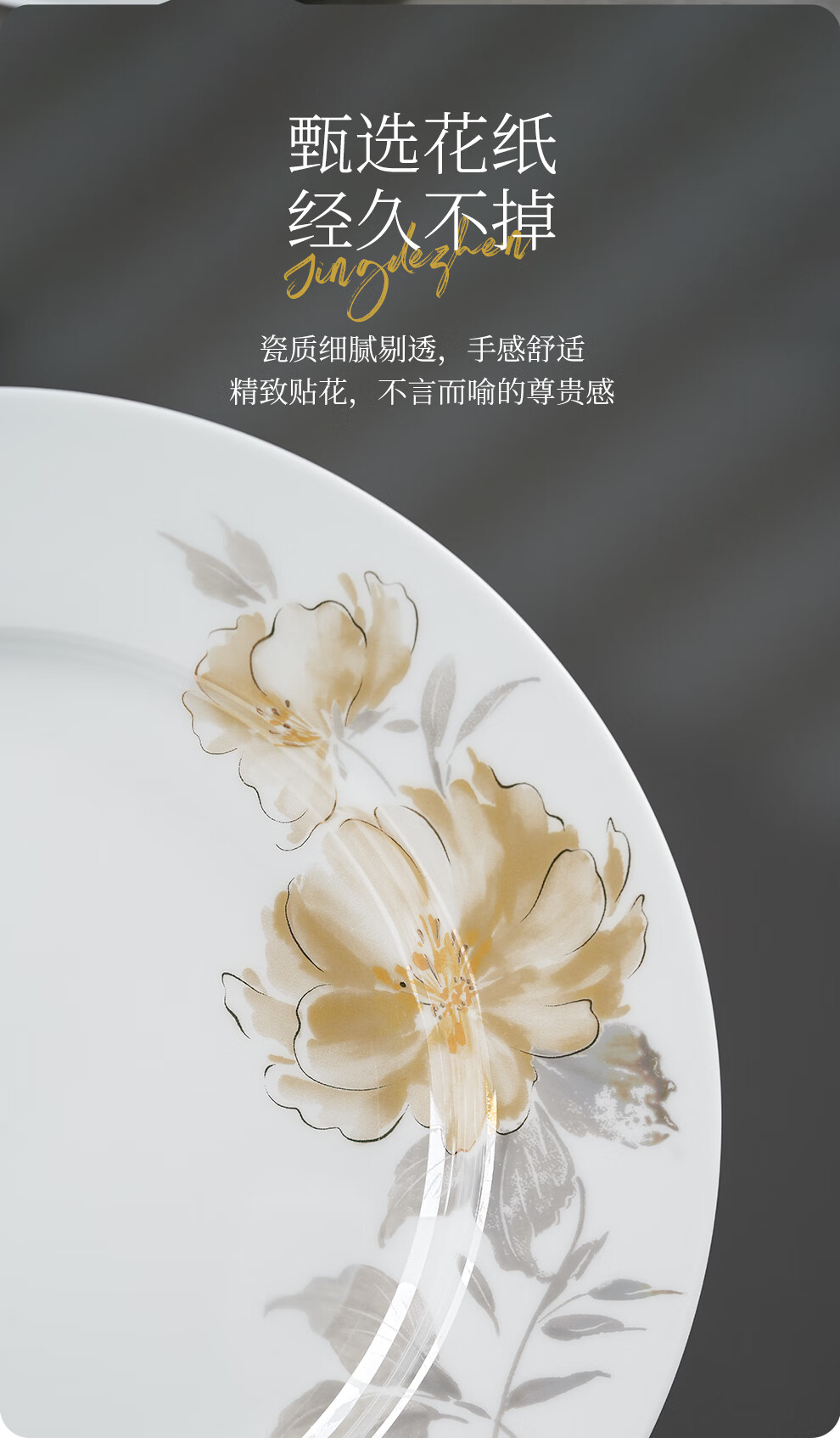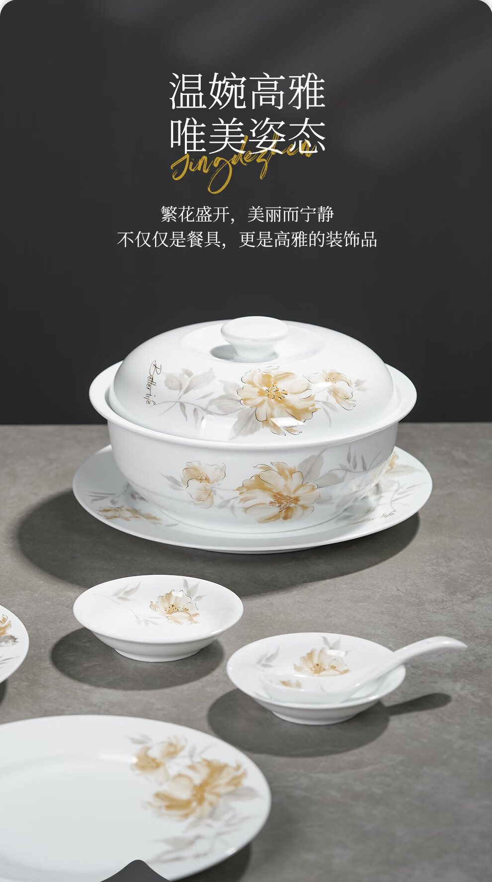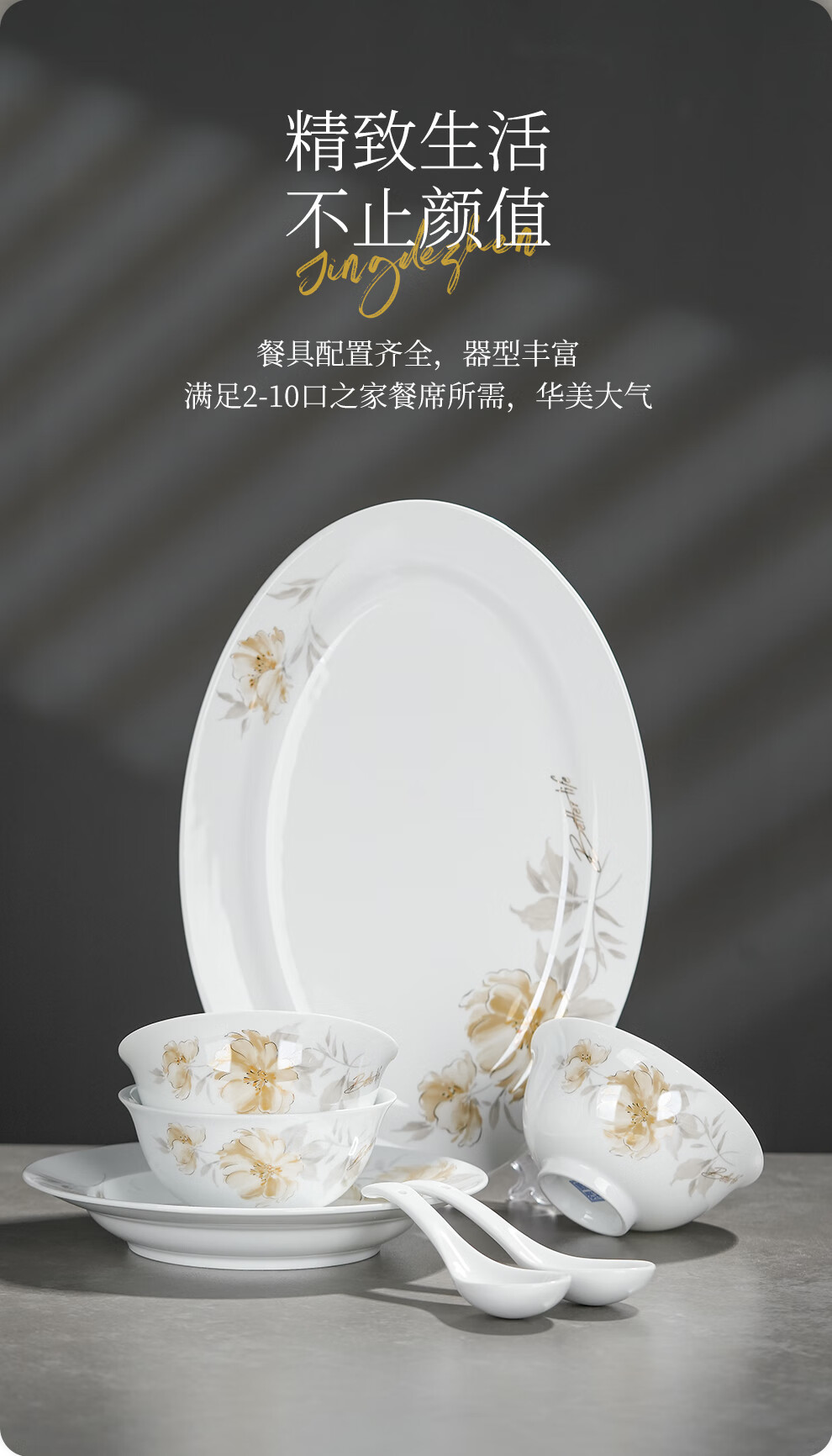 Jingdezhen official ceramic glazed decals for eating rice bowls, dishes, plates, spoons, tableware sets, gift boxes for housewarming, golden autumn years, 5-inch rice bowls, 2 pieces