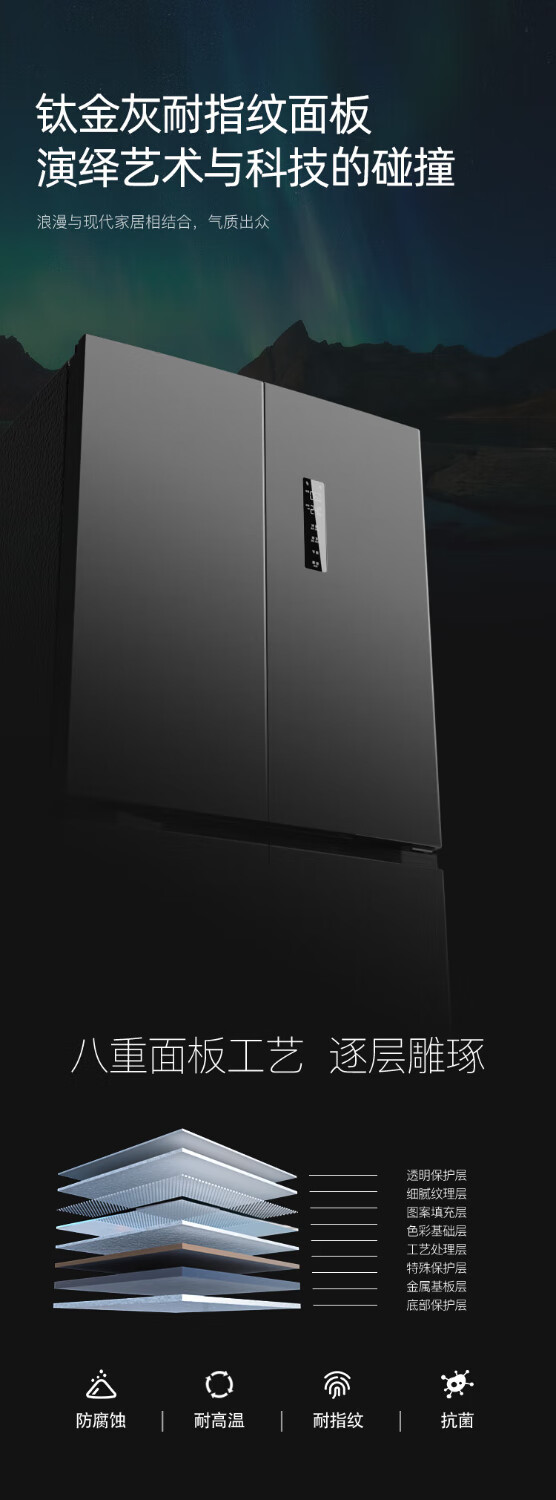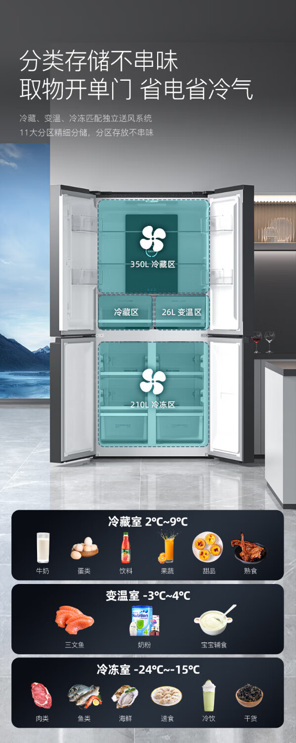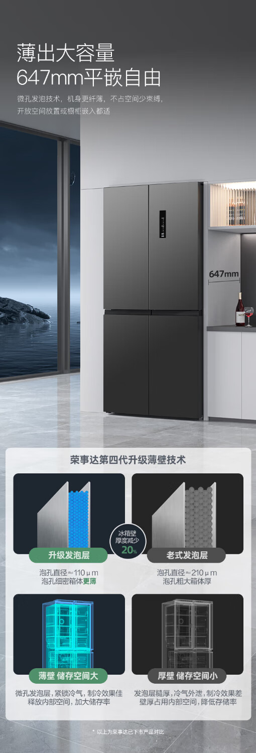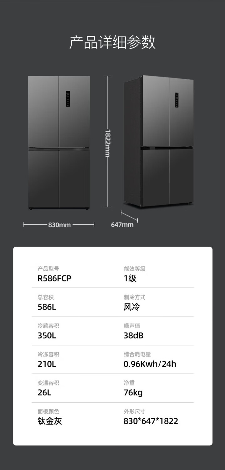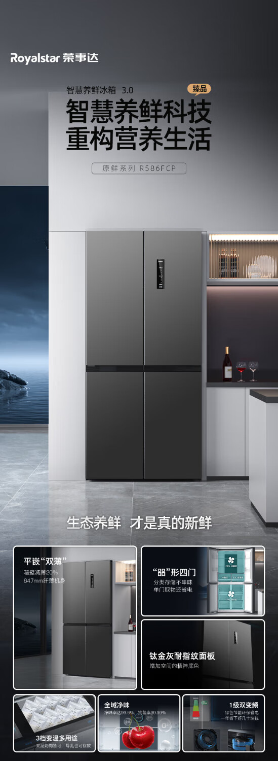 Royalstar cross four-door refrigerator air-cooled, frost-free, first-class energy efficiency household large-capacity multi-door refrigerator side-by-side trade-in subsidy 586L dual frequency conversion dual cycle + three-speed maternal and child temperature-changing drawer