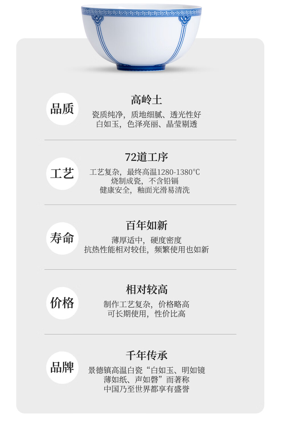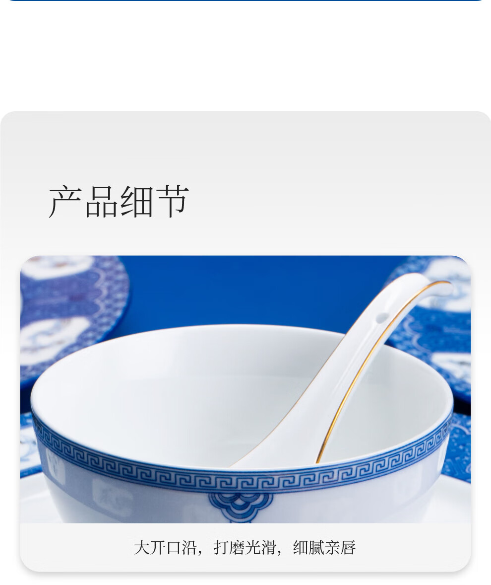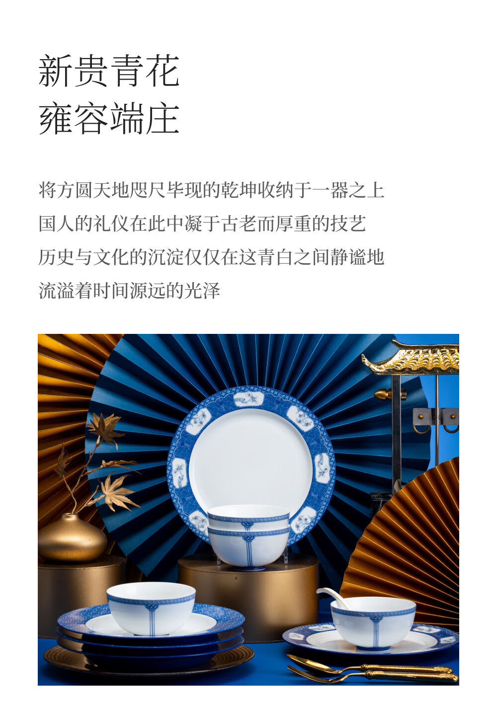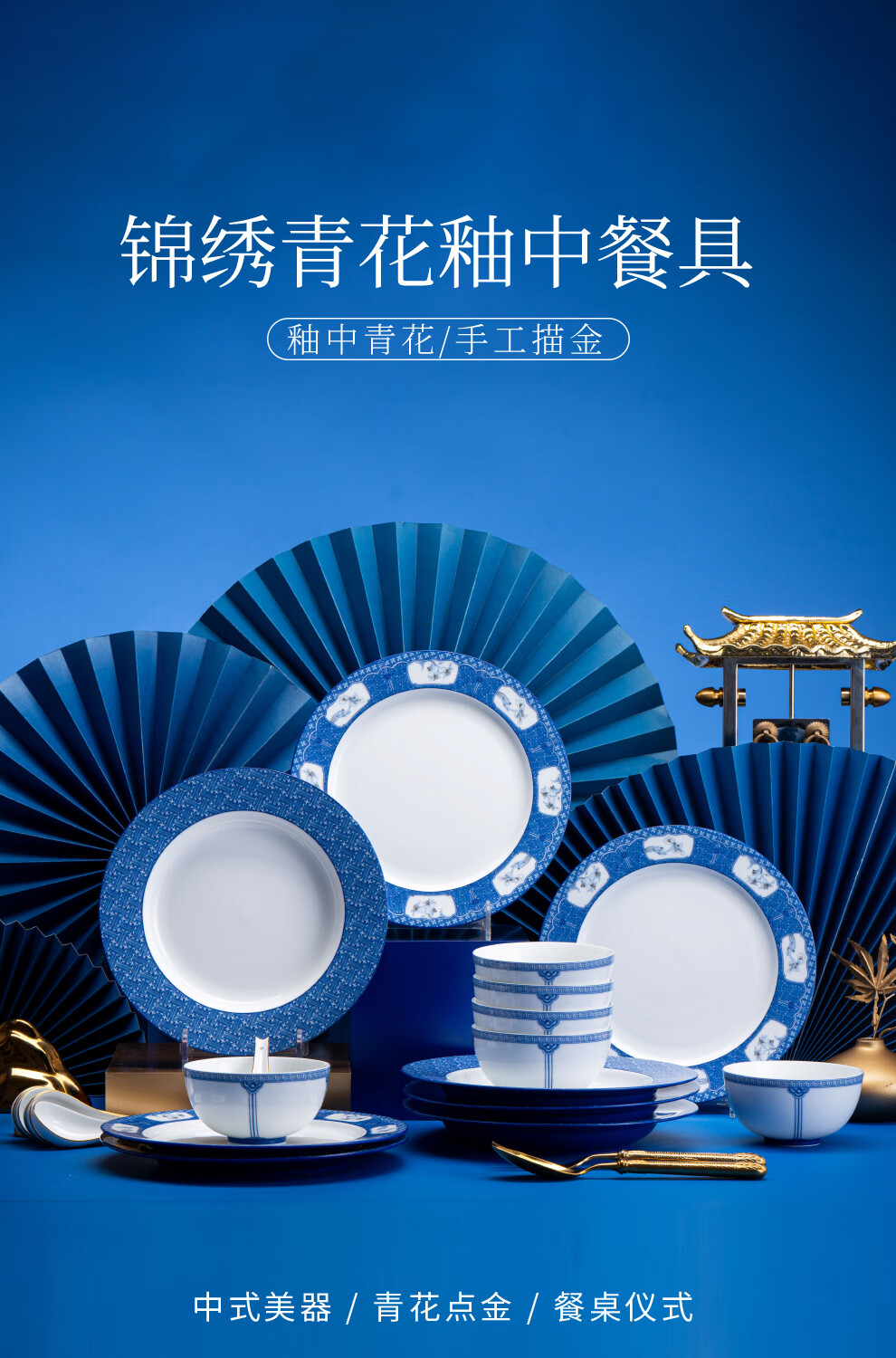 Jingdezhen ceramic glaze medium color blue and white Longzhu Pavilion household Chinese rice bowls and dishes high-end tableware set holiday gift box gift box Splendid blue and white medium tableware 25 pieces