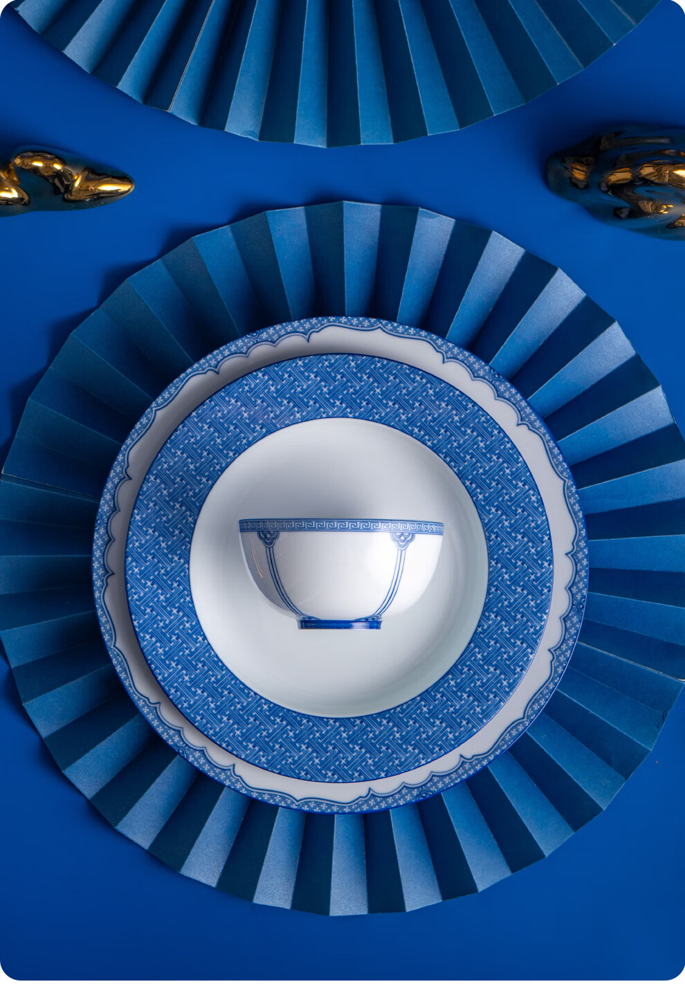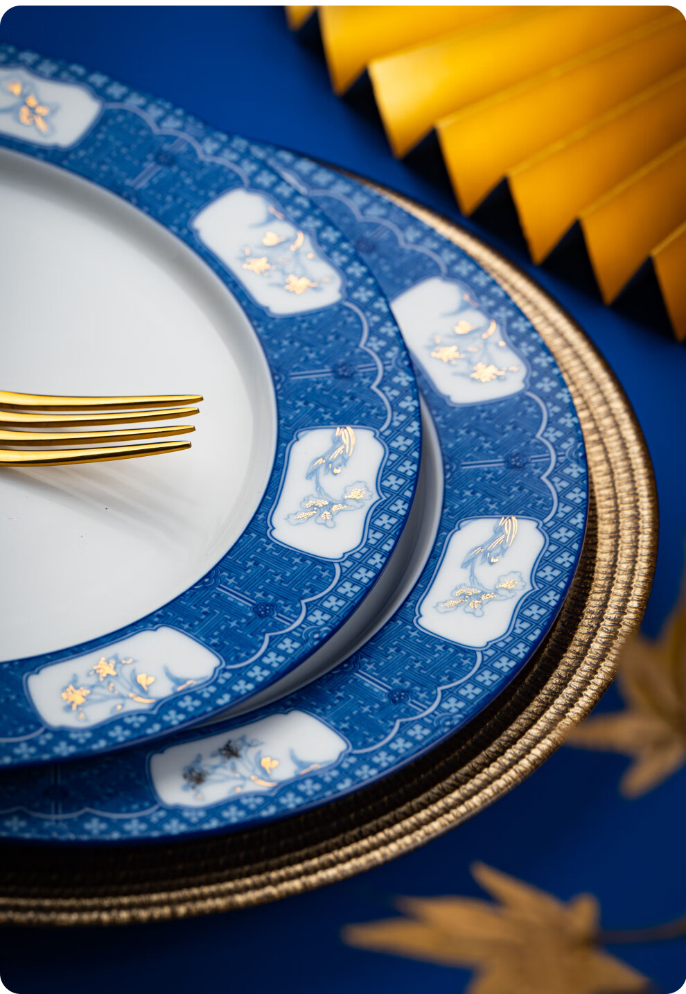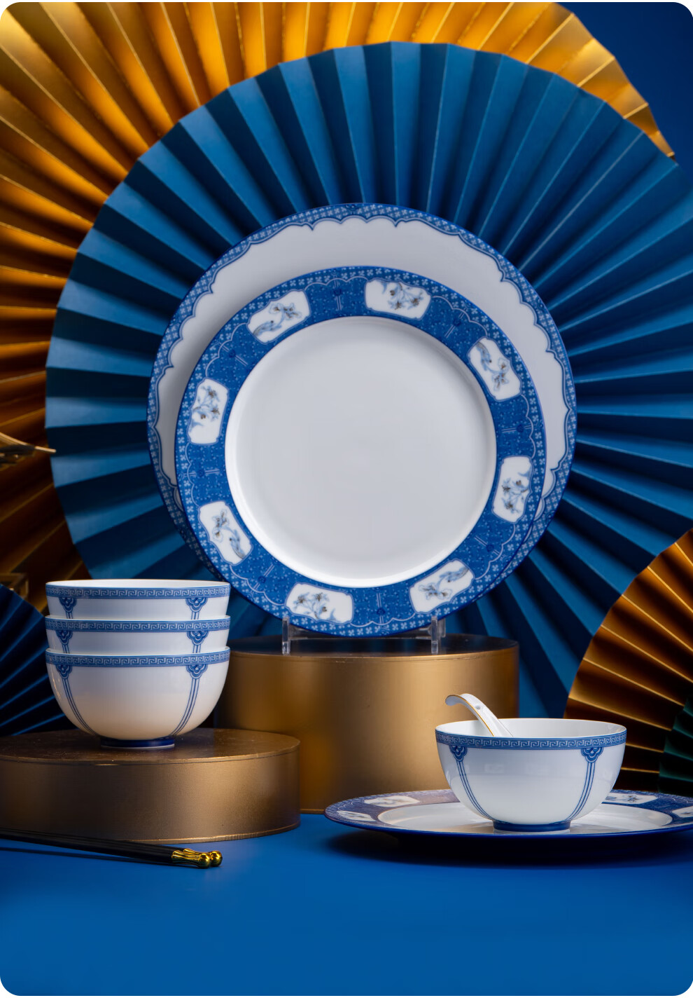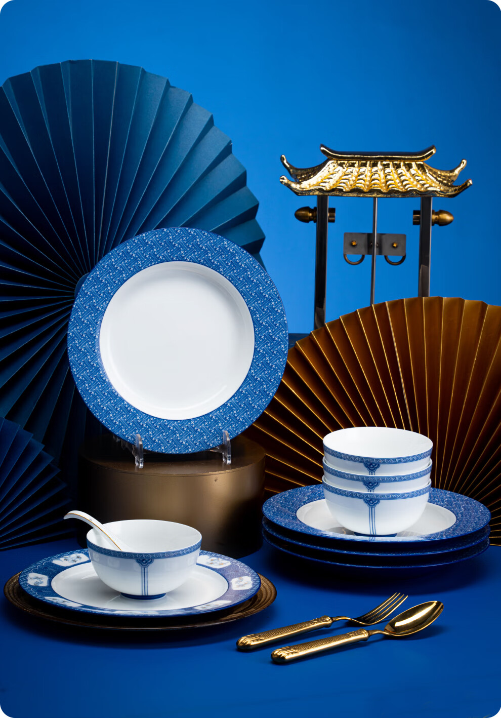 Jingdezhen ceramic glaze medium color blue and white Longzhu Pavilion household Chinese rice bowls and dishes high-end tableware set holiday gift box gift box Splendid blue and white medium tableware 25 pieces