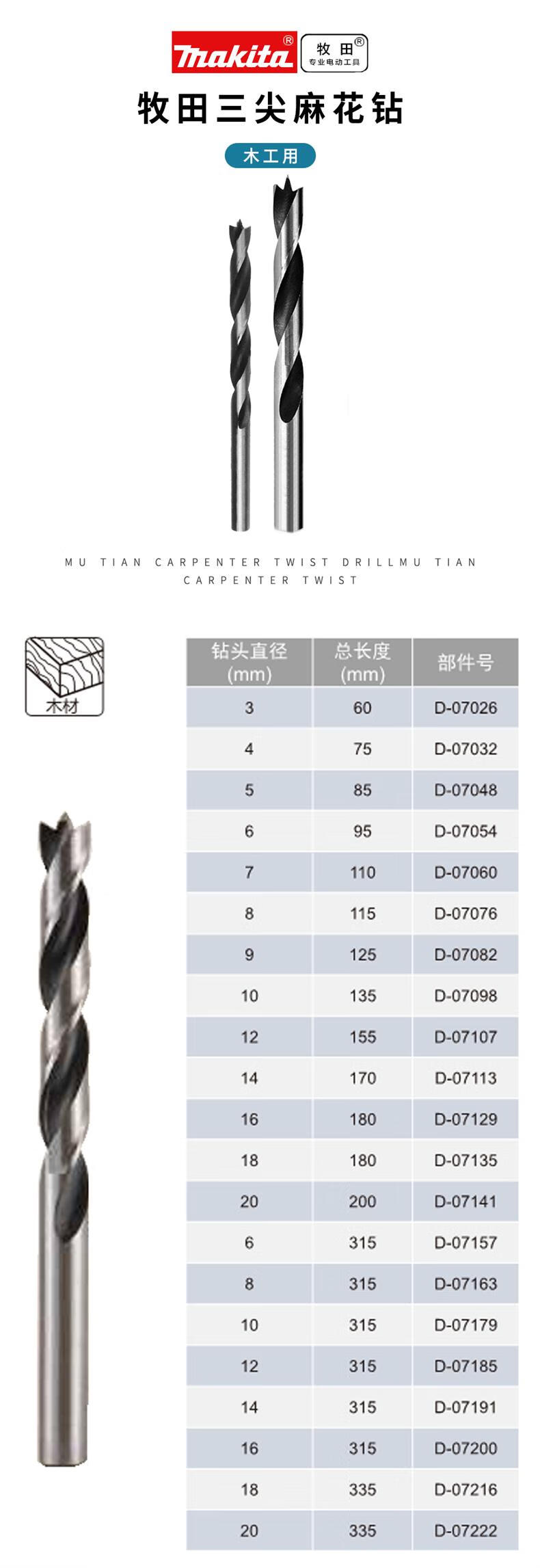 MAKITA straight shank woodworking drill bit D-77257 straight shank woodworking drill bit set 8 pieces