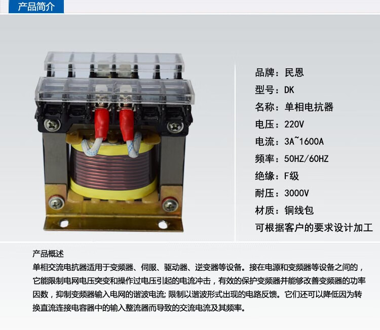 Single-phase AC reactor 220V 3A5A8A10A15A20A25A30A40A50A60A80A100 copper core DK-3A