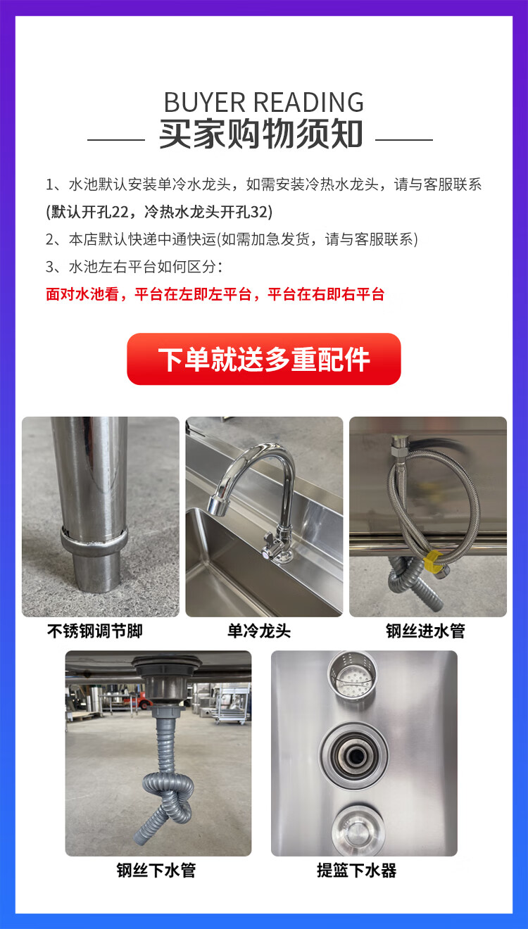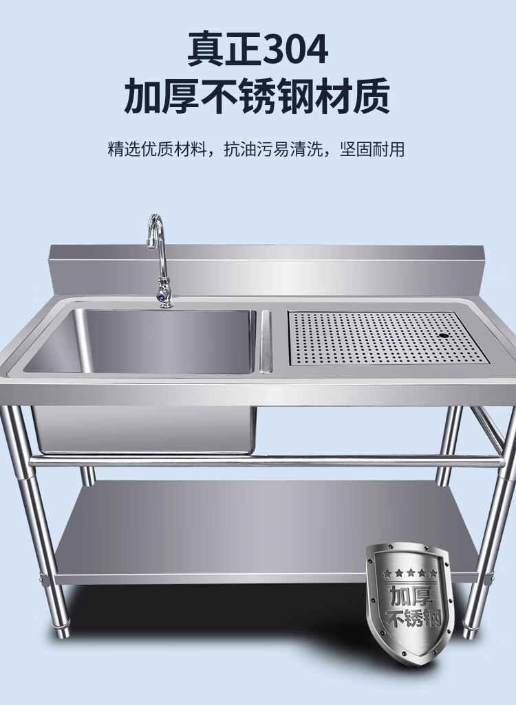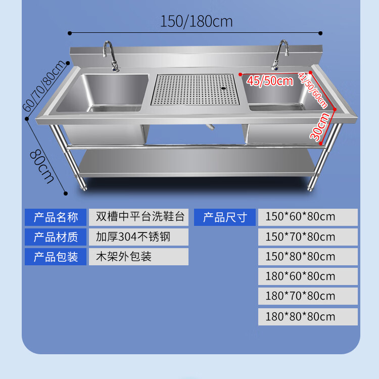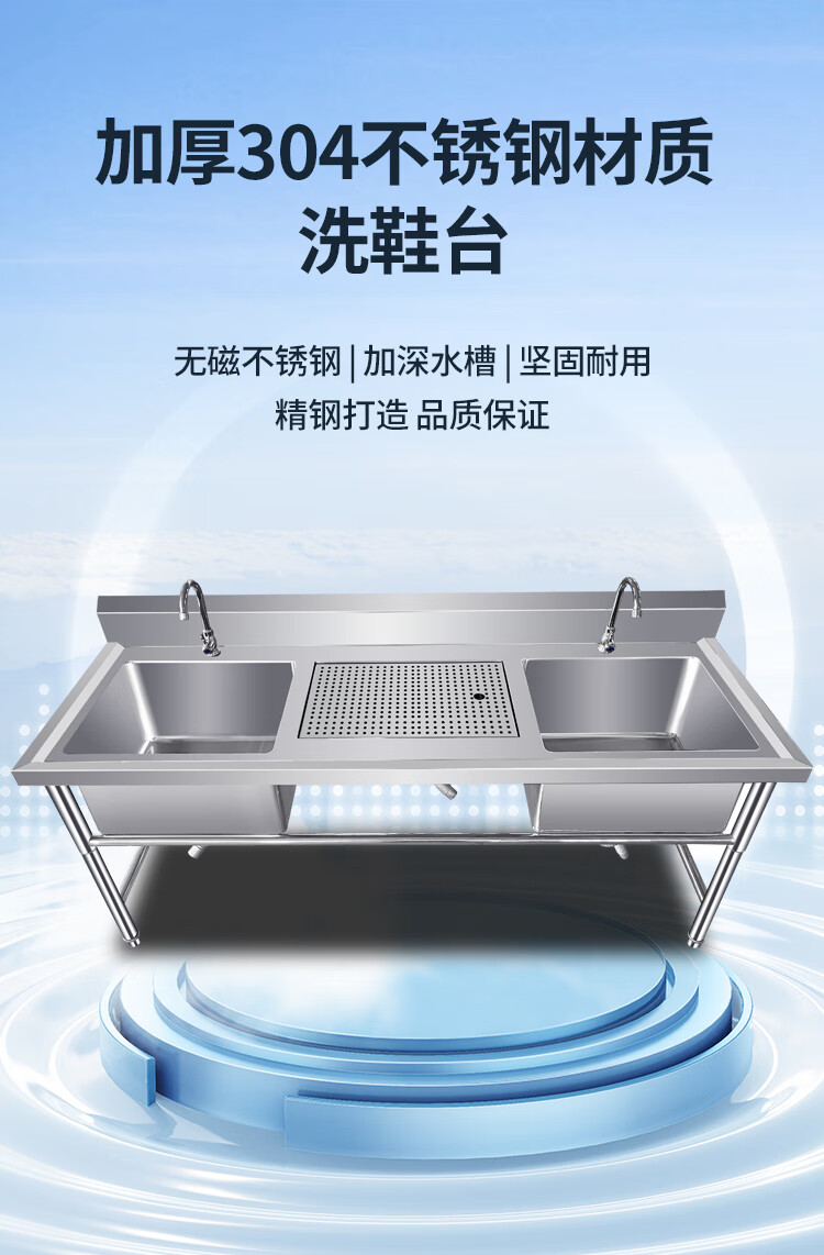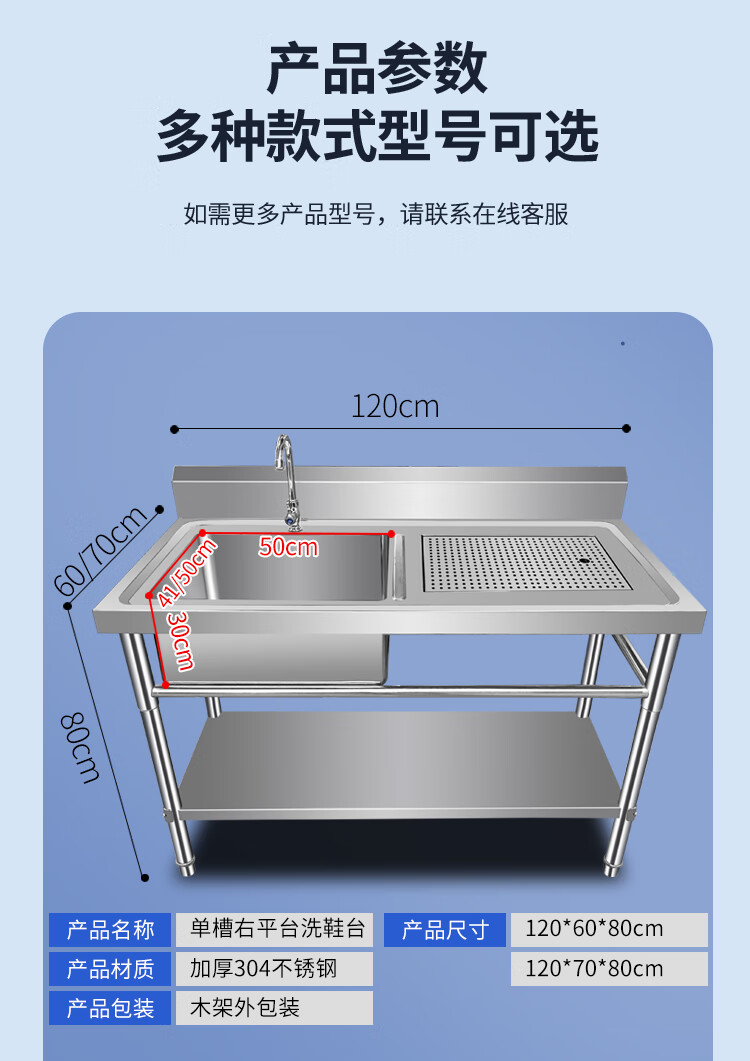 Extra thick 304 stainless steel sink shoe washing table pool shoe washing shop shoe brushing table draining shoe washing pool laundry table custom-made national standard 304--120*60*80--right platform + bottom