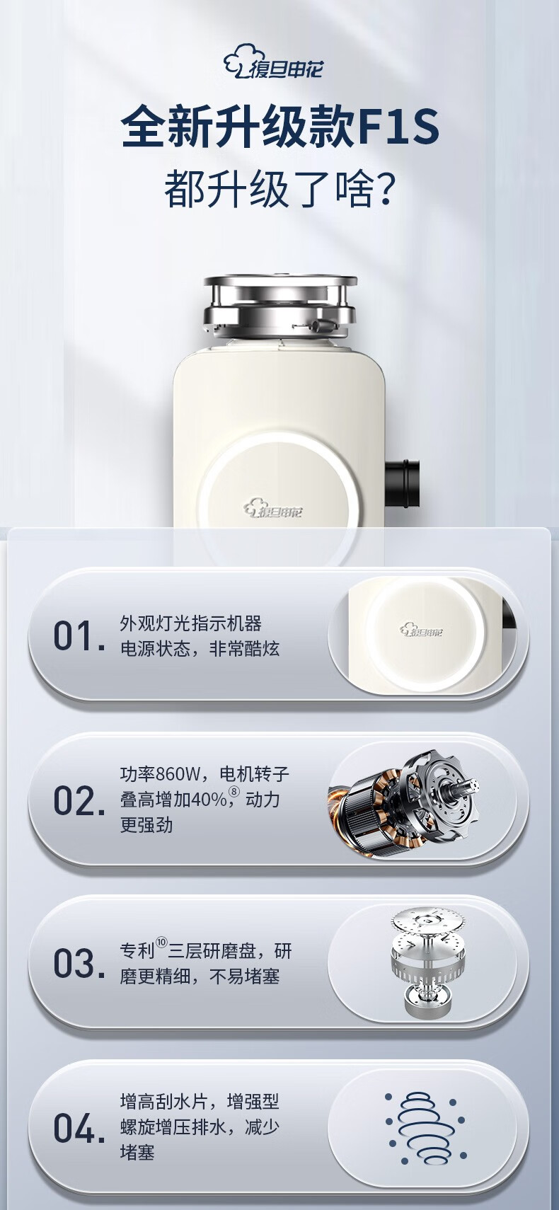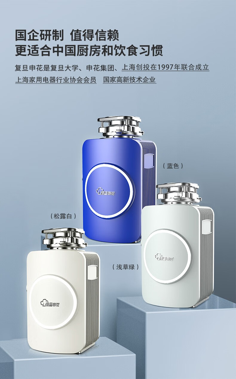 Fudan Shenhua garbage disposer automatic water inlet food waste crusher household kitchen food waste treatment F1S Klein Blue