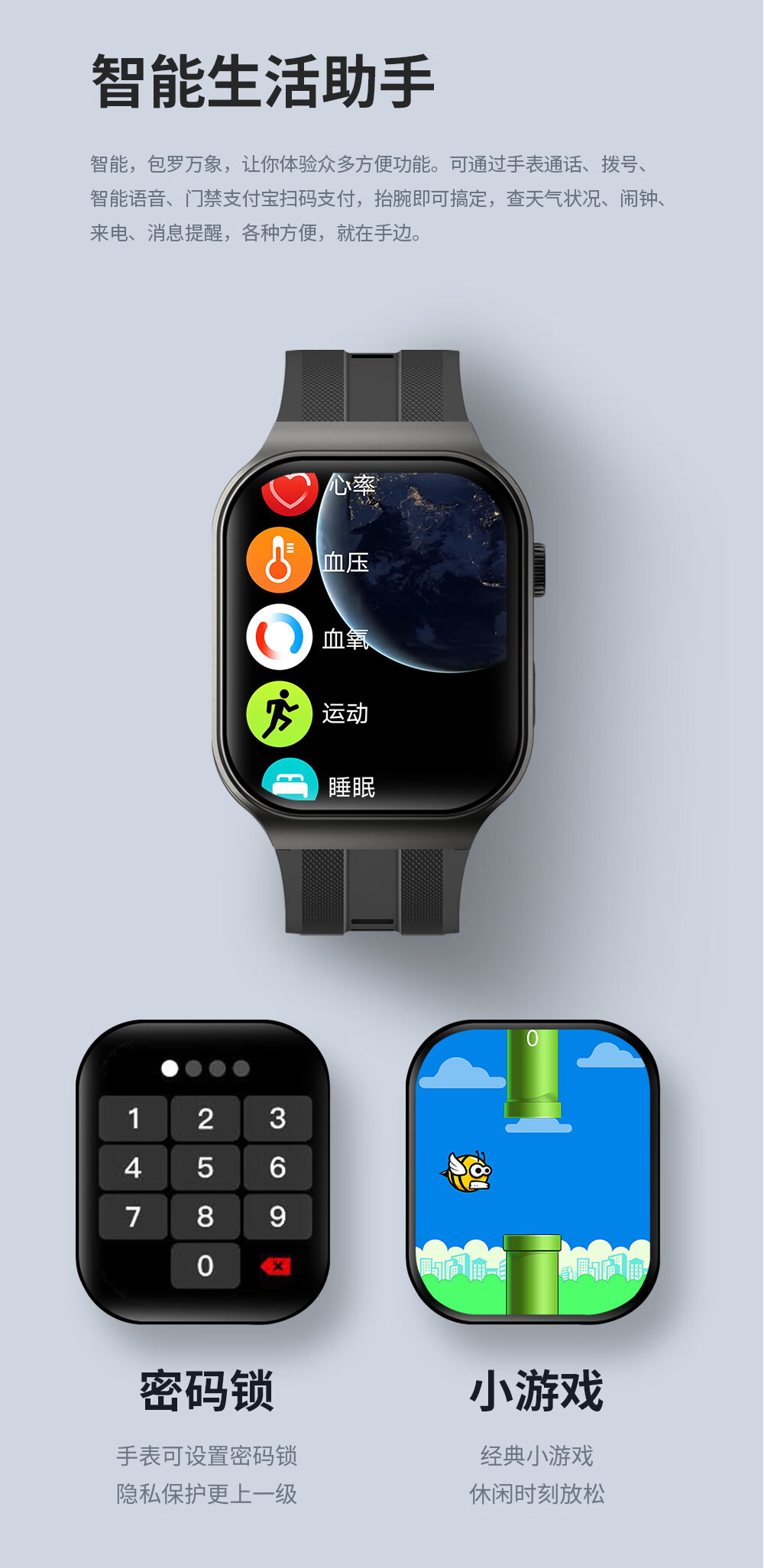 Patriot S2 Smart Watch Huaqiangbei Watch S10 Men's Sports Health Measurement Heart Rate Blood Pressure Call Bluetooth NFC Waterproof Adult Outdoor Sports Father's Day Gift for Dad Moonlight Silver