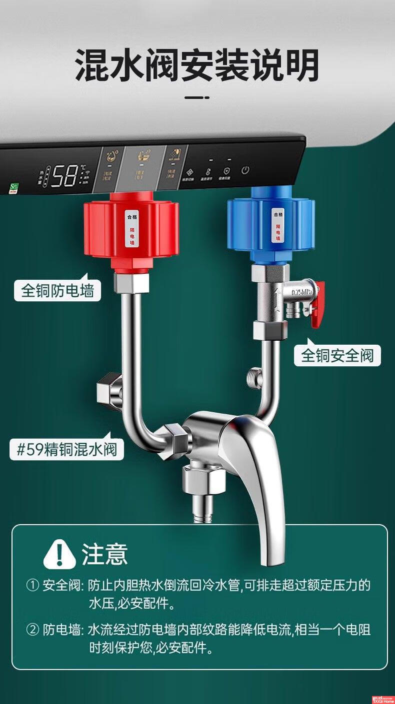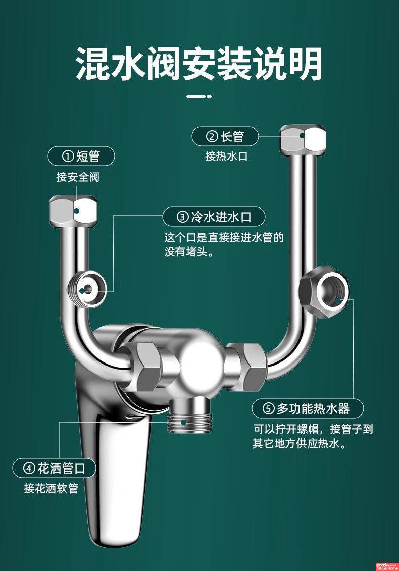 Xiqi XIQI copper electric water heater mixing valve hot and cold faucet accessories universal shower mixing switch type valve bright silver fine copper three-way valve 25-body high temperature resistance | anti-freeze cracking