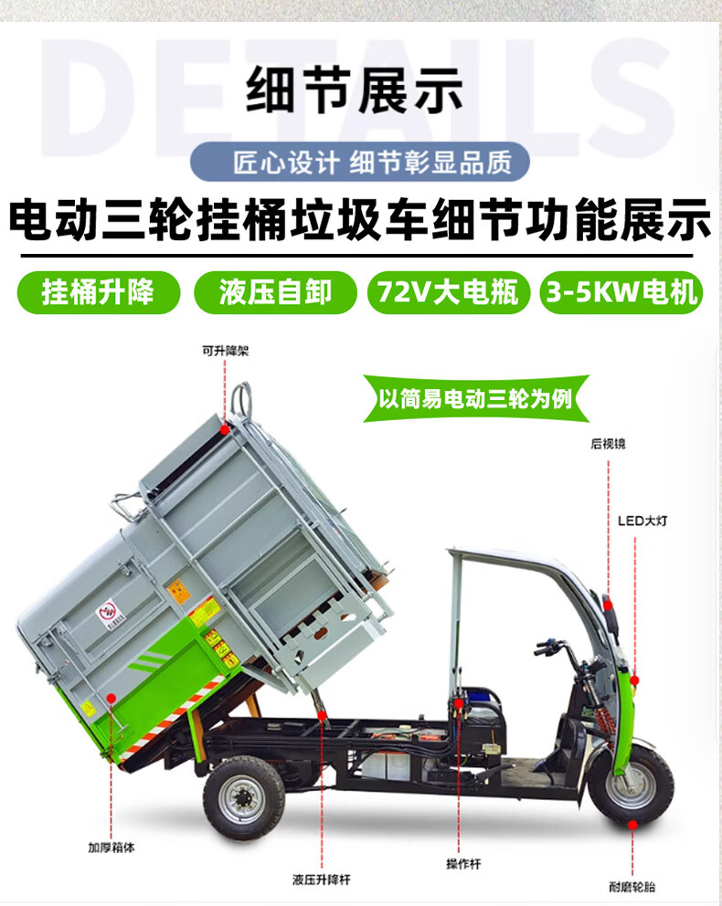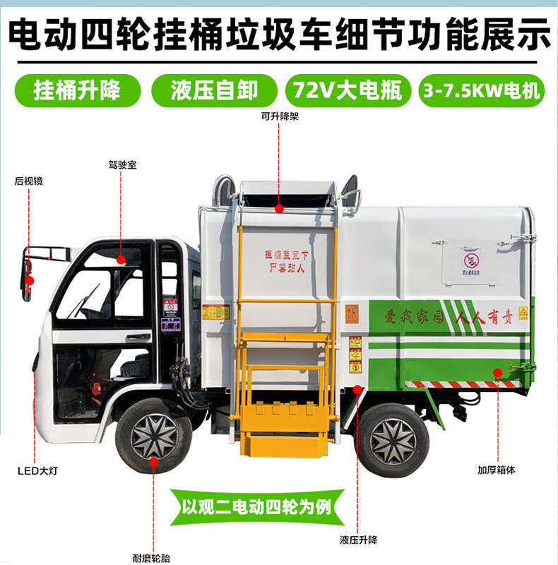 TF electric garbage truck three-wheel sanitation truck electric garbage dump truck electric four-wheel hanging bucket compressed garbage removal new energy transfer vehicle electric hanging bucket garbage removal truck electric four-wheel hanging bucket garbage truck Deposit Contact customer service