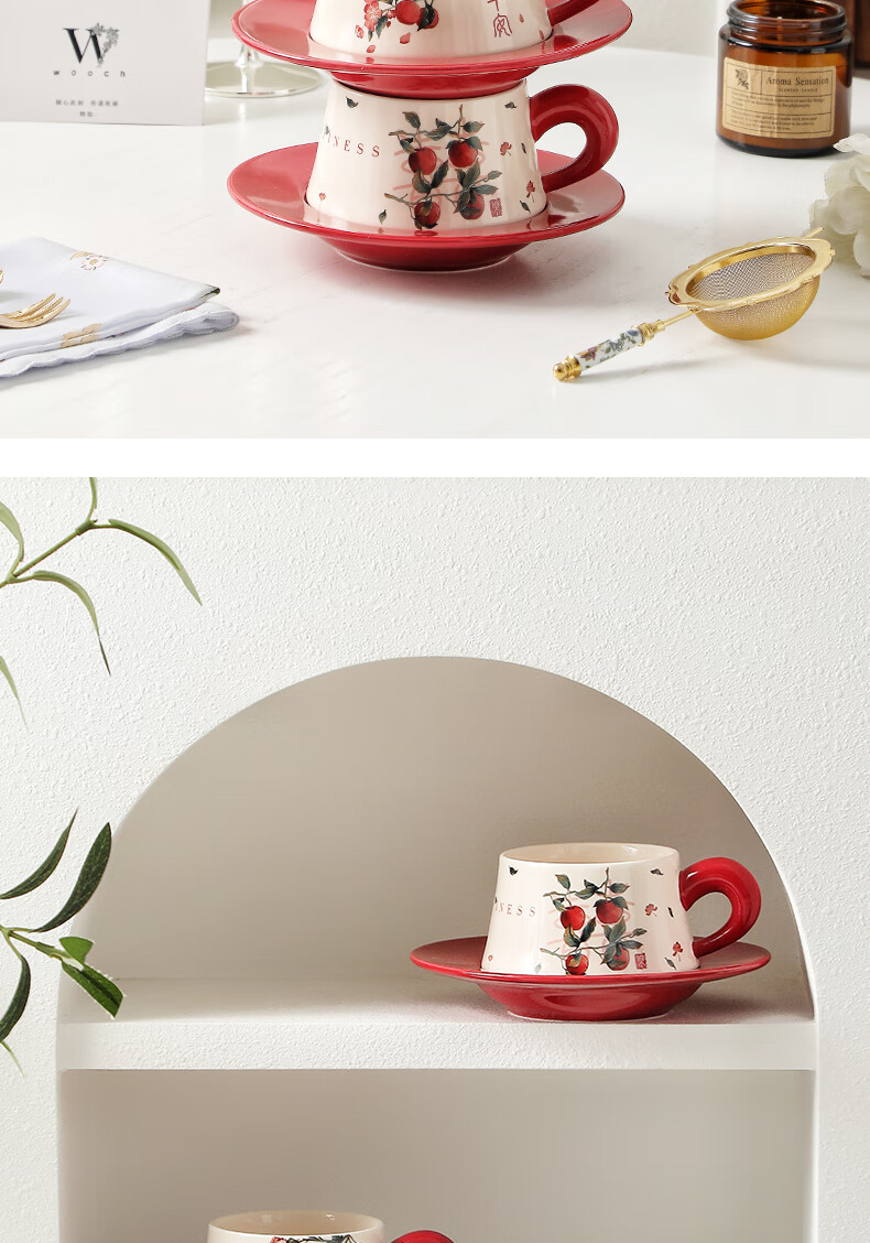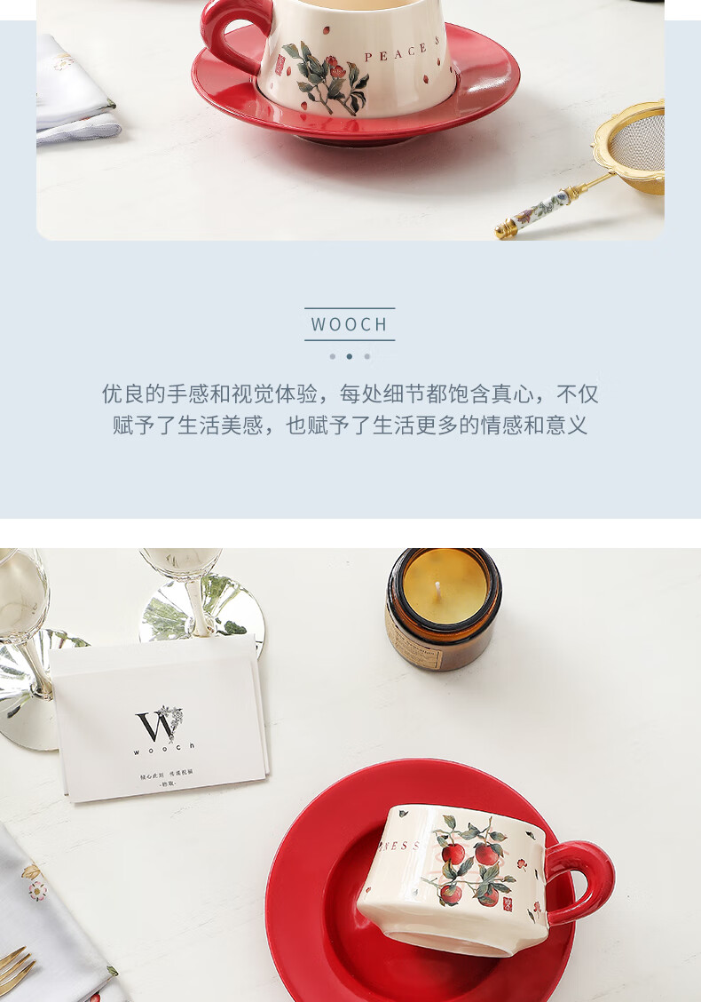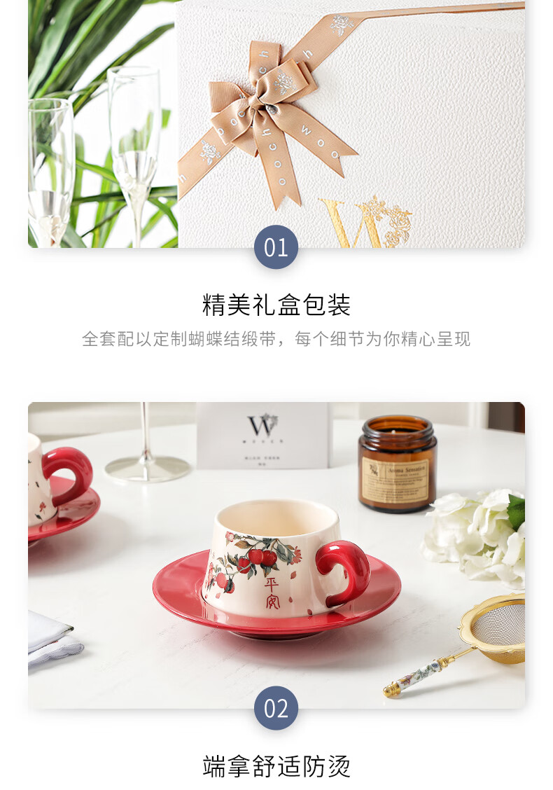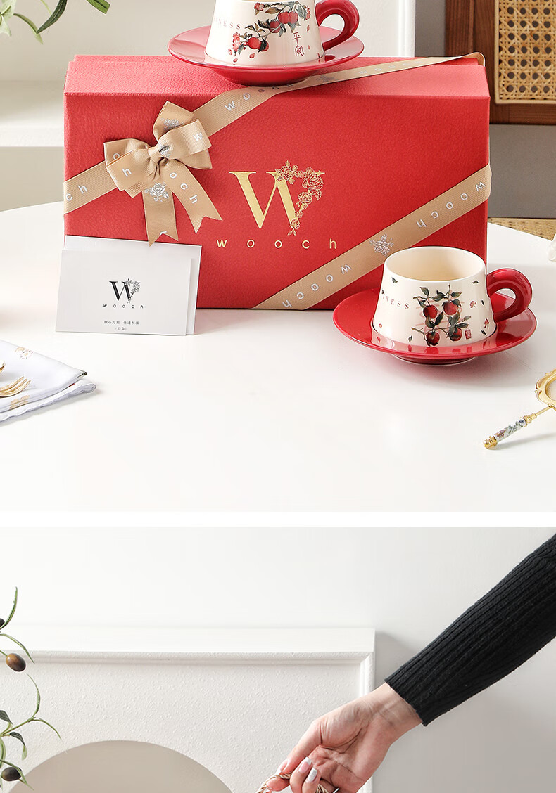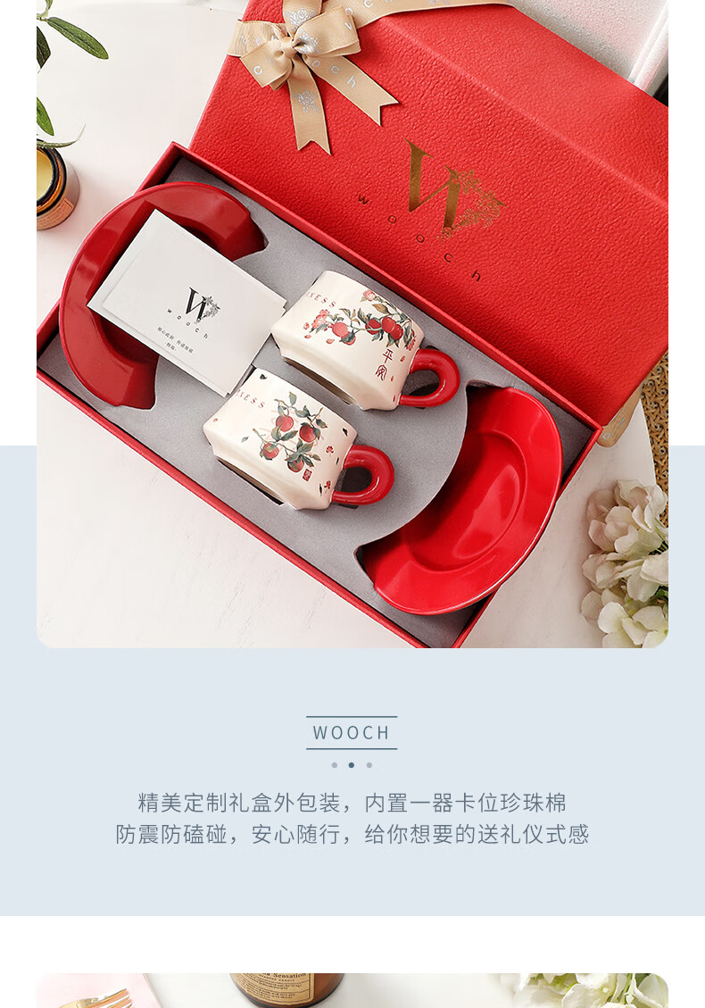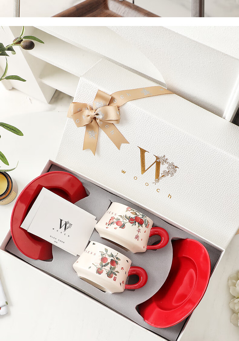WOOCH Peace and Joy Wedding Gift Coffee Pair of Cups and Saucers Gift Box High-end Exquisite Luxury New Home Move-in Gift for New Year Peace and Joy Pair of Cups-Peace + Joy + Red Gift Box