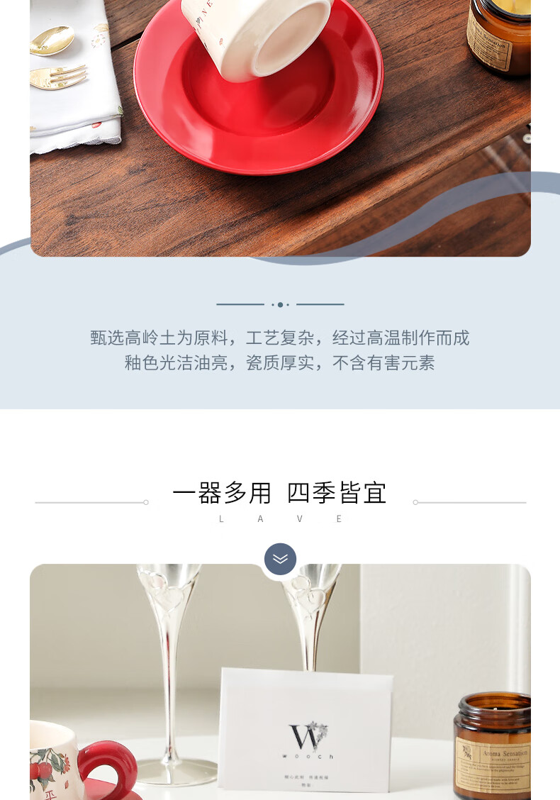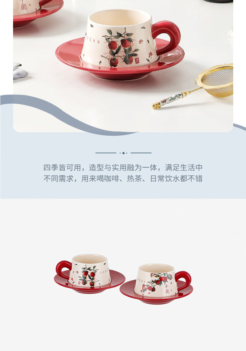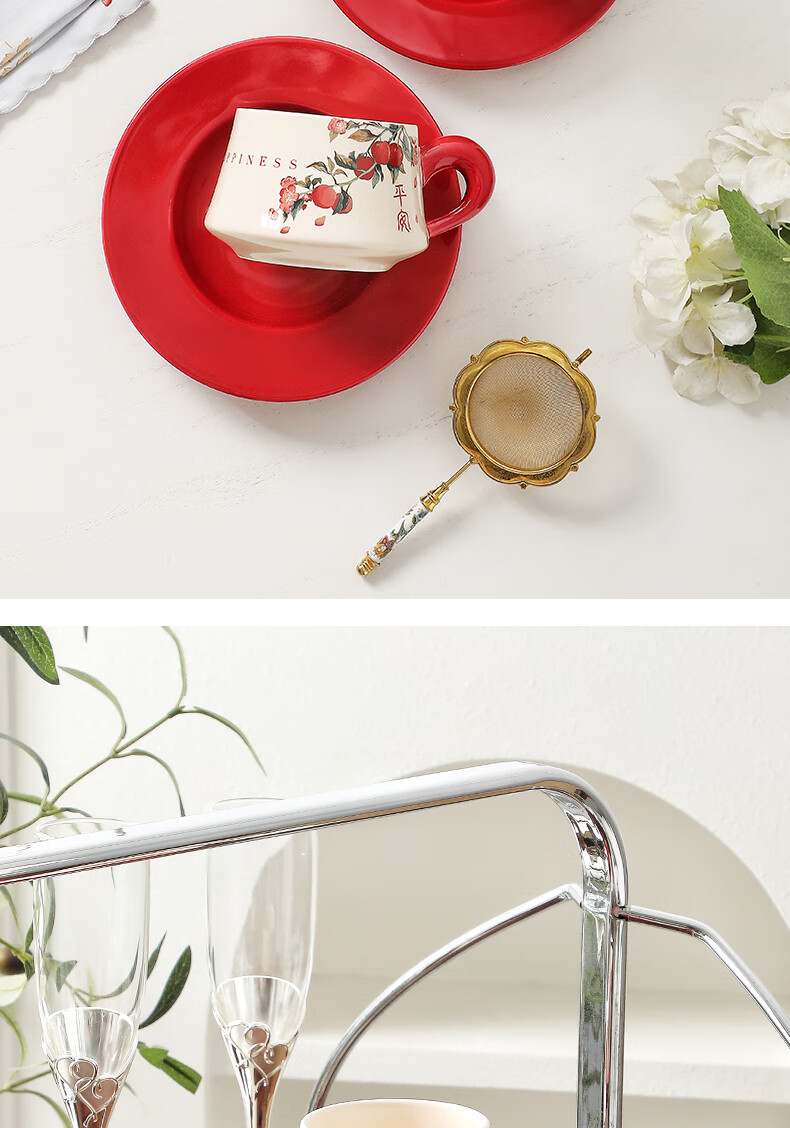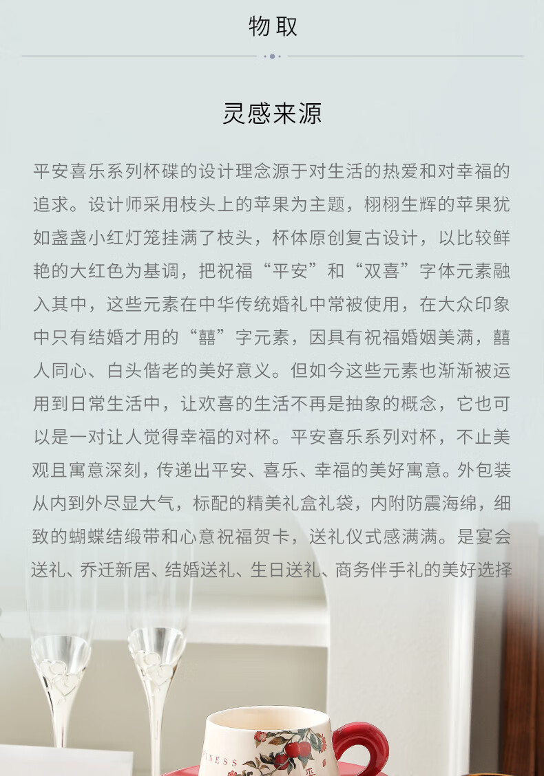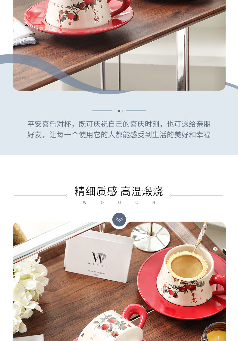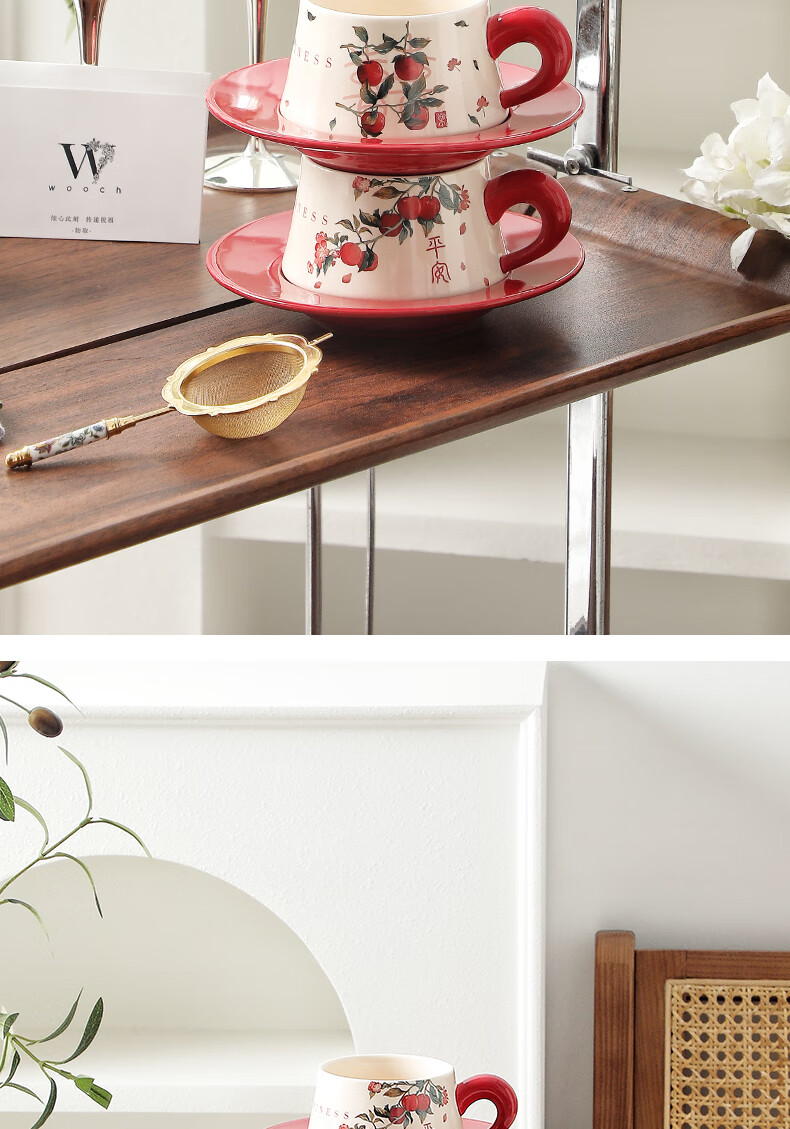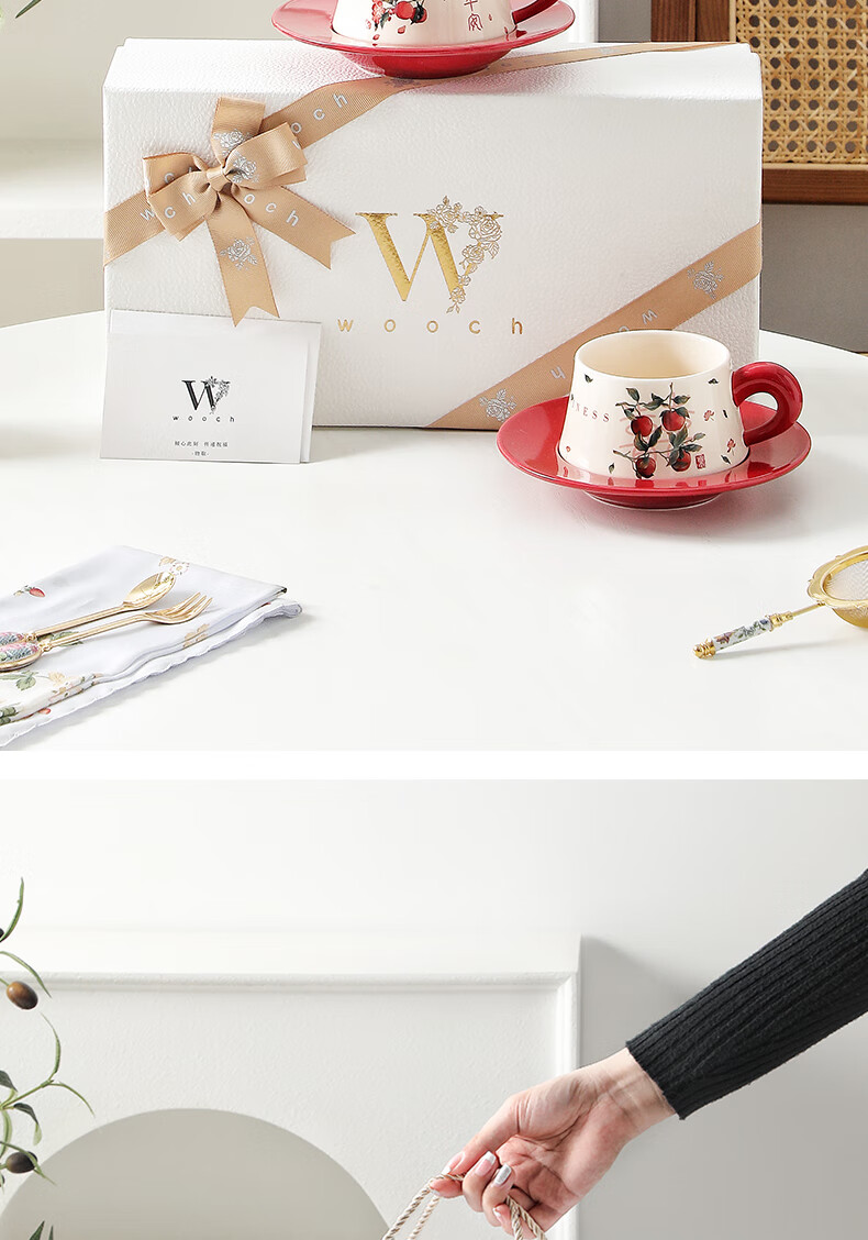 WOOCH Peace and Joy Wedding Gift Coffee Pair of Cups and Saucers Gift Box High-end Exquisite Luxury New Home Move-in Gift for New Year Peace and Joy Pair of Cups-Peace + Joy + Red Gift Box