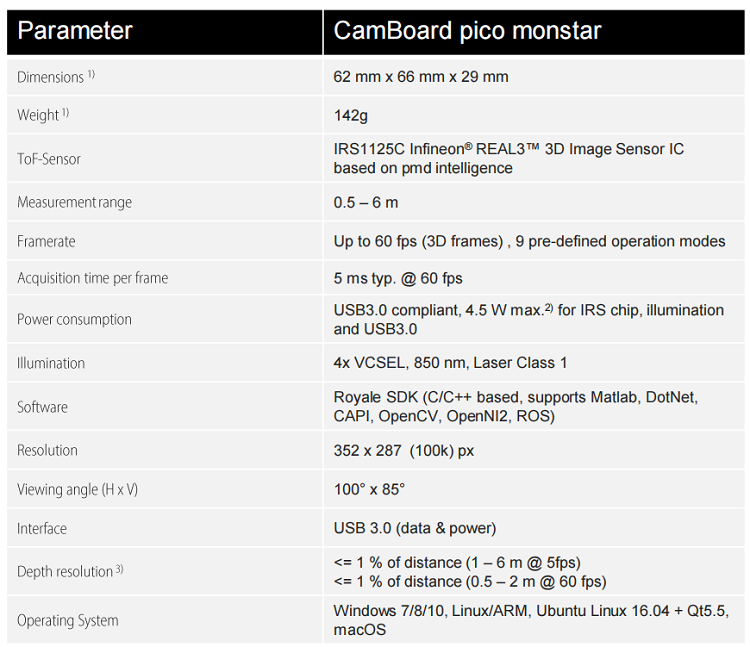 Pmd CamBoard pico flexx2/ monstar TOF depth camera with S pmd_CamBoard_pico_flexx2_
