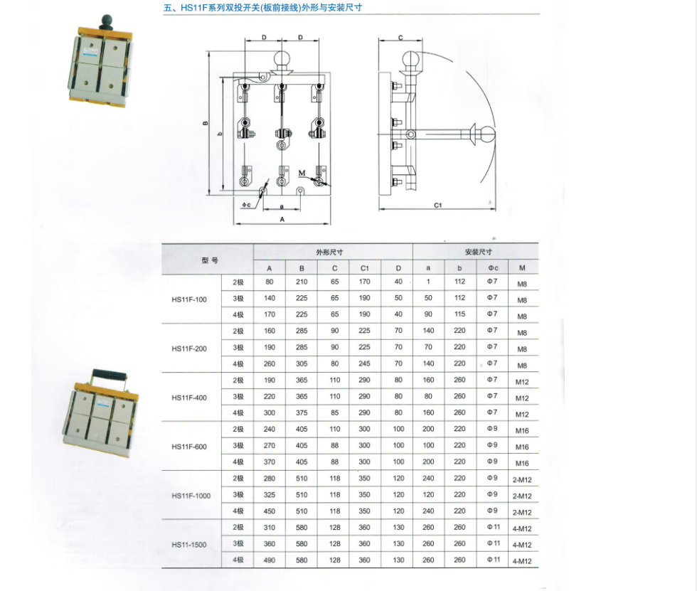 Double throw knife switch HS11F double-sided knife switch anti-error type two-way knife switch 200A reverse 48 two-way/three-wire/600A brass