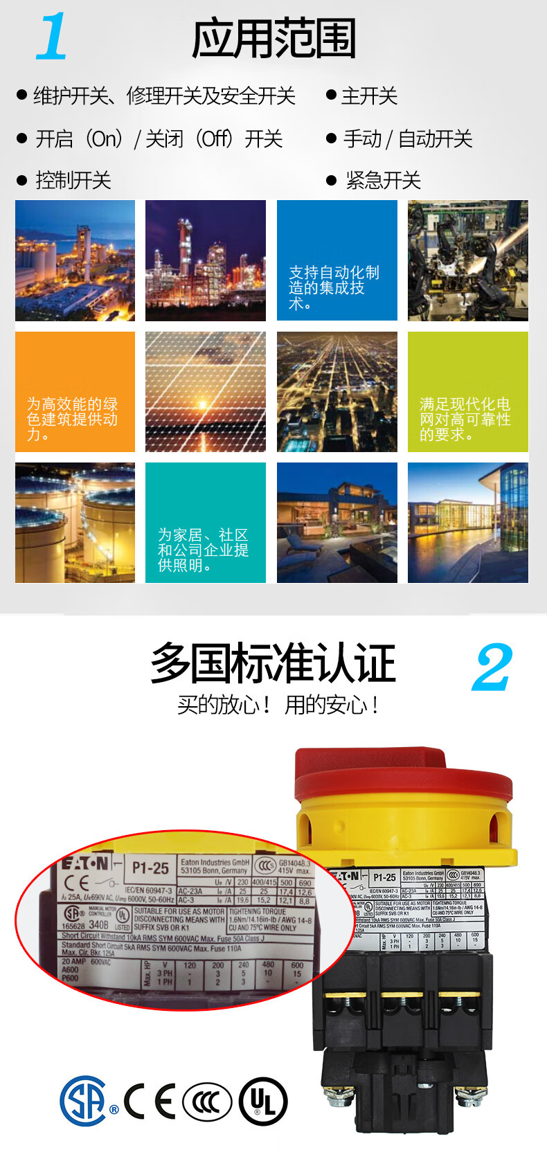 Customized Eaton Muller load isolation switch P1-25 P1-32 T0-2-1 P3-63-100/EA/S P1-25/EA/SVB 25A