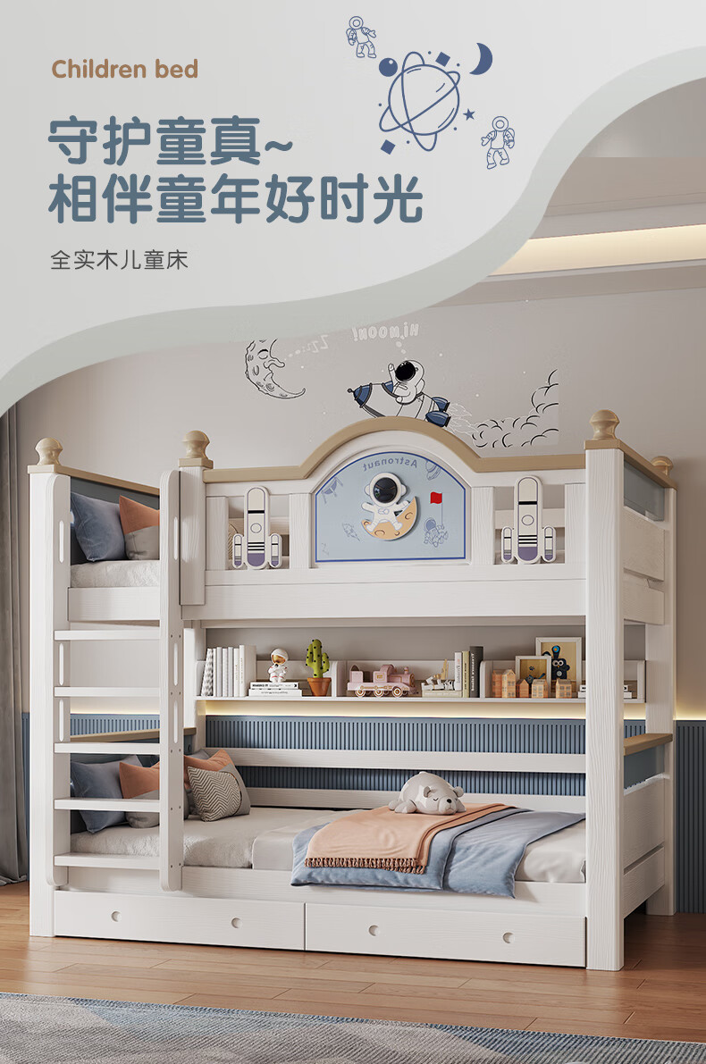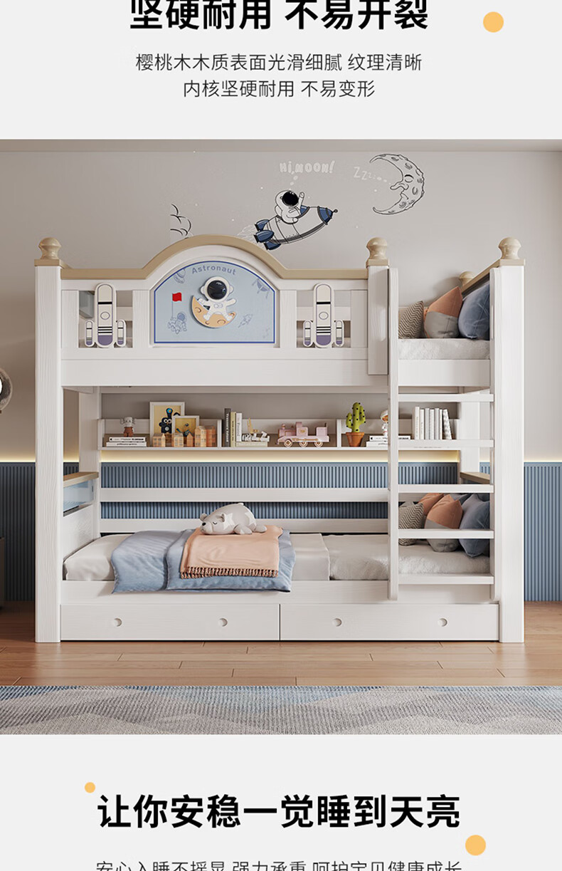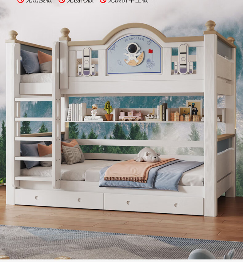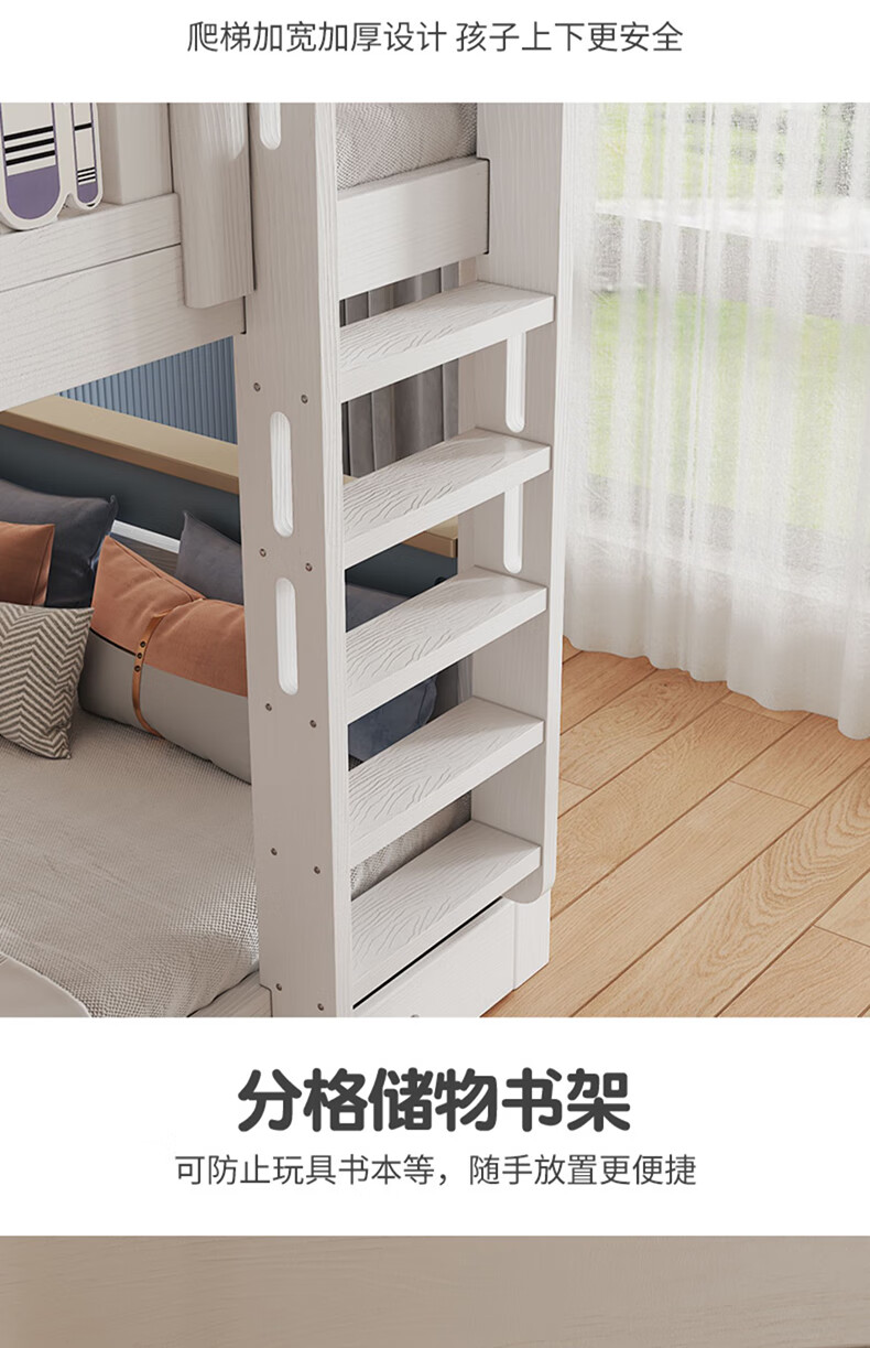 Ziwei all solid wood bunk bed, double bunk bed, upper and lower bunk beds with the same width, children's bed, small apartment, two-story high and low bed, ladder cabinet + bookshelf + double drawers, free 6D latex mattress, upper bunk width 120cm* bottom bunk width 120cm